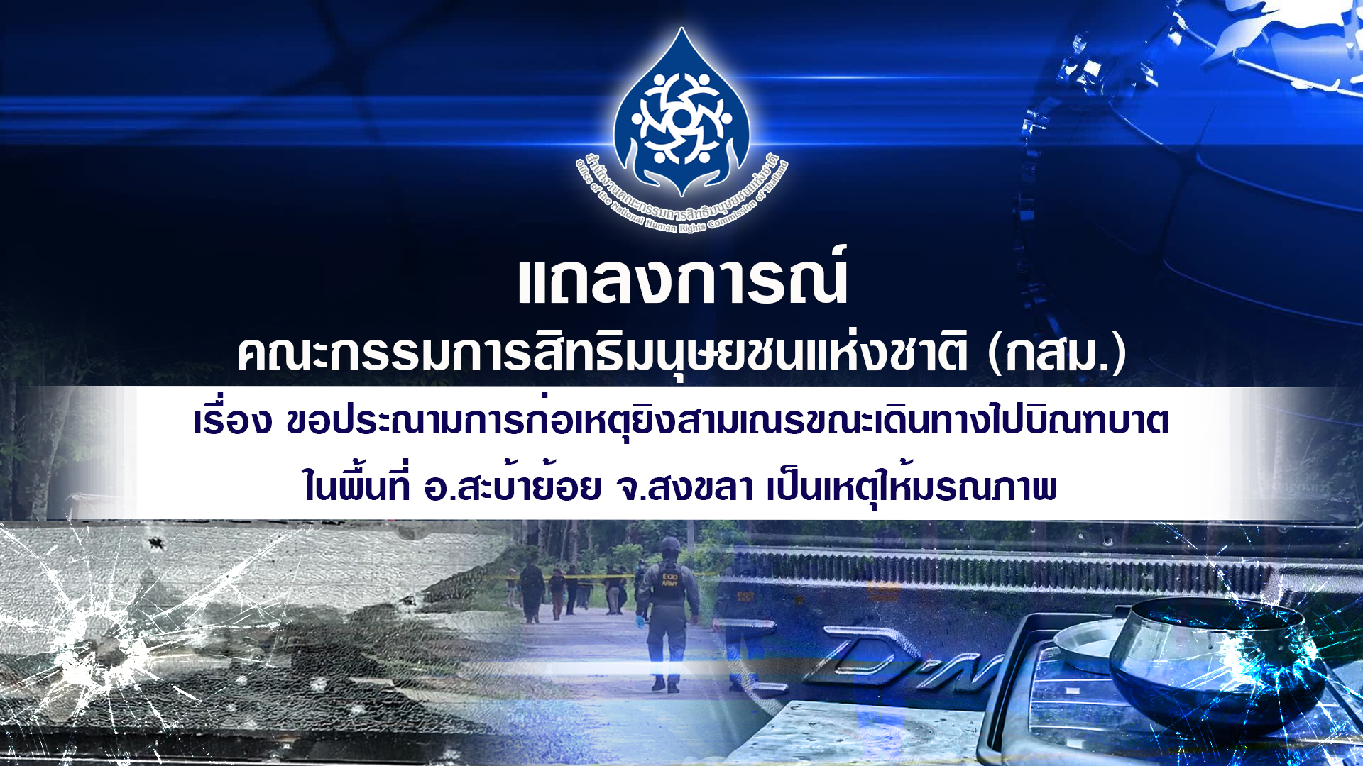 แถลงการณ์คณะกรรมการสิทธิมนุษยชนแห่งชาติ (กสม.) เรื่อง ขอประณามการก่อเหตุยิงสามเณรขณะเดินทางไปบิณฑบาตในพื้นที่ อ.สะบ้าย้อย จ.สงขลา เป็นเหตุให้มรณภาพ