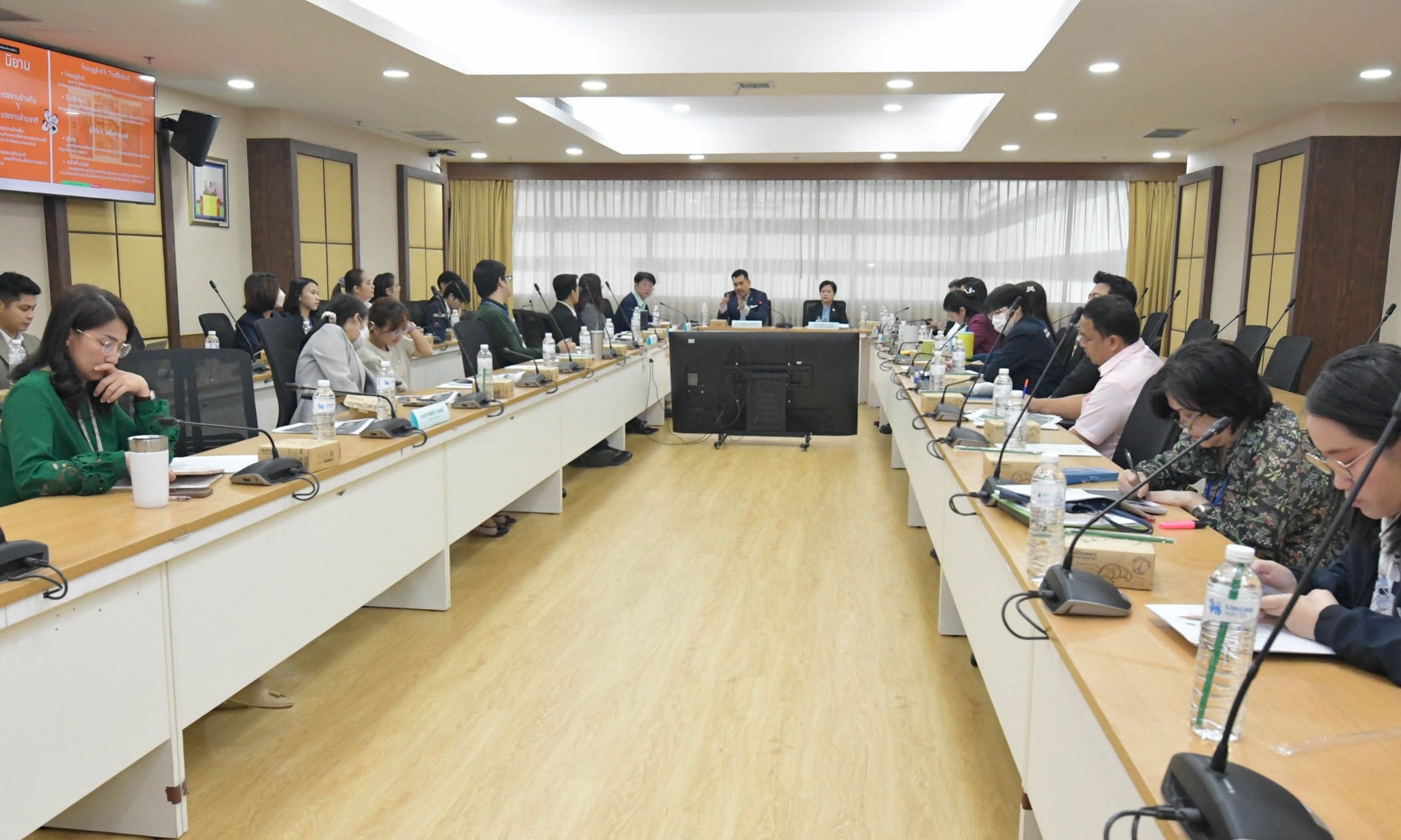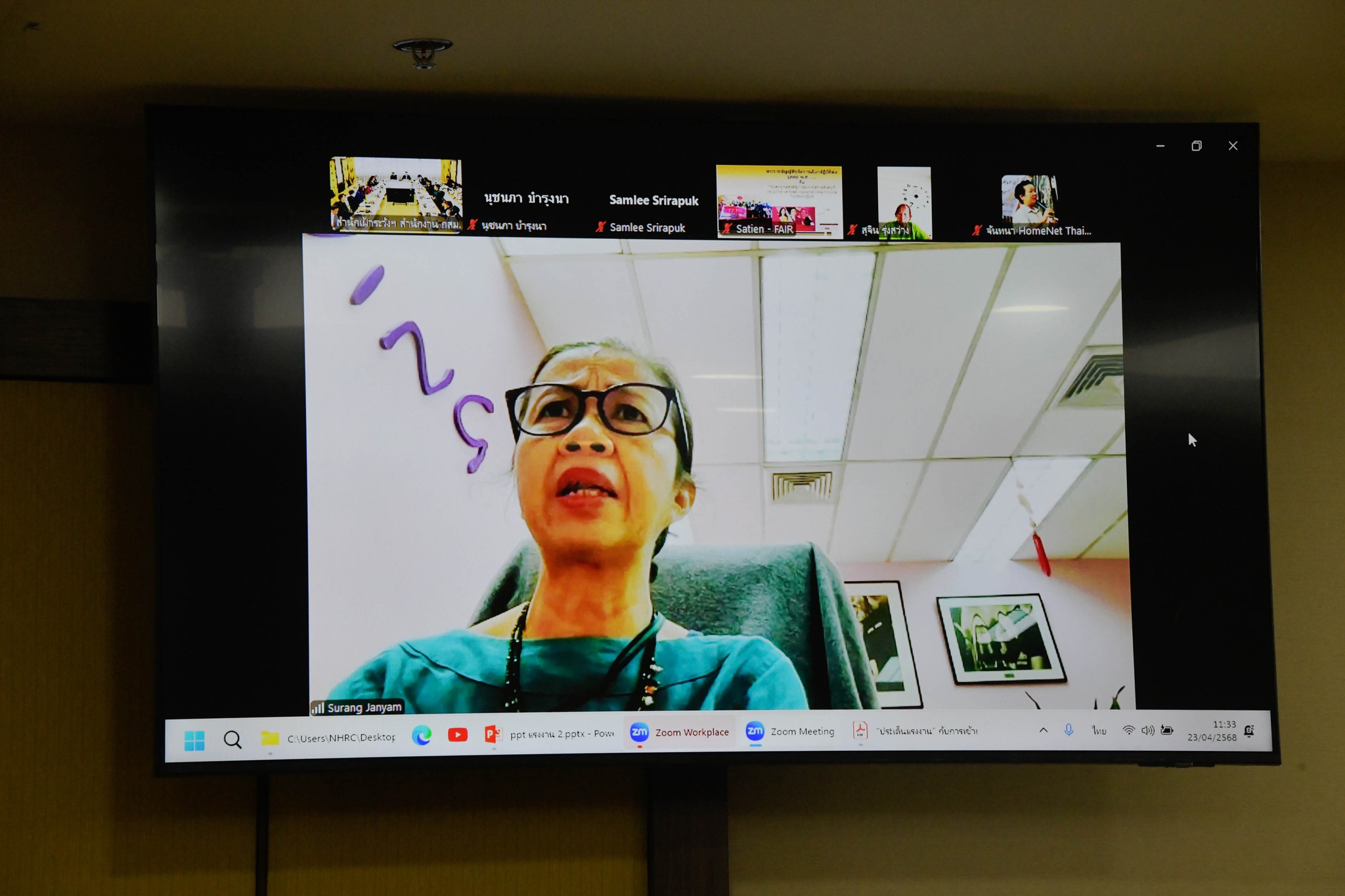 วันที่ 23 เมษายน 2568 เวลา 09.00 น. นางสาวสุภัทรา  นาคะผิว กรรมการสิทธิมนุษยชนแห่งชาติ เป็นวิทยากรร่วมกับ รศ.ดร. ศุภศิษฏ์  ทวีแจ่มทรัพย์ อาจารย์ประจำคณะนิติศาสตร์ จุฬาลงกรณ์มหาวิทยาลัย ในการสัมมนาและแลกเปลี่ยนความเห็น เรื่อง การเข้าเป็นภาคีอนุสัญญาว่าด้วยการคุ้มครองสิทธิของแรงงานโยกย้ายถิ่นฐานและสมาชิกในครอบครัว เพื่อสร้างความรู้ความเข้าใจและแลกเปลี่ยนความเห็นเกี่ยวกับสถานการณ์สิทธิมนุษยชนด้านแรงงาน และการเข้าเป็นภาคีอนุสัญญาว่าด้วยการคุ้มครองสิทธิของแรงงานโยกย้ายถิ่นฐานและสมาชิกในครอบครัว ซึ่งเป็นส่วนหนึ่งของโครงการขับเคลื่อนงานสมัชชาสิทธิมนุษยชน ประจำปี 2568 ประเด็นสิทธิแรงงาน ซึ่งมีผู้เข้าร่วมการสัมมนา ประกอบด้วย ผู้บริหาร เจ้าหน้าที่สำนักงาน กสม. และภาคประชาสังคมด้านแรงงาน จำนวนกว่า 60 คน ณ ห้องประชุม 709 และผ่านระบบออนไลน์ Zoom Meeting