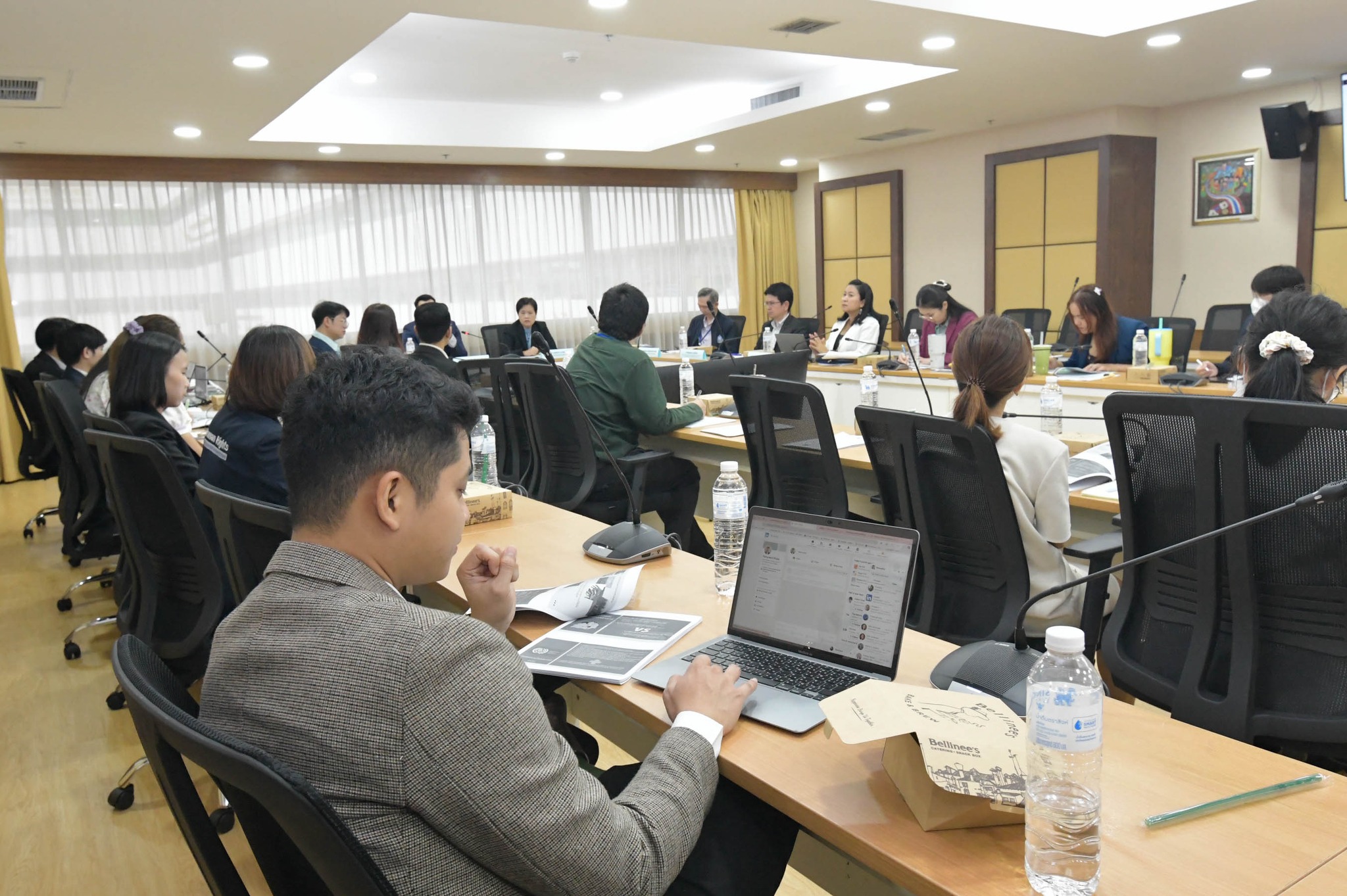 ในเวทีสัมมนาดังกล่าว กรรมการสิทธิมนุษยชนแห่งชาติได้แลกเปลี่ยนสถานการณ์ปัญหาด้านแรงงานในกลุ่มของแรงงานในระบบ แรงงานนอกระบบ แรงงานแพลตฟอร์ม แรงงานไทยไปทำงานต่างประเทศ แรงงานข้ามชาติ พนักงานบริการ และแรงงานจ้างเหมาบริการ ซึ่งยังคงมีปัญหาการไม่ได้รับความคุ้มครองด้านแรงงานอย่างเหมาะสม และถูกละเมิดสิทธิมนุษยชน ซึ่งบางส่วนได้ร้องเรียนมายังคณะกรรมการสิทธิมนุษยชนแห่งชาติ (กสม.) โดยที่ประเทศไทยได้เข้าเป็นภาคีอนุสัญญาหลักด้านสิทธิมนุษยชนจำนวน 8 ฉบับ จาก 9 ฉบับ จึงเหลือฉบับสุดท้ายคืออนุสัญญาว่าด้วยการคุ้มครองสิทธิของแรงงานโยกย้ายถิ่นฐานและสมาชิกในครอบครัว ซึ่งจะให้การคุ้มครองแรงงานโยกย้ายถิ่นฐานทั้งแรงงานที่มีเอกสารและแรงงานที่ไม่มีเอกสาร