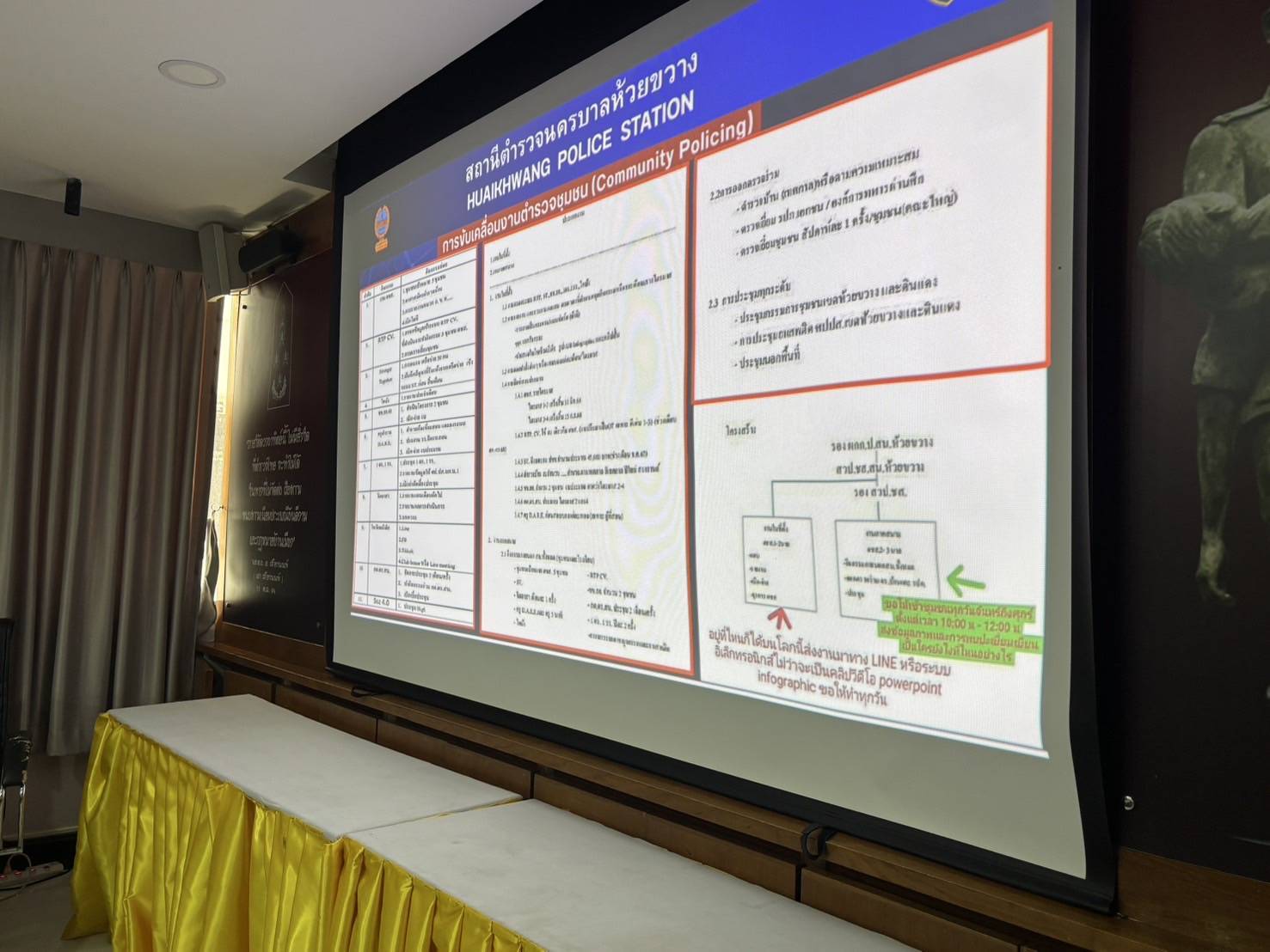 ในการประชุมแลกเปลี่ยนความคิดเห็น ผู้แทนสถานีฯ ได้นำเสนอข้อมูลภาพรวมของพื้นที่รับผิดชอบ ซึ่งประกอบด้วยชุมชนที่มีความหลากหลาย สถานที่ราชการ สถานทูต สถานบันเทิง และสถานศึกษา โดยมีลักษณะของ “พื้นที่ไม่หลับ” คือ มีกิจกรรมโดยตลอดต่อเนื่อง 24 ชั่วโมง เจ้าหน้าที่ตำรวจจึงต้องทำงานโดยต่อเนื่องด้วยเช่นกัน พร้อมทั้งได้นำเสนอแนวทางการดำเนินงานตำรวจชุมชนผ่านกิจกรรมกว่า 10 รูปแบบ อาทิ โครงการ “ครูตำรวจ D.A.R.E.” โครงการ “1 ตำรวจ 1 โรงเรียน” โครงการ “Stronger Together” และการร่วมทดลองสร้างพื้นที่ต้นแบบ Smart City Zone (SSZ 4.0) เพื่อป้องกันอาชญากรรมร่วมกับชุมชนและภาคีเครือข่าย