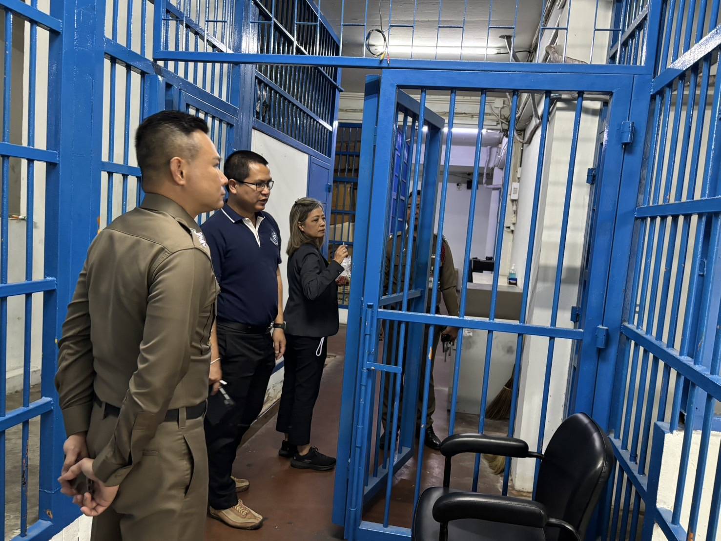 นอกจากนี้ คณะตรวจเยี่ยมยังได้สำรวจพื้นที่ปฏิบัติงานของสถานีฯ ทั้งในส่วนของห้องควบคุมตัว จุดรับแจ้งความ งานสอบสวน และกิจกรรมการสื่อสารกับประชาชนโดยผ่านช่องทางต่าง ๆ เช่น Facebook Line Official และ Website ของสถานีฯ รวมถึงได้หารือเกี่ยวกับข้อจำกัดด้านบุคลากร โดยเฉพาะพนักงานสอบสวน ซึ่งต้องรับผิดชอบคดีจำนวนมาก โดยเฉพาะคดีออนไลน์ที่มีแนวโน้มเพิ่มขึ้นอย่างต่อเนื่อง รวมทั้งได้ร่วมลงพื้นที่สังเกตการณ์การปฏิบัติงานของตำรวจชุมชนสัมพันธ์ ณ ชุมชนซอยแสนสุข เขตดินแดง และสมาคมศูนย์กลางเทวา ซึ่งเป็นองค์กรสาธารณกุศลที่มีที่ตั้งในชุมชนซอยแสนสุข และได้มีการดำเนินกิจกรรมเพื่อป้องกันอาชญากรรมร่วมกับชุมชนอย่างหลากหลาย รวมทั้งการประสานเพื่อสนับสนุนการแก้ไขปัญหาสังคมต่าง ๆ ที่เกิดขึ้นในพื้นที่ โดยเฉพาะปัญหายาเสพติด