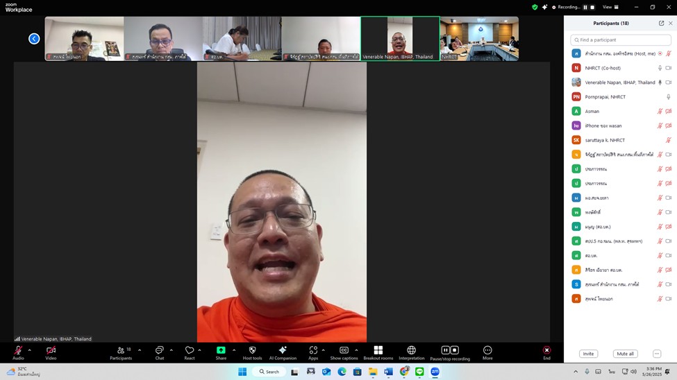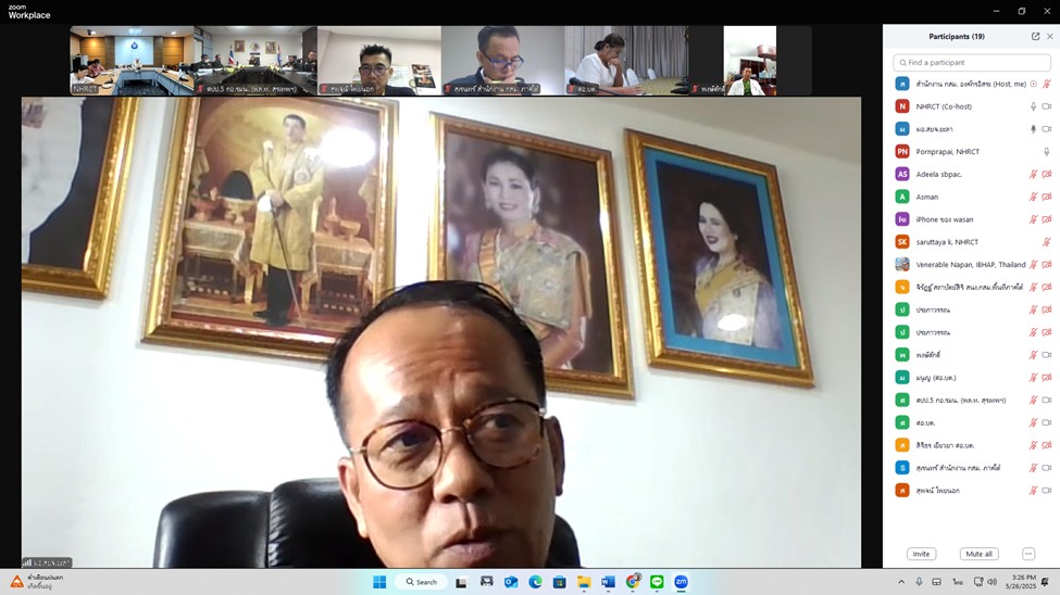 เมื่อวันที่ 26 พฤษภาคม 2568 เวลา 14.00 น. ที่ห้องประชุม 701 สำนักงานคณะกรรมการสิทธิมนุษยชนแห่งชาติ (สำนักงาน กสม.) และการประชุมทางไกลผ่านสื่ออิเล็กทรอนิกส์ในรูปแบบออนไลน์ (Zoom meeting) ผศ. สุชาติ  เศรษฐมาลินี นางสาวปิติกาญจน์  สิทธิเดช และนายวสันต์  ภัยหลีกลี้ กรรมการสิทธิมนุษยชนแห่งชาติ พร้อมด้วย นางสาวรตญา  กอบศิริกาญจน์ รองเลขาธิการคณะกรรมการสิทธิมนุษยชนแห่งชาติ นายสุเรนทร์  ปะดุกา ผู้อำนวยการสำนักงาน กสม. พื้นที่ภาคใต้ และเจ้าหน้าที่สำนักงาน กสม. พื้นที่ภาคใต้ ประชุมรับฟังสถานการณ์สิทธิมนุษยชนในพื้นที่จังหวัดชายแดนภาคใต้ เพื่อนำความคิดเห็น และข้อเสนอแนะ ใช้เป็นข้อมูลประกอบการดำเนินโครงการตามแผนปฏิบัติการประจำปีงบประมาณ พ.ศ. 2568 โดยมีผู้เข้าร่วมประชุม ประกอบด้วย พระมหานภันต์ สนฺติภทฺโท ผู้ช่วยเจ้าอาวาสวัดสระเกศราชวรมหาวิหาร และประธานกรรมการมูลนิธิสถาบันการจัดการวิถีพุทธเพื่อสุขและสันติ นายดนัย  มู่สา ผู้ทรงคุณวุฒิคณะกรรมการสิทธิมนุษยชนแห่งชาติด้านการส่งเสริมสิทธิมนุษยชนและสิทธิมนุษยชนศึกษา ผศ.ดร.อาทิตย์  ทองอินทร์ ผู้ทรงคุณวุฒิด้านสิทธิพลเมืองและสิทธิทางการเมือง พลโท สุรเทพ  หนูแก้ว ผู้อำนวยการศูนย์ประสานการปฏิบัติที่ 5 กองอำนวยการรักษาความมั่นคงภายในราชอาณาจักร นางอาดีลา  บูเดียะ ผู้อำนวยกลุ่มงานบริหารงานยุติธรรมและอำนวยความเป็นธรรม ศูนย์อำนวยการบริหารจังหวัดชายแดนภาคใต้ (ศอ.บต.) นายพยุงศักดิ์  กาฬมิค ผู้อำนวยการสำนักงานยุติธรรมจังหวัดยะลา และนายพงษ์ศักดิ์  พรหมสังข์ ประธานสมาพันธ์ไทยพุทธจังหวัดชายแดนภาคใต้
