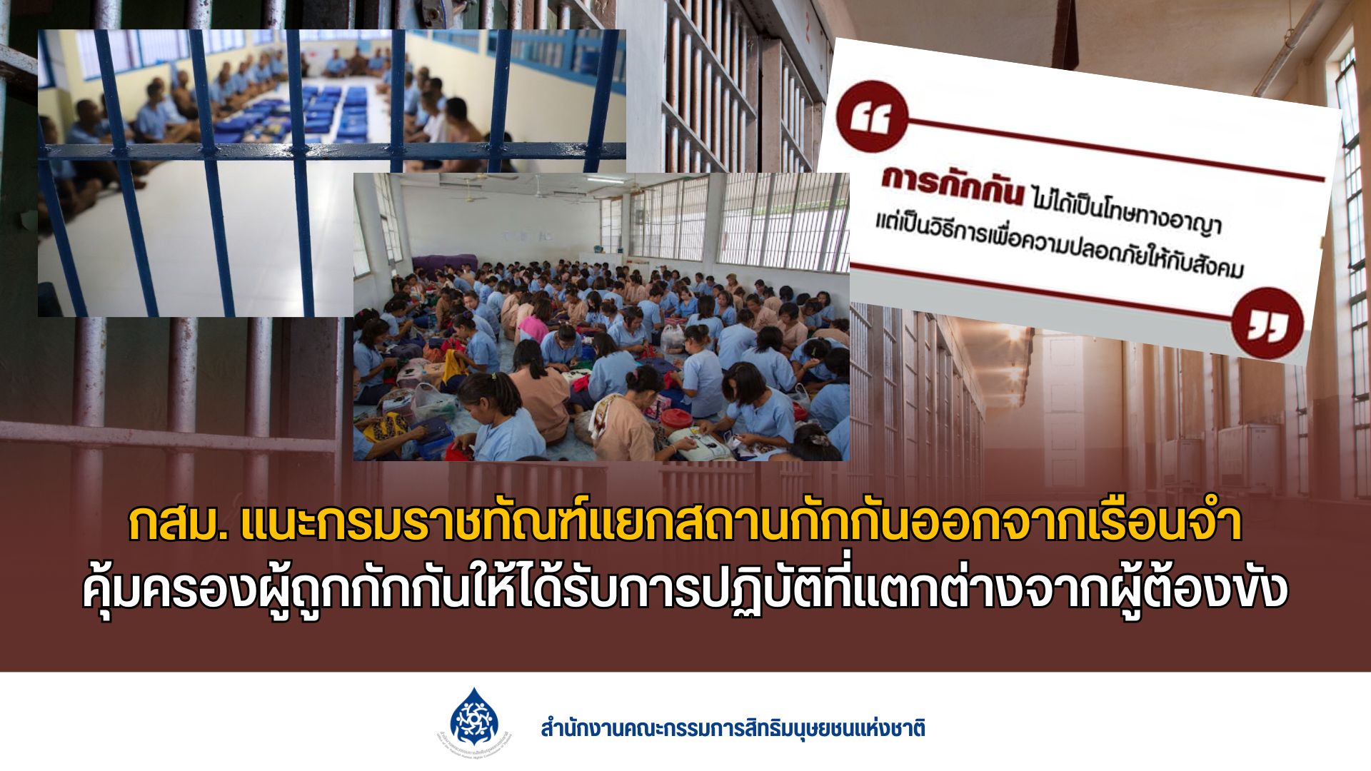 1. กสม. แนะกรมราชทัณฑ์แยกสถานกักกันออกจากเรือนจำ คุ้มครองผู้ถูกกักกันให้ได้รับการปฏิบัติที่แตกต่างจากผู้ต้องขัง เพื่อให้สอดคล้องตามหลักสิทธิมนุษยชนและการบำบัดฟื้นฟูพฤตินิสัย