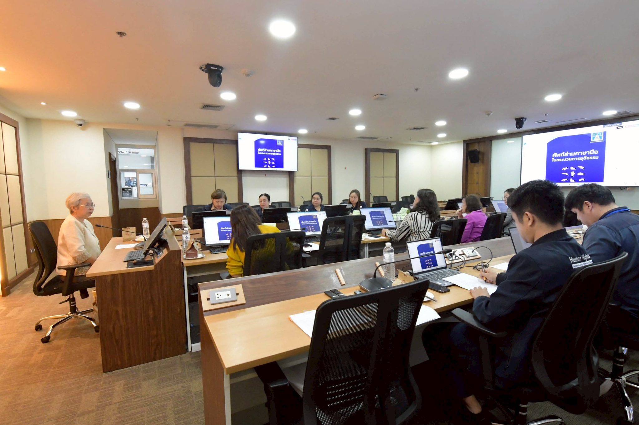ในการประชุมหารือดังกล่าว ผู้เข้าร่วมประชุมได้ให้ข้อมูลการดำเนินงาน ตลอดจนปัญหาอุปสรรค และข้อเสนอถึงแนวทางการประสานความร่วมมือเพื่อส่งเสริมสิทธิมนุษยชนในประเด็นต่างๆ เช่น การให้บริการล่ามภาษามือแปลแบบถ่ายทอดสดผ่านเทคโนโลยีแอปพลิเคชันและตู้บริการสาธารณะซึ่งในปัจจุบันจำเป็นต้องหยุดให้บริการและส่งผลกระทบต่อคนหูหนวกเป็นอย่างมาก การพัฒนาคำศัพท์ภาษามือโดยฉพาะคำศัพท์ในกระบวนการยุติธรรมสำหรับใช้ในการสื่อสารกรณีที่คนหูหนวกเป็นผู้เสียหายหรือผู้ต้องหาทั้งในคดีอาญาและคดีแพ่ง ทั้งนี้ สำนักงาน กสม. จะนำข้อมูลที่ได้จากการประชุม รวมถึงการแสวงหาข้อมูลเพิ่มเติมจากหน่วยงานที่เกี่ยวข้องประกอบการกำหนดแนวทางเพื่อการส่งเสริมสิทธิมนุษยชนสำหรับบุคคลที่มีความบกพร่องทางการได้ยิน หรือคนหูหนวกที่เข้าสู่กระบวนการยุติธรรมอย่างเป็นรูปธรรมต่อไป