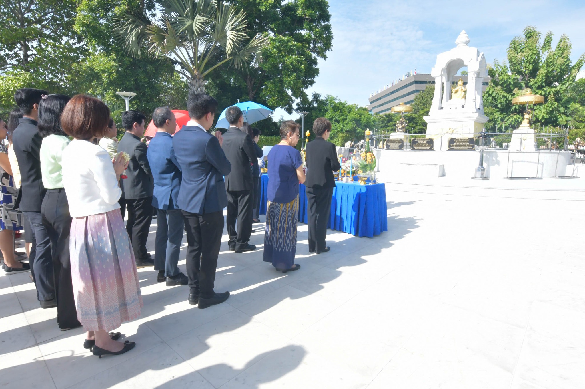 เวลา 08.39 น. ประธานกรรมการสิทธิมนุษยชนแห่งชาติ พรประไพ  กาญจนรินทร์ กรรมการสิทธิมนุษยชนแห่งชาติ ปรีดา  คงแป้น ปิติกาญจน์  สิทธิเดช วสันต์  ภัยหลีกลี้ และสุภัทรา  นาคะผิว พร้อมด้วยผู้บริหาร และผู้แทนเจ้าหน้าที่สำนักงาน กสม. ร่วมพิธีไหว้สักการะศาลพระพรหม เพื่อความเป็นสิริมงคล ภายในบริเวณศูนย์ราชการเฉลิมพระเกียรติ 80 พรรษาฯ