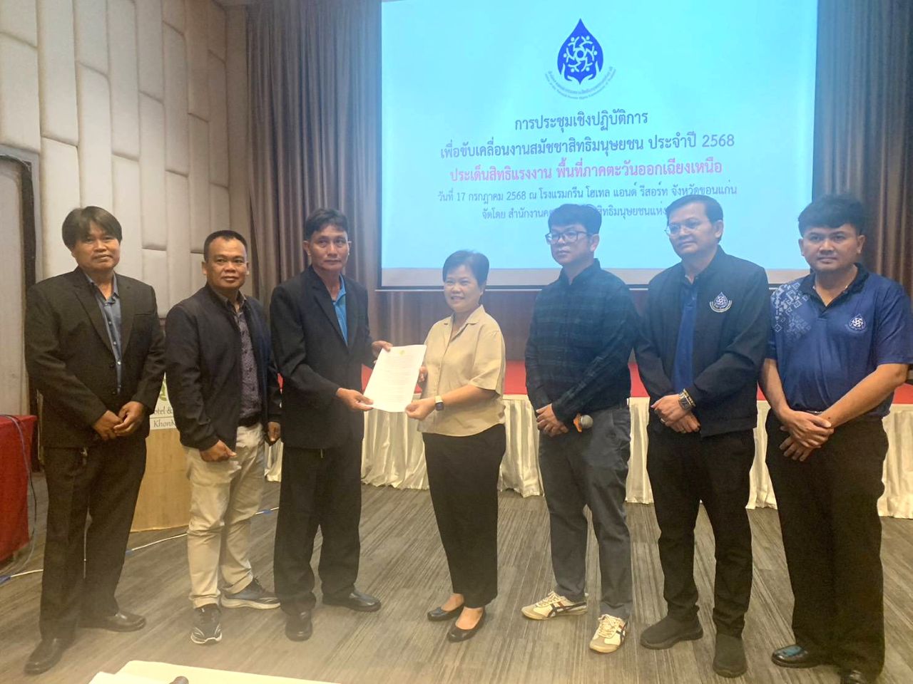เมื่อวันที่ 17 กรกฎาคม 2568 ที่โรงแรมกรีนโฮเทล จังหวัดขอนแก่น นางสาวสุภัทรา  นาคะผิว กรรมการสิทธิมนุษยชนแห่งชาติ รับเรื่องร้องเรียนจากตัวแทนเครือข่ายลูกจ้างนักการภารโรงสี่ภาค (ค.ล.น.ภ.) กรณี นักการภารโรง จำนวน 25,370 อัตรา ในสังกัดสำนักงานคณะกรรมการการศึกษาขั้นพื้นฐาน (สพฐ.) ซึ่งเป็นลูกจ้างชั่วคราวตามสัญญาจ้างรายปี ได้รับผลกระทบจากการที่ สพฐ. ปรับเปลี่ยนสัญญาจ้างงานจากลูกจ้างชั่วคราวเป็นการจ้างเหมาบริการ ทำให้ได้รับความเดือดร้อน ได้รับค่าตอบแทนน้อยกว่าค่าแรงขั้นต่ำ ไม่มีสวัสดิการ ไม่มีความมั่นคงและความก้าวหน้าในอาชีพที่ต้องปฏิบัติงานอย่างตรากตรำในการดูแลความเรียบร้อยของโรงเรียนทั่วประเทศ พร้อมกันนี้ยังได้มีข้อเสนอแนะเพื่อคุ้มครองสิทธิแรงงานและสิทธิในการทำงานของลูกจ้างนักการภารโรง โดยขอให้คณะกรรมการสิทธิมนุษยชนแห่งชาตินำข้อมูลความเดือดร้อนและข้อเสนอแนะของเครือข่าย ไปขับเคลื่อนเพื่อดำเนินการช่วยเหลือกลุ่มนักการภารโรงที่ได้รับความเดือดร้อนดังกล่าว โดยมุ่งให้เกิดการแก้ไขปัญหาที่เป็นธรรมและยั่งยืนต่อไป