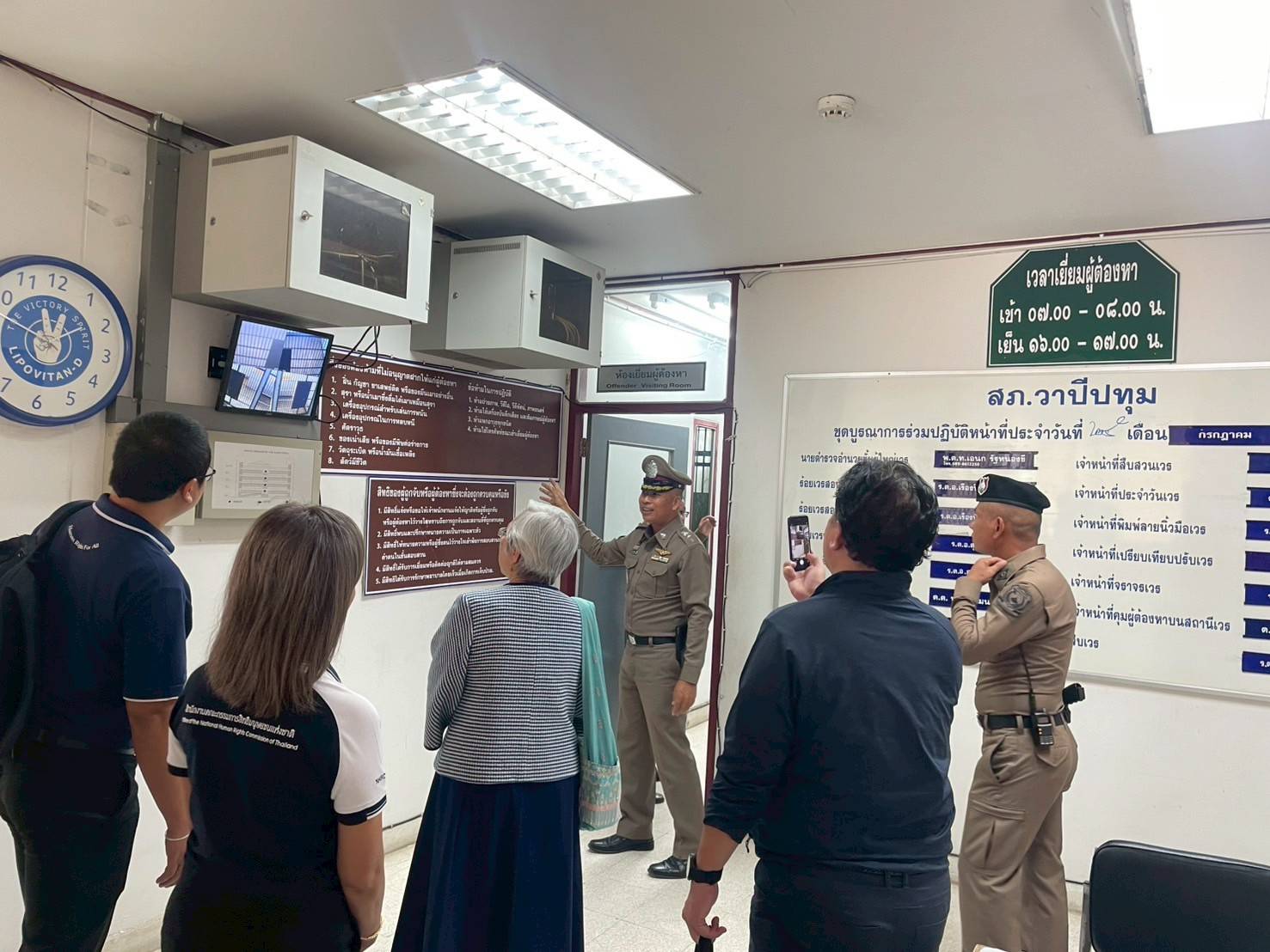 เมื่อวันที่ 25 กรกฎาคม 2568 นางสาวปิติกาญจน์  สิทธิเดช กรรมการสิทธิมนุษยชนแห่งชาติ พร้อมด้วยผู้บริหารและเจ้าหน้าที่สำนักงาน กสม. ส่วนกลาง และสำนักงาน กสม. พื้นที่ภาคตะวันออกเฉียงเหนือ ลงพื้นที่ตรวจเยี่ยมเชิงป้องกัน ณ สถานีตำรวจภูธรราษฎร์เจริญ และสถานีตำรวจภูธรวาปีปทุม จังหวัดมหาสารคาม โดยมีผู้แทนสำนักงานตำรวจแห่งชาติส่วนกลางและผู้แทนกองบังคับการตำรวจภูธรจังหวัดมหาสารคามร่วมตรวจเยี่ยมเพื่อส่งเสริมการปฏิบัติงานที่สอดคล้องกับหลักสิทธิมนุษยชน