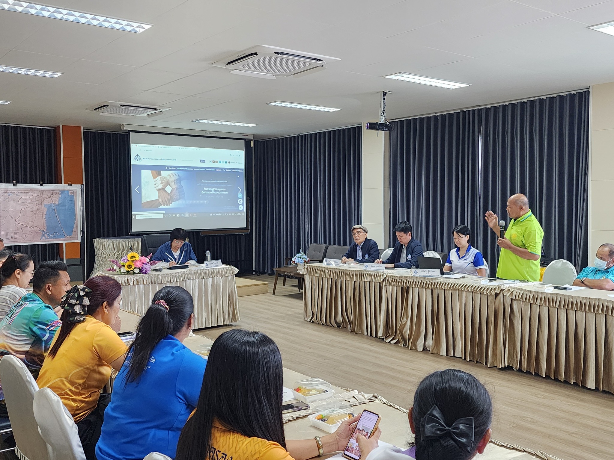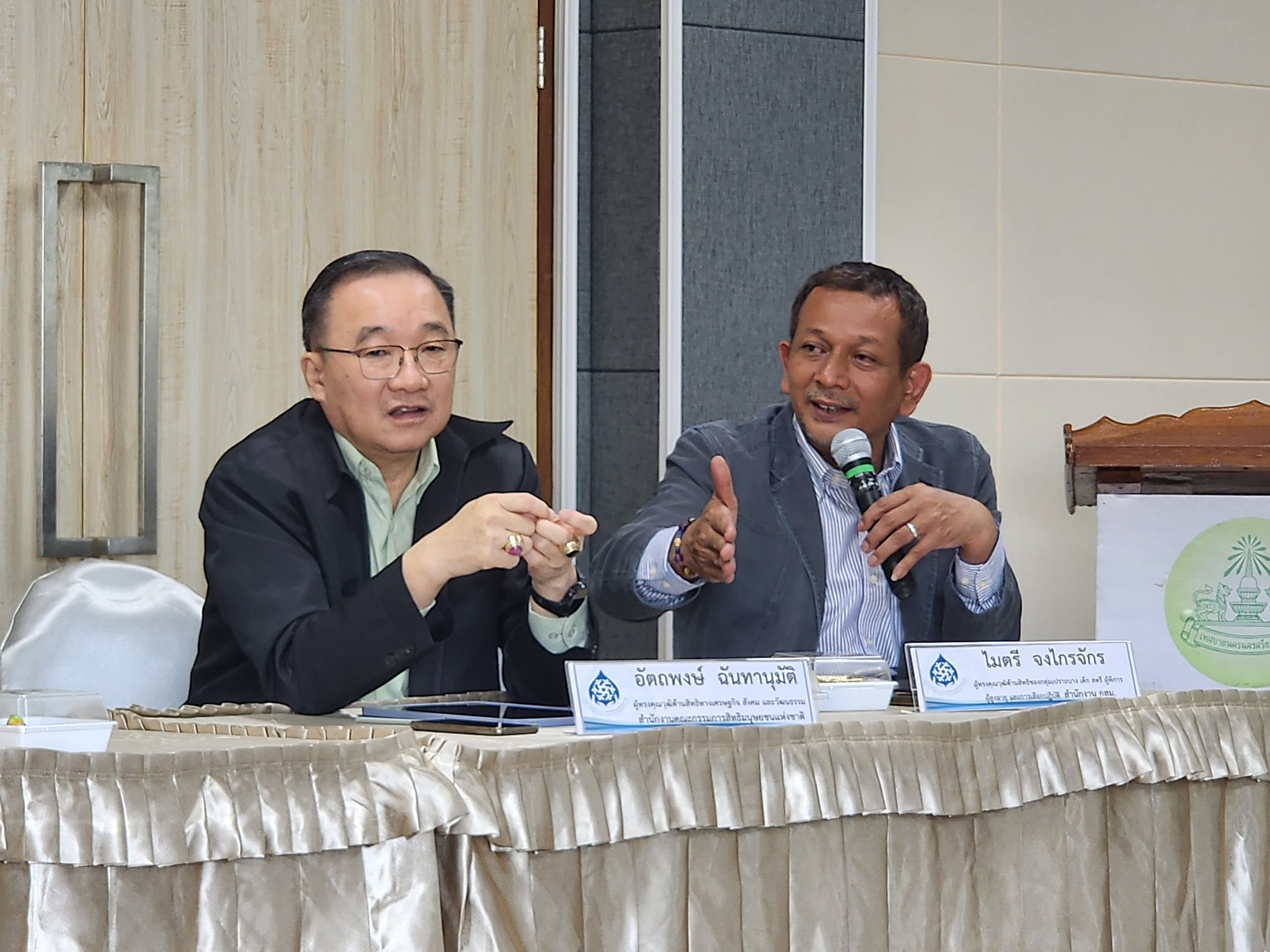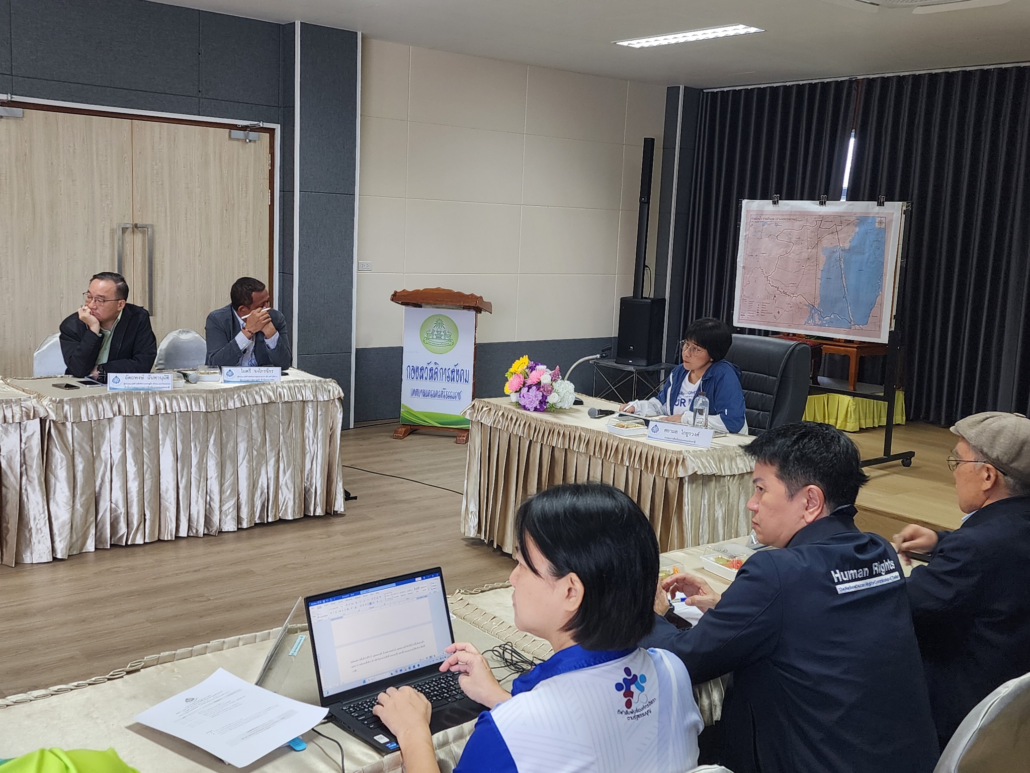 วันที่ 6 สิงหาคม 2568 ช่วงเช้า ที่ห้องประชุมกองสวัสดิการสังคม เทศบาลนครนครศรีธรรมราช กรรมการสิทธิมนุษยชนแห่งชาติและคณะ ประชุมร่วมกับอาสาสมัครชุมชนและผู้แทนชาวบ้านที่ได้รับผลกระทบจากภัยพิบัติน้ำในพื้นที่จังหวัดนครศรีธรรมราชราว 40 คน โดยได้รับฟังสถานการณ์การจัดการน้ำและบทเรียนภัยพิบัติของชุมชนในพื้นที่อำเภอปากพนัง อำเภอพระพรหม อำเภอเมือง และพื้นที่ชายฝั่ง รวมทั้งข้อเสนอแนะในการแก้ไขปัญหาจากเสียงสะท้อนของประชาชน