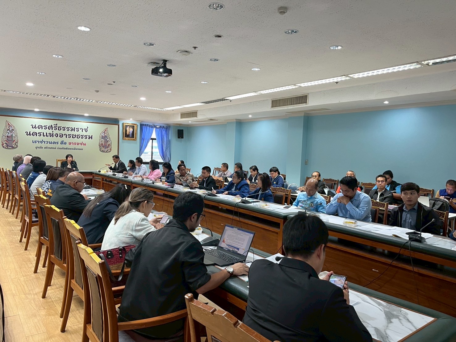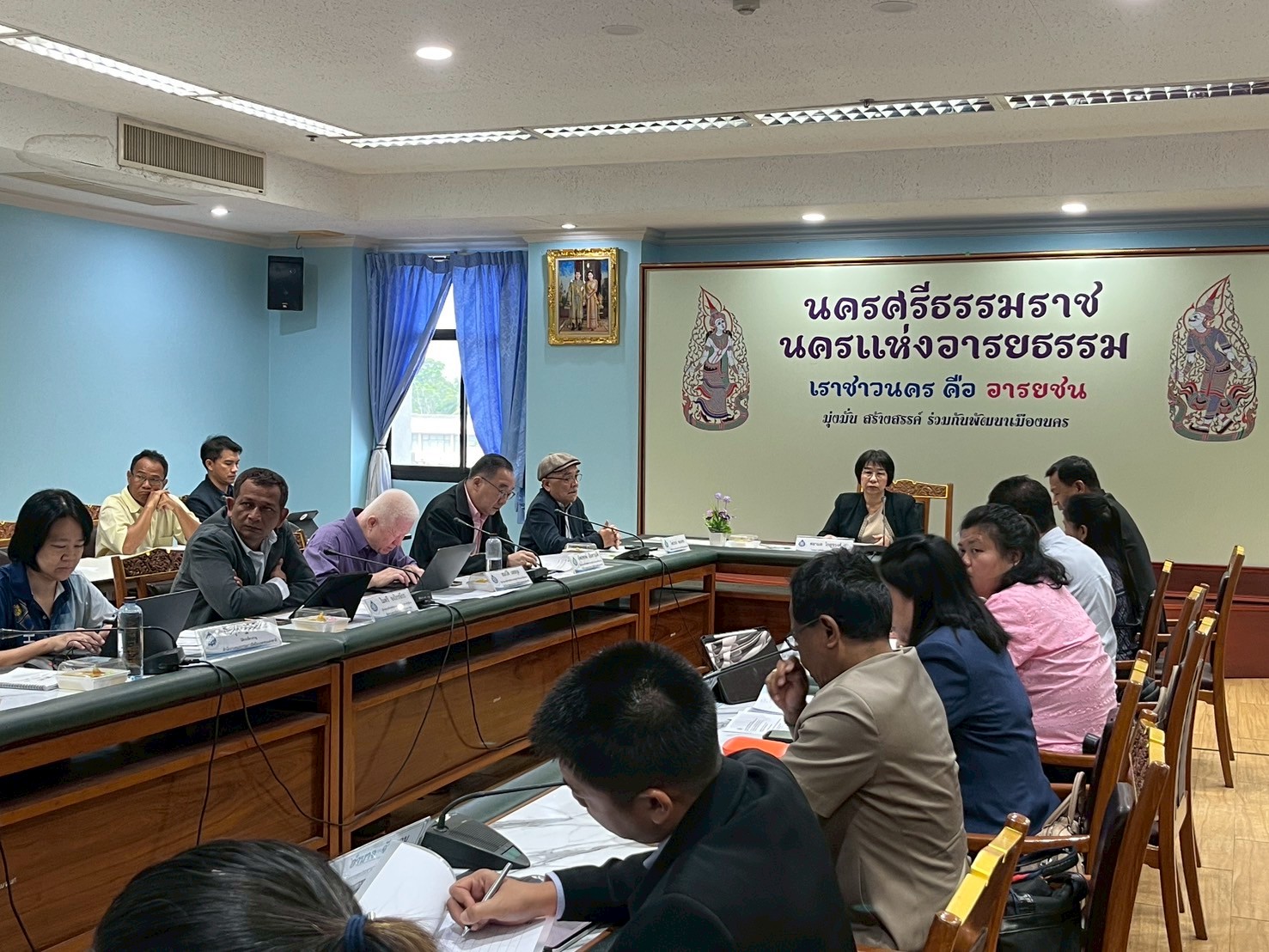 ในการนี้ที่ประชุมได้ร่วมกันแลกเปลี่ยนเรื่องการบริหารจัดการน้ำและภัยพิบัติในจังหวัดนครศรีธรรมราช ทั้งในด้านการจัดการน้ำในภาวะปกติและภาวะที่เกิดอุกกภัย การวางผังเมือง ผังน้ำ และการระบายน้ำของจังหวัด การเตือนภัยหรือเฝ้าระวังภัยพิบัติ การดำเนินการพื้นฟูและเยียวยาหลังเกิดภัยพิบัติ ตลอดจนการวิเคราะห์ปัญหาอุปสรรคของจังหวัดนครศรีธรรมราชจากเหตุการณ์อุกกภัยที่ผ่านมา พร้อมข้อเสนอแนะเพื่อพัฒนาการจัดการน้ำและภัยพิบัติในอนาคตโดยประชาชนมีส่วนร่วม