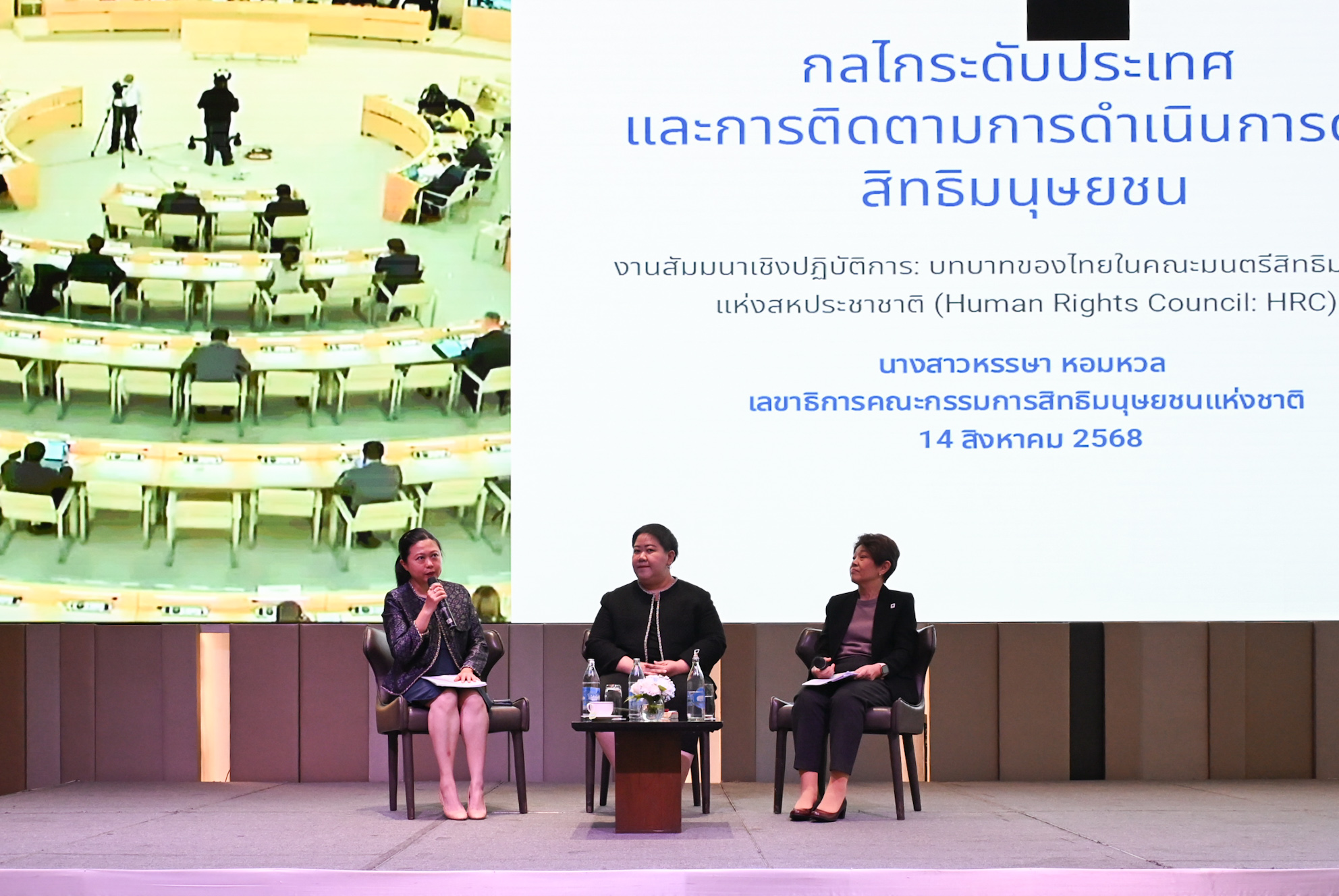 เมื่อวันที่ 14 สิงหาคม 2568 ที่โรงแรม Pullman Bangkok King Power ประธานกรรมการสิทธิมนุษยชนแห่งชาติ พรประไพ  กาญจนรินทร์ กล่าวเปิดการสัมมนาเชิงปฏิบัติการในหัวข้อ “บทบาทของไทยในคณะมนตรีสิทธิมนุษยชนแห่งสหประชาชาติ” (Human Rights Council: HRC) ซึ่งจัดโดยกระทรวงการต่างประเทศ โดยมีวัตถุประสงค์เพื่อนำเสนอการดำเนินงานของไทยในการประชุมคณะมนตรีสิทธิมนุษยชนแห่งสหประชาชาติ สมัยที่ 58 และ 59 อภิปรายผลการเยือนไทยอย่างเป็นทางการของกลไกพิเศษภายใต้ HRC และเตรียมการเพื่อขับเคลื่อนวาระต่าง ๆ ของไทยในฐานะสมาชิก HRC วาระปี 2568-2570 รวมถึงแลกเปลี่ยนข้อคิดเห็นกับหน่วยงานที่เกี่ยวข้องและภาคประชาสังคมในการดำเนินงานด้านสิทธิมนุษยชนในมิติต่าง ๆ