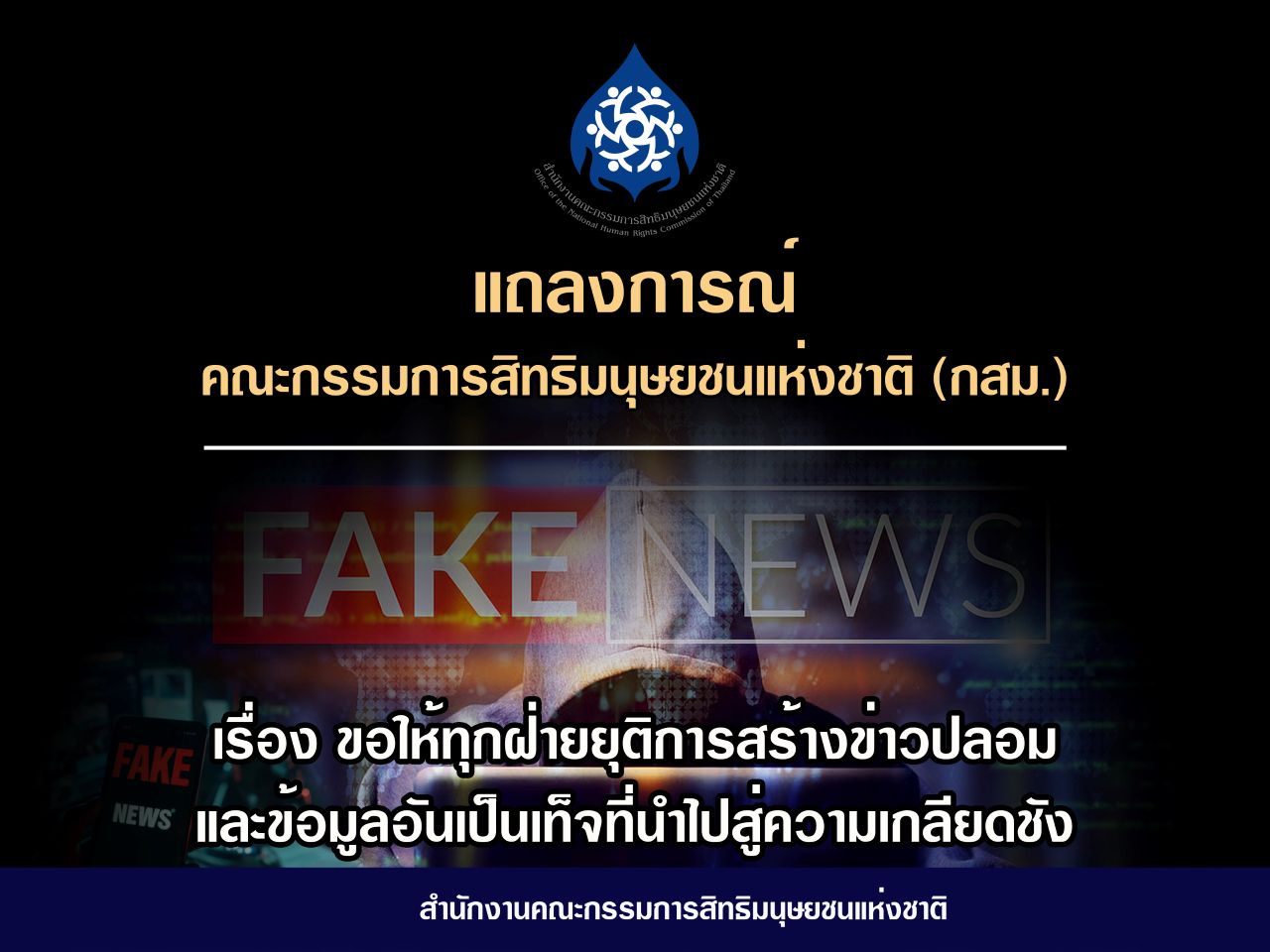 แถลงการณ์คณะกรรมการสิทธิมนุษยชนแห่งชาติ (กสม.) เรื่อง ขอให้ทุกฝ่ายยุติการสร้างข่าวปลอม ข่าวลวง และข้อมูลอันเป็นเท็จที่นำไปสู่ความเกลียดชัง