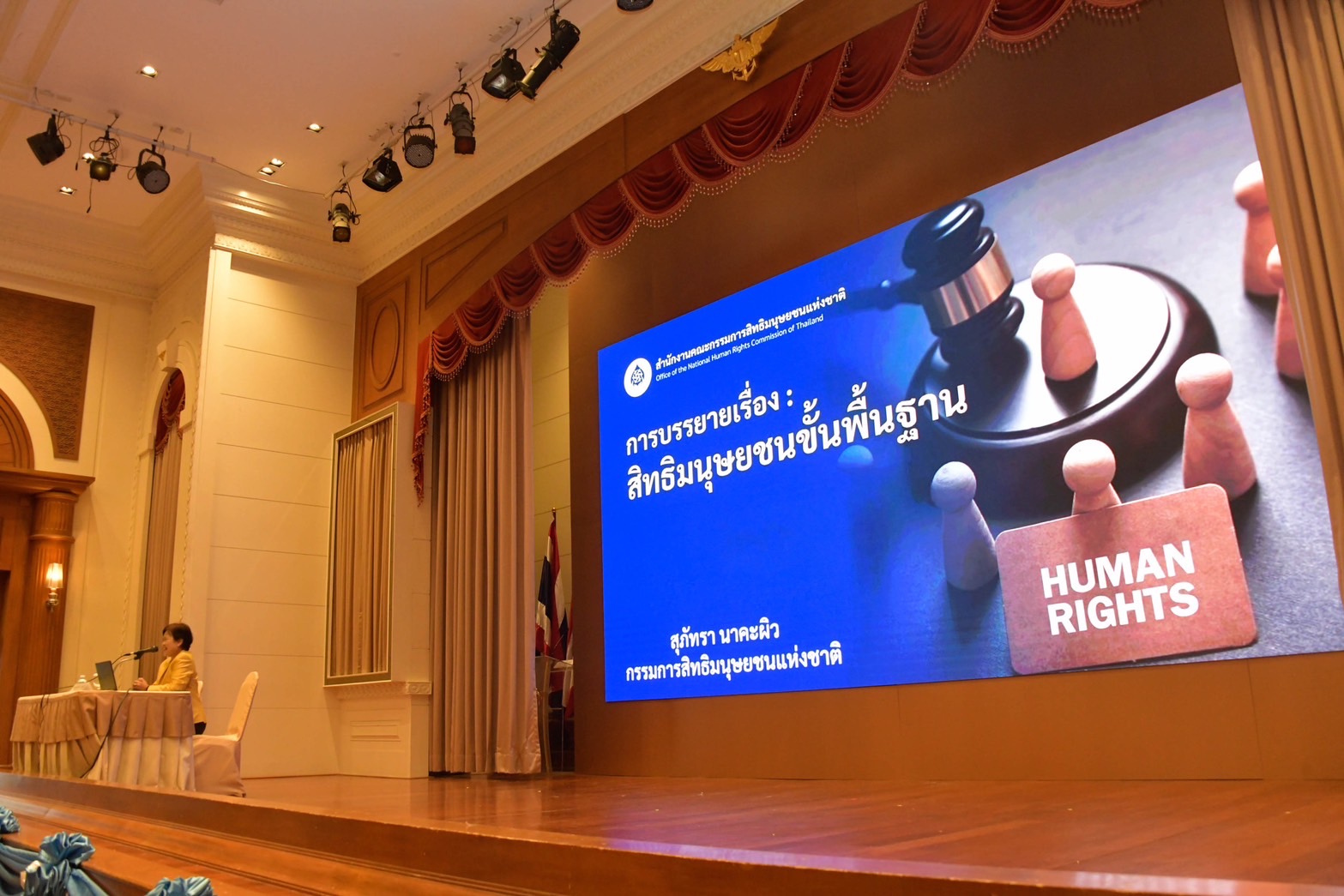 โดยในช่วงแรกของการอบรม กรรมการสิทธิมนุษยชนแห่งชาติได้กล่าวถึงหน้าที่และอำนาจ ตลอดจนองค์ประกอบของคณะกรรมการสิทธิมนุษยชนแห่งชาติ (กสม.) ตามพระราชบัญญัติประกอบรัฐธรรมนูญว่าด้วยคณะกรรมการสิทธิมนุษยชนแห่งชาติ พ.ศ. 2560 จากนั้นได้บรรยาย ให้ความรู้เกี่ยวกับความหมาย และหลักการของสิทธิมนุษยชน ซึ่งมีเนื้อหาครอบคลุมทั้งสิทธิพลเมือง สิทธิทางการเมือง สิทธิทางเศรษฐกิจ สังคม และวัฒนธรรม พร้อมยกกรณีตัวอย่างการละเมิดสิทธิมนุษยชน เพื่อเสริมสร้างความเข้าใจให้แก่ผู้เข้ารับการอบรมมากยิ่งขึ้น จากนั้นเปิดโอกาสให้ผู้เข้าร่วมการอบรมได้แลกเปลี่ยนความคิดเห็นและซักถามประเด็นต่าง ๆ ที่เกี่ยวข้องกับการส่งเสริมและคุ้มครองสิทธิมนุษยชน