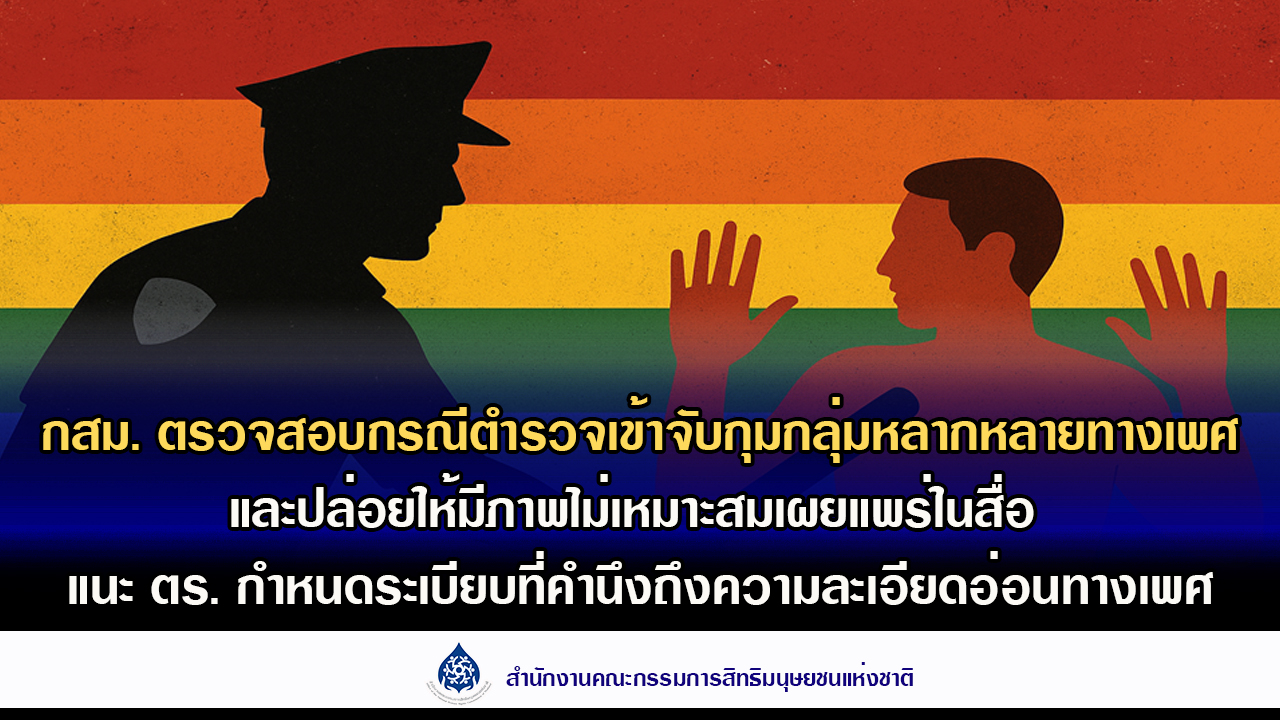1. กสม. ตรวจสอบกรณีร้องเรียนว่าเจ้าหน้าที่ตำรวจปฏิบัติหน้าที่ไม่เหมาะสมในการเข้าจับกุมกลุ่มหลากหลายทางเพศและปล่อยให้มีภาพเผยแพร่ในสื่อ แนะ ตร. กำหนดระเบียบที่คำนึงถึงความละเอียดอ่อนทางเพศ