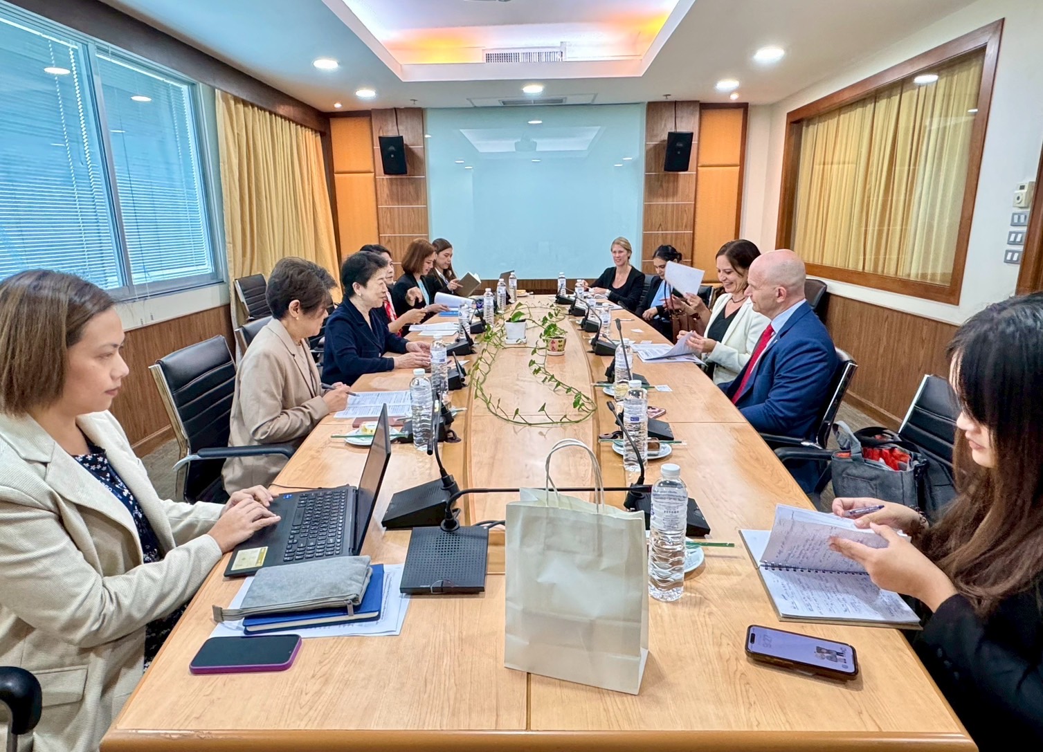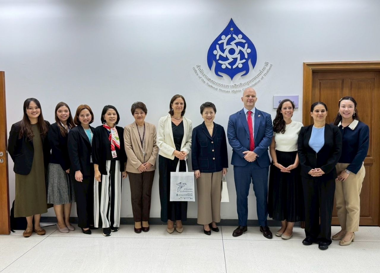 เมื่อวันที่ 22 สิงหาคม 2568 ประธาน กสม. พรประไพ  กาญจนรินทร์ พร้อมด้วยที่ปรึกษาประจำ กสม. รัตติกุล  จันทร์สุริยา เลขาธิการ กสม. หรรษา  หอมหวล ผู้อำนวยการสำนักสิทธิมนุษยชนระหว่างประเทศ ศศิพิมพ์  อร่ามพิบูลกิจ และเจ้าหน้าที่สำนักงาน กสม. พบหารือ เอกอัครราชทูตระดับโลกด้านสิทธิมนุษยชนแห่งสหราชอาณาจักรและรองผู้แทนถาวรประจำสหประชาชาติ ณ นครเจนีวา (UK’s Global Ambassador for Human Rights and Deputy Permanent Representative to the United Nations in Geneva) Eleanor Sanders และคณะผู้แทนสถานเอกอัครราชทูตอังกฤษประจำประเทศไทย ในโอกาสเยือนประเทศไทยอย่างเป็นทางการ