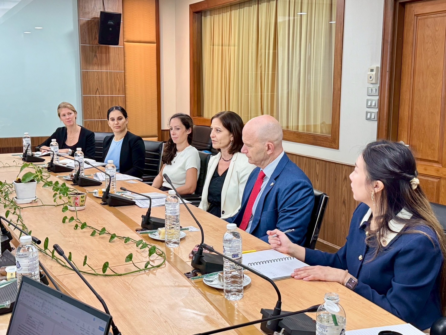 ทั้งสองฝ่ายได้แลกเปลี่ยนความคิดเห็นในหลายประเด็น อาทิ การคุ้มครองและส่งเสริมพื้นที่พลเมือง (civic space) เสรีภาพในการแสดงออกและการชุมนุมโดยสงบ การส่งกลับชาวอุยกูร์ รวมถึงปัญหาการหลอกลวงหรือฉ้อโกงทางออนไลน์ (scammer) โดยประธาน กสม. ได้ย้ำถึงความมุ่งมั่นในการทำงานของ กสม. ทั้งในด้านการรับเรื่องร้องเรียนและตรวจสอบข้อเท็จจริง การร่วมมือกับรัฐบาลและภาคประชาสังคมเพื่อผลักดันนโยบายด้านสิทธิมนุษยชน การผลักดันร่างกฎหมาย เช่น กฎหมายอากาศสะอาด และกฎหมายป้องกันการฟ้องปิดปาก (Anti-SLAPP Law) ตลอดจนการส่งเสริมให้การบังคับใช้กฎหมายและกระบวนการยุติธรรมในพื้นที่ชายแดนภาคใต้เป็นไปตามหลักสิทธิมนุษยชน รวมถึงการเตรียมการจัดทำรายงานคู่ขนานการประเมินสถานการณ์สิทธิมนุษยชนของประเทศไทยตามกระบวนการ UPR รอบที่ 4 โดยทั้งสองฝ่ายเห็นพ้องที่จะกระชับความร่วมมือ โดยเฉพาะการแลกเปลี่ยนองค์ความรู้เพื่อพัฒนาศักยภาพบุคลากรด้านการตรวจเยี่ยมสถานที่ควบคุมตัว และการแบ่งปันแนวปฏิบัติที่ดีในประเด็นสิทธิมนุษยชน เพื่อยกระดับมาตรฐานสิทธิมนุษยชนทั้งในระดับชาติและระหว่างประเทศต่อไป