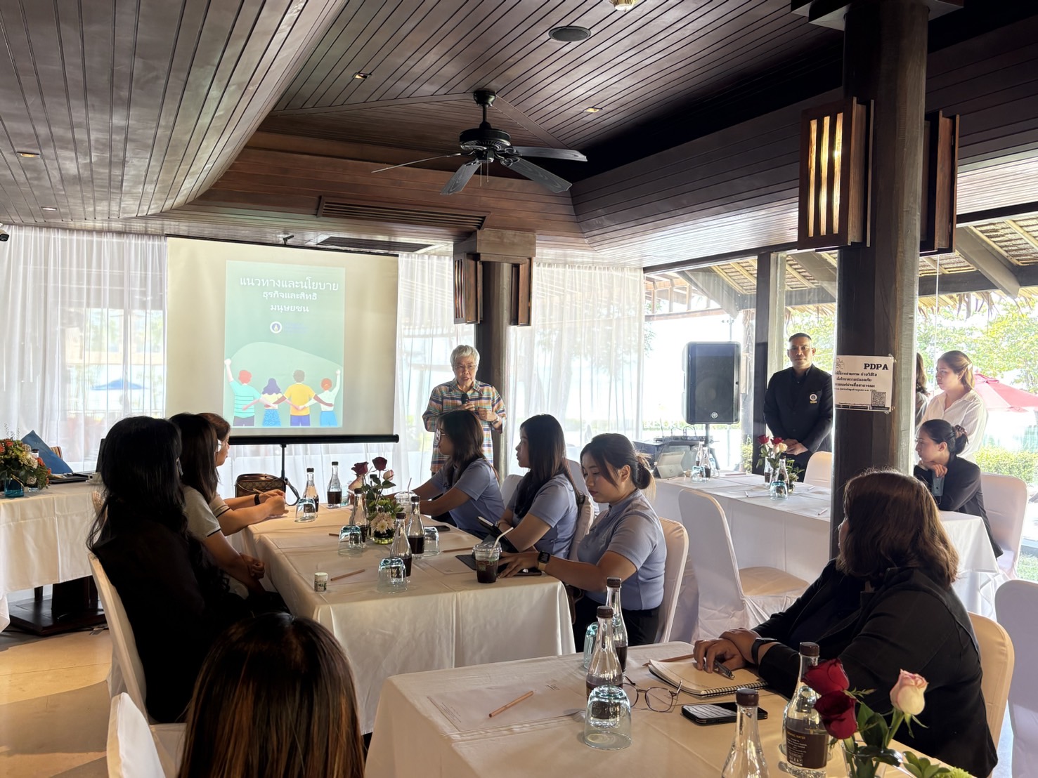 เมื่อวันที่ 19-21 สิงหาคม 2568 นางสาวปิติกาญจน์  สิทธิเดช กรรมการสิทธิมนุษยชนแห่งชาติ พร้อมด้วย นางสาวรตญา  กอบศิริกาญจน์ รองเลขาธิการ กสม. และเจ้าหน้าที่สำนักงาน กสม. จัดประชุมเชิงปฏิบัติการเพื่อเสริมสร้างความรู้และความเข้าใจด้านการประกอบธุรกิจที่สอดคล้องกับหลักการสิทธิมนุษยชน รวมถึงการวิเคราะห์และประเมินความเสี่ยงด้านสิทธิมนุษยชนที่อาจเกิดขึ้นจากการประกอบธุรกิจ โดยมีกลุ่มเป้าหมาย คือ คณะกรรมการหอการค้าจังหวัดภูเก็ต และองค์กรภาคธุรกิจที่มีเจตจำนงค์ในการประกอบธุรกิจที่เคารพสิทธิมนุษยชน