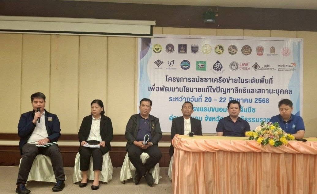 เมื่อวันที่ 20 – 22 สิงหาคม 2568  คณะกรรมการสิทธิมนุษยชนแห่งชาติ (กสม.) จัดโครงการสมัชชาเครือข่ายในระดับพื้นที่ เพื่อพัฒนานโยบายแก้ไขปัญหาสิทธิและสถานะบุคคล ภายใต้โครงการคลินิกสิทธิมนุษยชน ณ โรงแรมขนอมโกลเด้นบีช อำเภอขนอม จังหวัดนครศรีธรรมราช โดยความร่วมมือจากภาคีเครือข่ายทั้งภาครัฐ ภาคประชาสังคม อาทิ กระทรวงศึกษาธิการ กรมการปกครอง กระทรวงมหาดไทย กรมคุ้มครองสิทธิและเสรีภาพ กระทรวงยุติธรรม สำนักงานพระพุทธศาสนาแห่งชาติ มูลนิธิเครือข่ายสถานะบุคคล เครือข่ายการแก้ไขปัญหาคืนสัญชาติคนไทย จังหวัดพังงา ระนอง ชุมพร ประจวบคีรีขันธ์ มูลนิธิชุมชนไท มูลนิธิศุภนิมิตแห่งประเทศไทย และเครือข่ายอื่น ๆ เข้าร่วมงาน ซึ่งวัตถุประสงค์ของการจัดงานครั้งนี้เพื่อเร่งรัดและขับเคลื่อนการแก้ไขปัญหาสถานะทางทะเบียนของบุคคลไร้รัฐไร้สัญชาติที่ยังมีปัญหาสถานะให้เข้าถึงสิทธิขั้นพื้นฐาน ตามข้อมติสมัชชาสิทธิมนุษยชน โดยมี นางปรีดา  คงแป้น กรรมการสิทธิมนุษยชนแห่งชาติ กล่าวต้อนรับและเปิดเวทีสมัชชาเครือข่ายในระดับพื้นที่ เพื่อพัฒนานโยบายแก้ไขปัญหาสิทธิและสถานะบุคคล