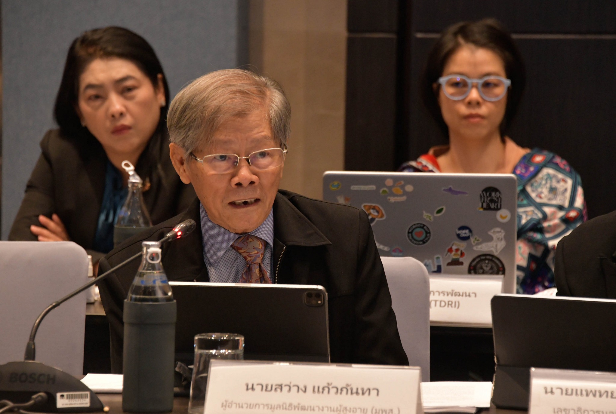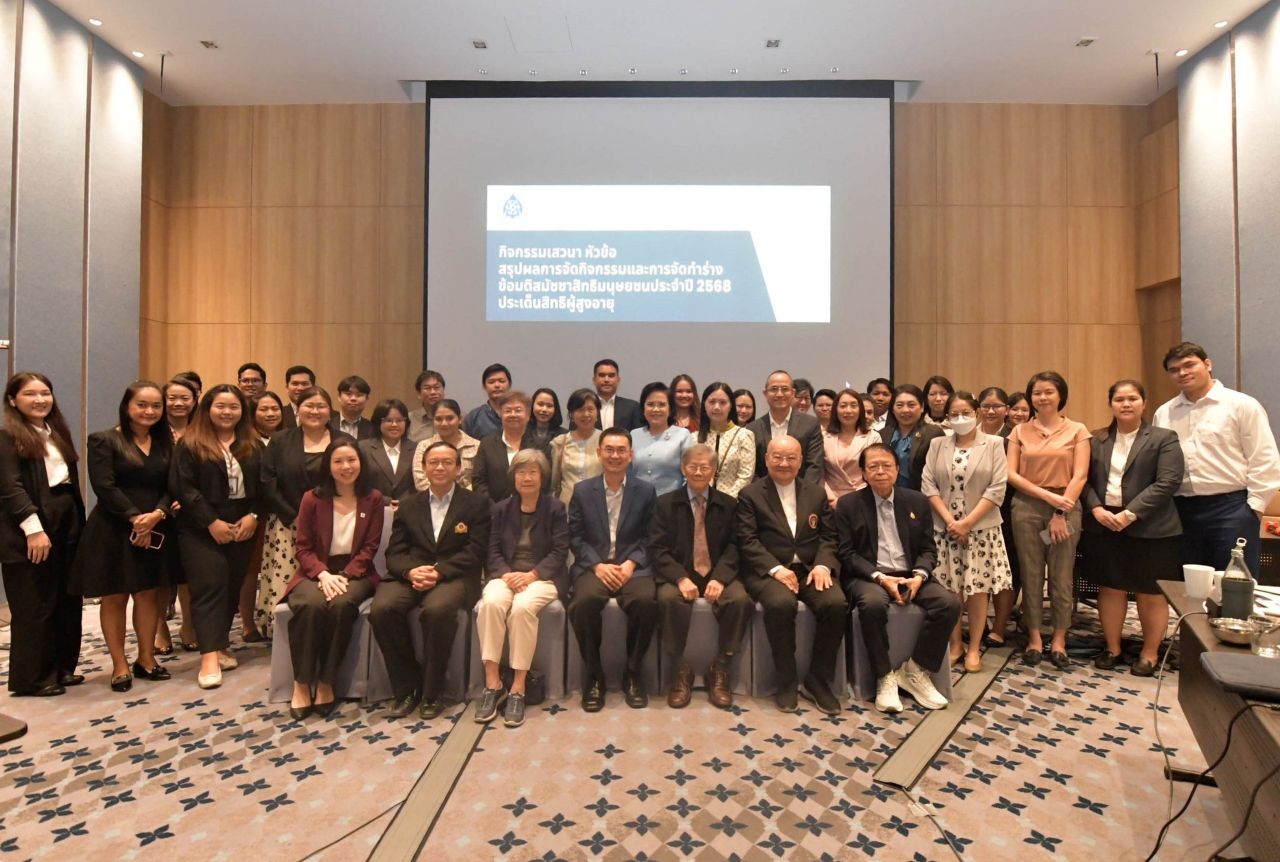 เมื่อวันที่ 3 กันยายน 2568 เวลา 9.00 น. นายวสันต์  ภัยหลีกลี้ กรรมการสิทธิมนุษยชนแห่งชาติ พร้อมด้วยนางสาวหรรษา  หอมหวล เลขาธิการ กสม. นางสาวทิพย์ธีรา  รัมมณีย์ ผู้อำนวยการสำนักกฎหมาย และเจ้าหน้าที่สำนักงาน กสม. เข้าร่วมการเสวนา "สรุปผลการจัดกิจกรรมและการจัดทำร่างข้อมติสมัชชาสิทธิมนุษยชน ประจำปี 2568 ประเด็นสิทธิผู้สูงอายุ" โดยมีผู้แทนจากหน่วยงานภาครัฐ ภาคประชาสังคม ภาคเอกชน สถาบันวิชาการ สถาบันการศึกษา และองค์การระหว่างประเทศ ประกอบด้วย กรมกิจการผู้สูงอายุ กรมอนามัย กรมองค์การระหว่างประเทศ สำนักงานประกันสังคม สำนักงานคณะกรรมการกำกับหลักทรัพย์และตลาดหลักทรัพย์ สำนักงานเลขาธิการสภาผู้แทนราษฎร สำนักงานปลัดกระทรวงแรงงาน สำนักงานคณะกรรมการสุขภาพแห่งชาติ สำนักงานคณะกรรมการข้าราชการพลเรือน สำนักงานเศรษฐกิจการคลัง สำนักงานสภาพัฒนาการเศรษฐกิจและสังคมแห่งชาติ กองทุนบำเหน็จบำนาญข้าราชการ กองทุนการออมแห่งชาติ สถาบันวิจัยเพื่อการพัฒนาประเทศไทย (TDRI) ศูนย์พัฒนาธุรกิจและการดูแลสังคมสูงอายุ มหาวิทยาลัยธรรมศาสตร์ สถาบันวิจัยประชากรและสังคม มหาวิทยาลัยมหิดล วิทยาลัยประชากรศาสตร์ ศูนย์วิจัยสังคมสูงอายุ สถาบันบัณฑิตพัฒนบริหารศาสตร์ คณะกรรมาธิการกิจการเด็ก เยาวชน สตรี ผู้สูงอายุ ผู้พิการ กลุ่มชาติพันธุ์ และผู้มีความหลากหลายทางเพศ สภาผู้แทนราษฎร มูลนิธิสถาบันวิจัยและพัฒนาผู้สูงอายุไทย (มส.ผส.) มูลนิธิพัฒนางานผู้สูงอายุ (มพส.) สภาองค์การนายจ้างแห่งประเทศไทย YWCA of Bangkok บริษัท บุญมีฤทธิ์ มีเดีย จำกัด (มนุษย์ต่างวัย) และสำนักงานข้าหลวงใหญ่สิทธิมนุษยชนแห่งสหประชาชาติ (OHCHR) เข้าร่วมเสวนา ณ ห้องประชุม Erawan I-II โรงแรมคอร์ทยาร์ด บาย แมริออท และผ่านระบบ Zoom Meeting