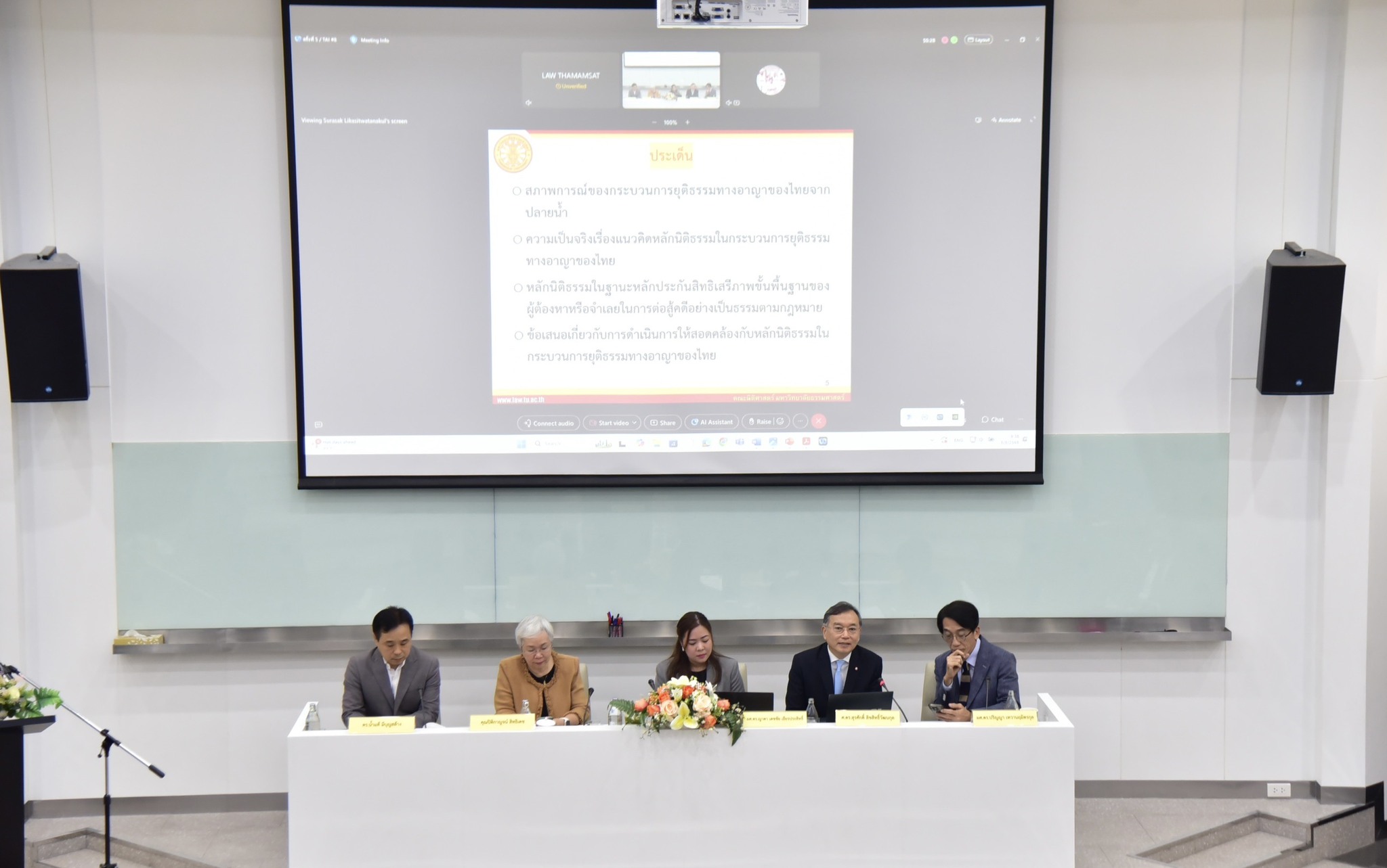 เมื่อวันที่ 3 กันยายน 2568 ที่ห้องจี๊ด เศษฐบุตร คณะนิติศาสตร์ มหาวิทยาลัยธรรมศาสตร์ ท่าพระจันทร์ สถาบันนิติวัชร์ สำนักงานอัยการสูงสุด ร่วมกับคณะกรรมการสิทธิมนุษยชนแห่งชาติ (กสม.) และเครือข่ายคณะนิติศาสตร์จากมหาวิทยาลัยธรรมศาสตร์ (มธ.) จุฬาลงกรณ์มหาวิทยาลัย มหาวิทยาลัยรามคำแหง และมหาวิทยาลัยธุรกิจบัณฑิต จัดเสวนาวิชาการหัวข้อ “หลักนิติธรรมกับกระบวนการยุติธรรมทางอาญาไทย” โดยได้รับเกียรติจาก รศ.ดร.ต่อพงศ์  กิตติยานุพงศ์ รองคณบดีฝ่ายวิชาการและพัฒนานักศึกษา มธ. กล่าวเปิดงาน และ นายบัญชา เขียวต่าย เลขาธิการสถาบันนิติวัชร์ สำนักงานอัยการสูงสุด กล่าวปาฐกถา เวทีเสวนาดังกล่าว นางสาวปิติกาญจน์  สิทธิเดช กรรมการสิทธิมนุษยชนแห่งชาติ ได้ร่วมแลกเปลี่ยนความคิดเห็นกับผู้ทรงคุณวุฒิด้านกฎหมาย อาทิ ศ.ดร.สุรศักดิ์ ลิขสิทธิวัฒนกุล และผศ. ดร. ปริญญา เทวานฤมิตรกุล อาจารย์ประจำคณะนิติศาสตร์ มธ. รวมถึง ดร. น้ำแท้  มีบุญสล้าง เลขานุการรองอัยการสูงสุด สำนักงานอัยการสูงสุด โดยมีคณาจารย์ นักวิชาการ บุคลากรในกระบวนการยุติธรรม ผู้เข้าร่วมกว่า 80 คน ตลอดจนผู้สนใจทั่วไปที่ติดตามผ่าน Facebook Live