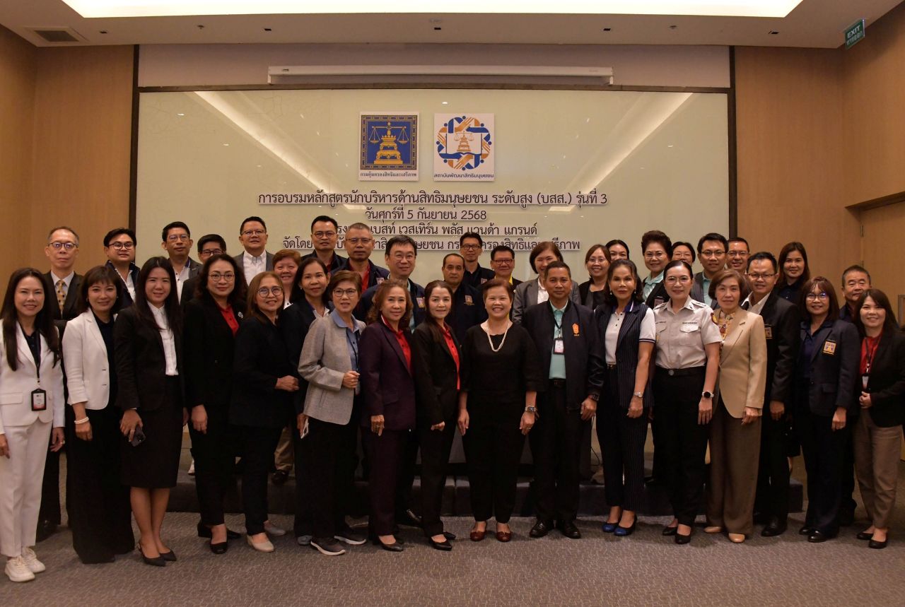 วันที่ 5 กันยายน 2568 เวลา 09.00 น. ที่ห้องประชุมห้องเบซิล ชั้น 3 โรงแรมเบส เวสเทิร์น พลัส แวนด้า แกรนด์ จังหวัดนนทบุรี นางสาวสุภัทรา นาคะผิว กรรมการสิทธิมนุษยชนแห่งชาติ เป็นวิทยากรบรรยายให้แก่ผู้เข้ารับการอบรมหลักสูตรนักบริหารด้านสิทธิมนุษยชนระดับสูง รุ่นที่ 3 ในหัวข้อ “การแลกเปลี่ยนประสบการณ์กับนักสิทธิมนุษยชน” จัดโดย สถาบันพัฒนาสิทธิมนุษยชน กรมคุ้มครองสิทธิและเสรีภาพ กระทรวงยุติธรรม