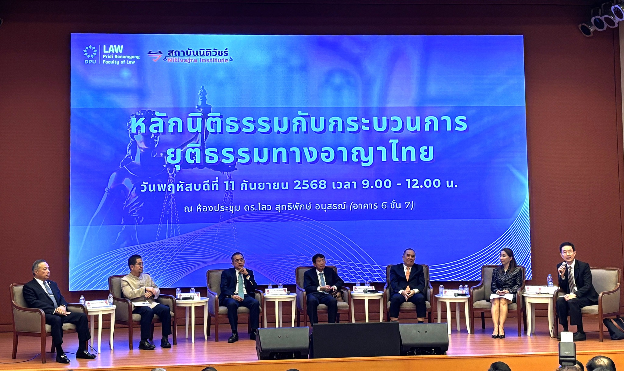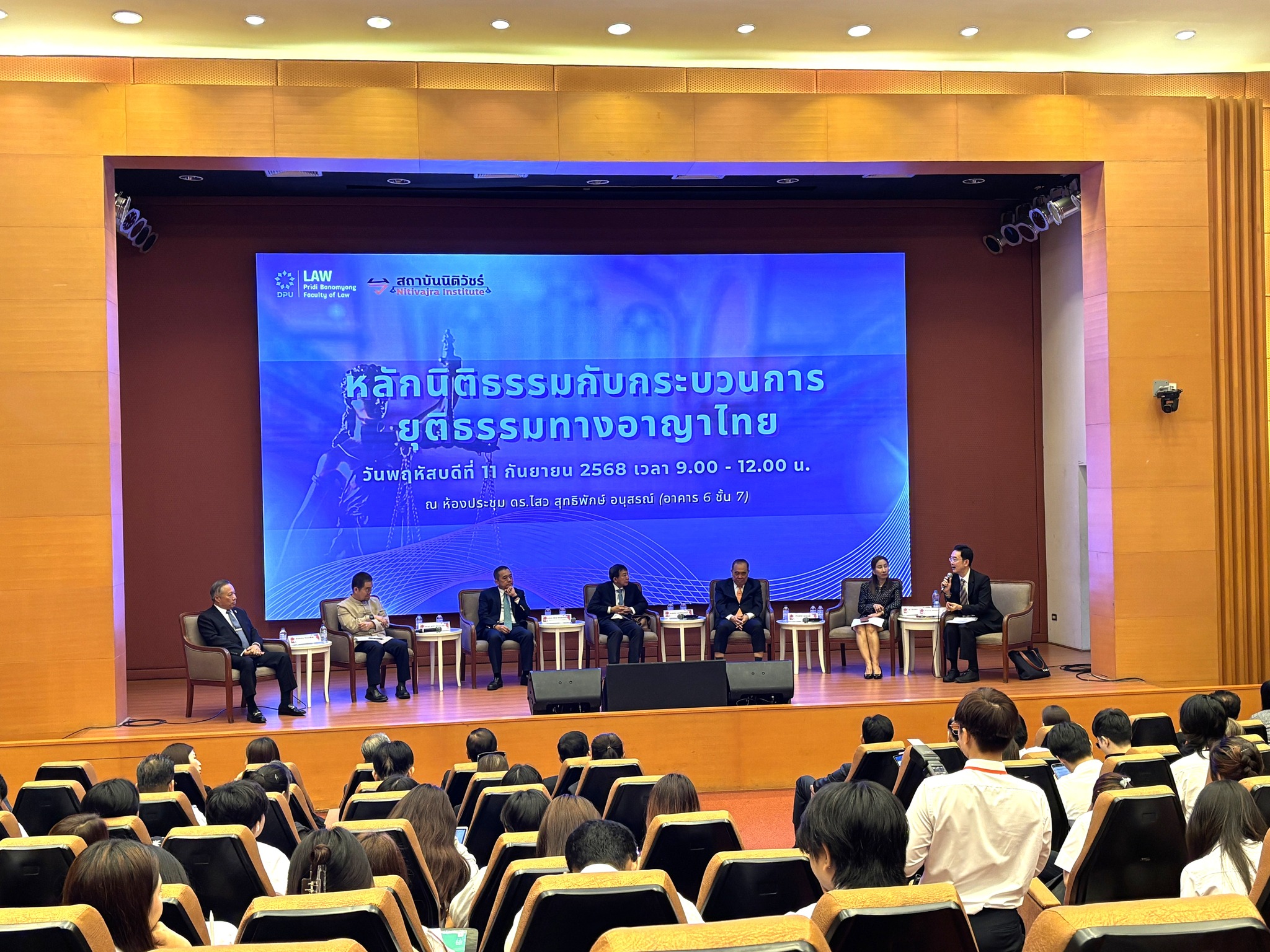 เมื่อวันที่ 11 กันยายน 2568 ที่ห้องประชุม ดร. ไสว สุทธิพักษ์ อนุสรณ์ คณะนิติศาสตร์ปรีดี พนมยงค์ มหาวิทยาลัยธุรกิจบัณฑิตย์ สำนักงานอัยการสูงสุด สถาบันนิติวัชร์ จัดเสวนาวิชาการ “หลักนิติธรรมกับกระบวนการยุติธรรมทางอาญาไทย” ครั้งที่ 3 ซึ่งสำนักงานคณะกรรมการสิทธิมนุษยชนแห่งชาติ (สำนักงาน กสม.)  พร้อมด้วยเครือข่ายคณะนิติศาสตร์จากมหาวิทยาลัยธรรมศาสตร์ จุฬาลงกรณ์มหาวิทยาลัย มหาวิทยาลัยรามคำแหง และมหาวิทยาลัยธุรกิจบัณฑิตเป็นองค์กรร่วมจัดกิจกรรมดังกล่าว โดยมีเป้าหมายสำคัญเพื่อขับเคลื่อนการพัฒนากระบวนการยุติธรรมไทยให้สอดคล้องกับหลักนิติธรรม ผ่านการแลกเปลี่ยนองค์ความรู้และข้อเสนอเชิงนโยบาย