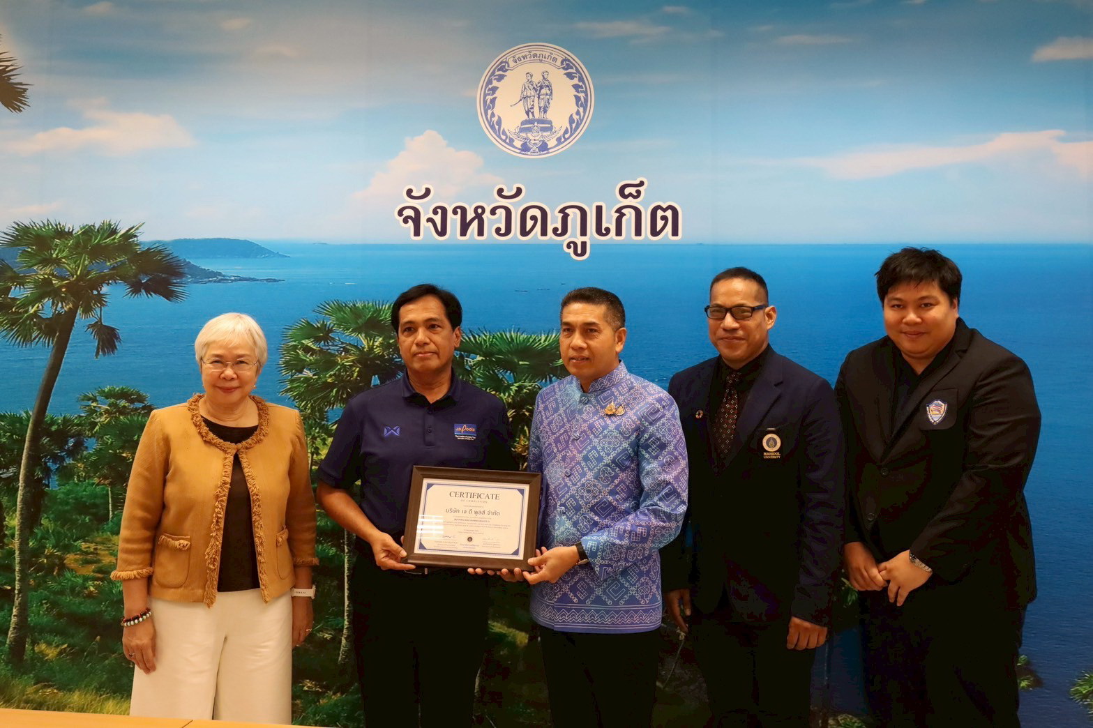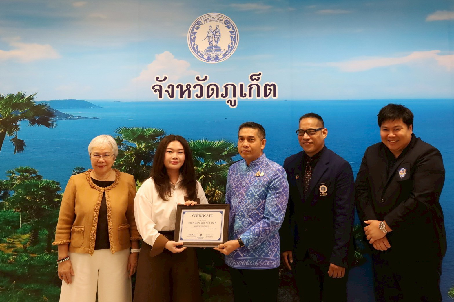 กิจกรรมในครั้งนี้มีภาคธุรกิจที่ผ่านการประเมินจากวิทยาลัยการจัดการ มหาวิทยาลัยมหิดล และได้รับประกาศนียบัตร จำนวน 11 องค์กร ได้แก่ 1) บริษัท เจ.ดี.พูลส์ จำกัด 2) บริษัท ทวีภัณฑ์ ภูเก็ต จำกัด 3) บริษัท คุณแม่จู้ จำกัด 4) บริษัท อันดามัน แทร็คกิ้ง จำกัด 5) บริษัท ภูเก็ต พัชทรี ทัวร์ จำกัด 6) บริษัท พัชทรี ทัวร์ กรุ๊ป จำกัด 7) บริษัท ทีเอส เวิลด์ เอ็นเตอร์ไพรส์ จำกัด 8) โรงเรียนพัชรบริบาลภูเก็ต 9) บริษัท สิภัทรตรา จำกัด 10) โรงแรม บ้านยินดี บูติค รีสอร์ท และ11) บริษัท ภูเก็ต อินเตอร์เนชั่นเเนล เพ็ทแคร์ เซ็นเตอร์ จำกัด โดยกิจกรรมดังกล่าวเกิดขึ้นจากการประสานความร่วมมือเพื่อส่งเสริมการพัฒนาธุรกิจอย่างยั่งยืนและเคารพสิทธิมนุษยชน ระหว่างสำนักงาน กสม. วิทยาลัยการจัดการมหาวิทยาลัยมหิดล และหอการค้าจังหวัดภูเก็ต