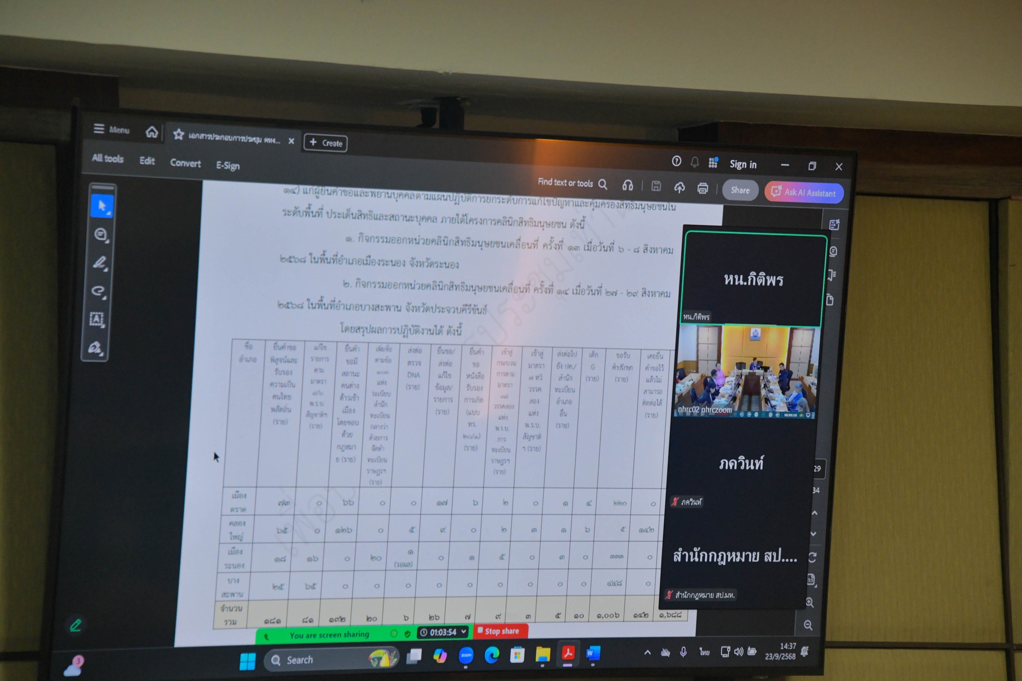 เมื่อวันที่ 23 กันยายน 2568 เวลา 14.00 น. ที่ห้องประชุม 606 สำนักงาน กสม. นางปรีดา  คงแป้น และนางสาวปิติกาญจน์  สิทธิเดช กรรมการสิทธิมนุษยชนแห่งชาติ ประชุมคณะทำงานขับเคลื่อนการแก้ไขปัญหาสิทธิและสถานะบุคคลกลุ่มคนไทยพลัดถิ่น ครั้งที่ 2/2568 เพื่อติดตามความคืบหน้าการดำเนินการแก้ไขปัญหากลุ่มคนไทยพลัดถิ่นที่อยู่ระหว่างการรอพิสูจน์ตามพระราชบัญญัติสัญชาติ (ฉบับที่ 5) พ.ศ. 2555 ที่ประชุมได้พูดคุยถึงความคืบหน้าการดำเนินงานของคณะกรรมการับรองความเป็นคนไทยพลัดถิ่น การดำเนินงานตามแผนประชาสัมพันธ์โครงการคลินิกสิทธิมนุษยชนและหนังสือกระทรวงมหาดไทย เกี่ยวกับการขับเคลื่อนการแก้ไขปัญหาสิทธิและสถานะบุคคลกลุ่มคนไทยพลัดถิ่น การมอบประกาศนียบัตรหรือประกาศเกียรติคุณสำหรับหน่วยงานภาครัฐ ภาคประชาสังคม และหน่วยงานที่เกี่ยวข้อง ในการให้ความร่วมมือเพื่อยกระดับการแก้ไขปัญหาสิทธิและสถานะบุคคล กลุ่มคนไทยพลัดถิ่น นอกจากนี้ยังพูดคุยถึงความคืบหน้าผลการดำเนินงานและปัญหาอุปสรรคในการแก้ไขปัญหาสิทธิและสถานะบุคคลกลุ่มคนไทยพลัดถิ่นผ่านการออกหน่วยคลินิกสิทธิมนุษยชน และภาพรวมการดำเนินงานใน 7 จังหวัดเป้าหมาย
