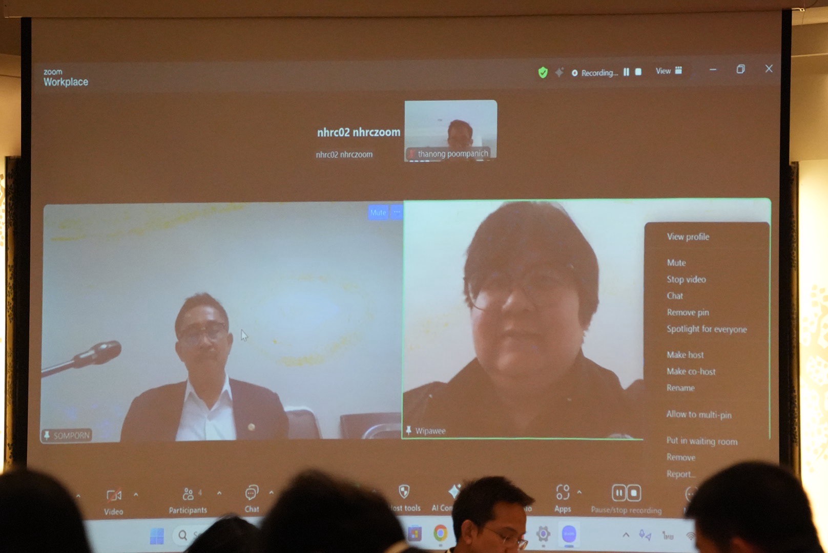เมื่อวันที่ 24 กันยายน 2568 เวลา 09.00 น. นายวสันต์  ภัยหลีกลี้ กรรมการสิทธิมนุษยชนแห่งชาติ พร้อมด้วยนางสาวพิมพ์ดาว  จันทรขันตี ผู้อำนวยการสำนักคุ้มครองสิทธิมนุษยชน 1 และเจ้าหน้าที่สำนักงาน กสม. ประชุมรับฟังความเห็นเพื่อประกอบการศึกษาและจัดทำข้อเสนอแนะมาตรการหรือแนวทางในการส่งเสริมและคุ้มครองสิทธิมนุษยชน และข้อเสนอแนะในการแก้ไขปรับปรุงกฎหมายเพื่อให้สอดคล้องกับหลักสิทธิมนุษยชน กรณีมวยเด็ก ร่วมกับนายแพทย์อดิศักดิ์  ผลิตผลการพิมพ์ ผู้ทรงคุณวุฒิด้านสิทธิเด็กของคณะกรรมการสิทธิมนุษยชนแห่งชาติ (กสม.) นายสมพร  ไชยสงคราม และนายทนง  พุ่มพานิช ผู้ทรงคุณวุฒิด้านกีฬามวยของ กสม. ผู้แทนการกีฬาแห่งประเทศไทย ผู้แทนกองทุนพัฒนาการกีฬาแห่งชาติ ผู้แทนกรมกิจการเด็กและเยาวชน กระทรวงการพัฒนาสังคมและความมั่นคงของมนุษย์ ผู้แทนกรมพลศึกษา กระทรวงการท่องเที่ยวและกีฬา ผู้แทนกรมสวัสดิการและคุ้มครองแรงงาน กระทรวงแรงงาน ผู้แทนกรมส่งเสริมวัฒนธรรม กระทรวงวัฒนธรรม ผู้แทนสถาบันแห่งชาติเพื่อการพัฒนาเด็กและครอบครัว มหาวิทยาลัยมหิดล ผู้แทนคณะวิทยาศาสตร์การกีฬาและสุขภาพ มหาวิทยาลัยเกษตรศาสตร์ ผู้แทนโรงเรียนกีฬากรุงเทพมหานคร ผู้แทนมหาวิทยาลัยการกีฬาแห่งชาติ ผู้แทนโรงเรียนมวยไทยรังสิต ผู้แทนโรงเรียนมวยไทยลุมพินี หัวหน้าค่ายมวยและนักวิทยาศาสตร์การกีฬาของค่ายมวย ส.เทพรัตน์ มวยไทย จังหวัดพระนครศรีอยุธยา ณ ห้องประชุมทิวลิป โรงแรมรามาการ์เด้นส์ กรุงเทพฯ และผ่านระบบออนไลน์ (Zoom Meeting)