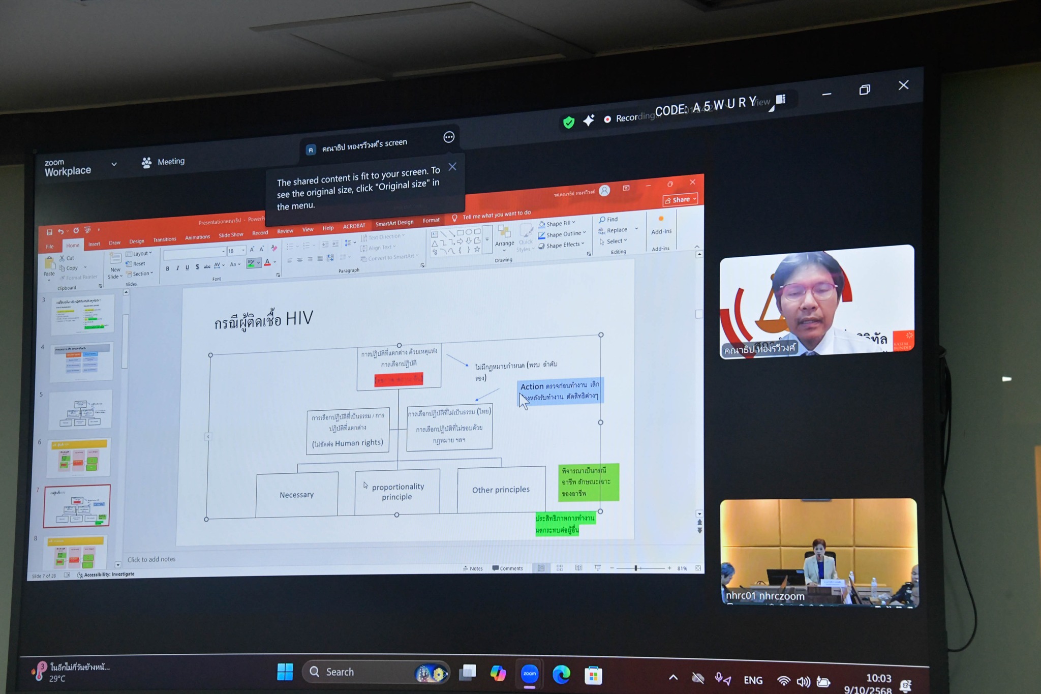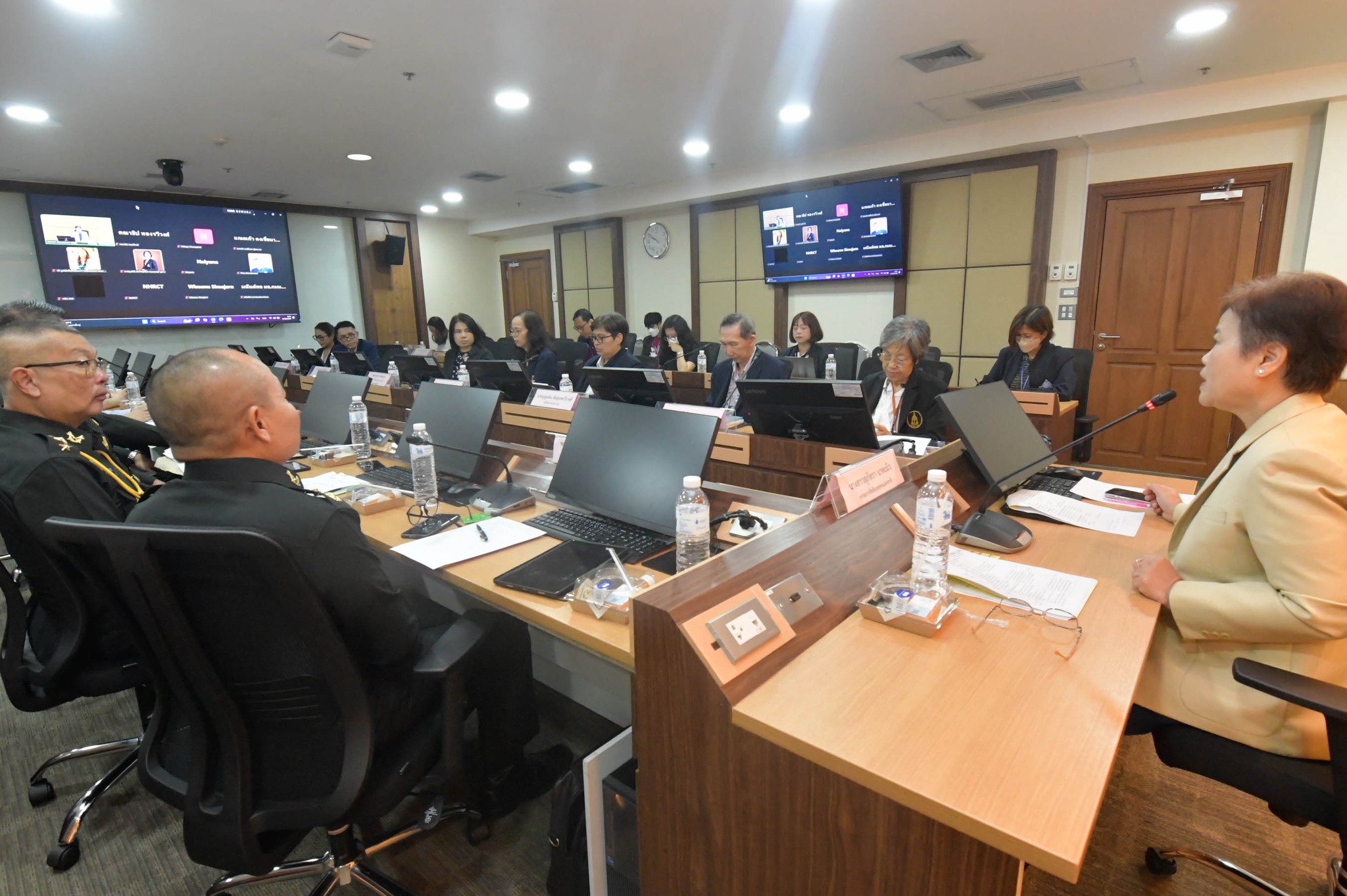 เมื่อวันที่ 9 ตุลาคม 2568 เวลา 09.00 น. ที่ห้องประชุม 606 สำนักงาน กสม. และผ่านระบบ Zoom Meeting นางสาวสุภัทรา  นาคะผิว กรรมการสิทธิมนุษยชนแห่งชาติ พร้อมนายบุญแทน  ตันสุเทพวีรวงศ์ ที่ปรึกษาประจำ กสม. และเจ้าหน้าที่สำนักงาน กสม. เข้าร่วมการประชุมติดตามผลการดำเนินการตามข้อเสนอแนะของคณะกรรมการสิทธิมนุษยชนแห่งชาติ (กสม.) กรณีกองทัพอากาศประกาศรับสมัครสอบคัดเลือกเข้ารับราชการ โดยกำหนดเงื่อนไขให้มีการตรวจเชื้อเอชไอวี และกฎกระทรวงกำหนดให้ภาวะกะเทยเป็นโรคซึ่งไม่สามารถเข้ารับราชการทหารได้ ร่วมกับ ผู้ทรงคุณวุฒิของ กสม. ประกอบด้วย นางสาวจันทิมา  ธนาสว่างกุล ศ.พญ. ธนินี  สหกิจรุ่งเรือง รศ.นพ. ธีระ  วรธนารัตน์ รศ. คณาธิป  ทองรวีวงศ์ พญ. นิตยา  ภานุภาค พึ่งพาพงศ์ และนางสาวนัยนา  สุภาพึ่ง รวมถึงหน่วยงานที่เกี่ยวข้อง ประกอบด้วย กรมการสรรพกำลังกลาโหม กรมพระธรรมนูญ กรมเสมียนตรา กองทัพอากาศ กรมควบคุมโรค และกระทรวงมหาดไทย และเครือข่ายภาคประชาสังคม ประกอบด้วย มูลนิธิเพื่อสิทธิและความหลากหลาย (FAIR) มูลนิธิเพื่อสิทธิและความเป็นธรรมทางเพศ และสมาคมฟ้าสีรุ้งแห่งประเทศไทย สาระสำคัญของการประชุมได้พิจารณาผลดำเนินการ กรณีการกำหนดเงื่อนไขให้มีการตรวจเชื้อเอชไอวี และกรณียกเลิกคำว่า “ภาวะกะเทย” ซึ่งไม่สามารถจะรับราชการทหารตามกฎกระทรวง ฉบับที่ 74 (พ.ศ. 2540) ออกตามความในพระราชบัญญัติรับราชการทหาร พ.ศ. 2497 ของกระทรวงกลาโหม และหน่วยงานภายใต้สังกัด ซึ่ง กสม. จะรวบรวมข้อมูลที่ได้จากการประชุมและข้อเสนอแนะ เสนอให้กระทรวงกลาโหมเพื่อพิจารณาดำเนินการต่อไป