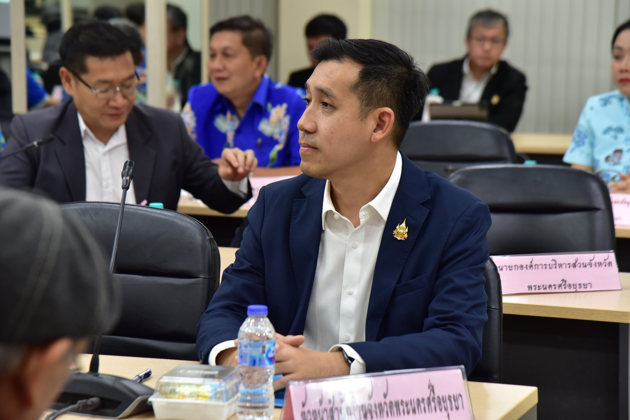 ช่วงบ่าย ที่ศาลากลางจังหวัดพระนครศรีอยุธยา กรรมการสิทธิมนุษยชนแห่งชาติและคณะ ประชุมร่วมกับผู้แทนหน่วยงานภาครัฐที่มีหน้าที่เกี่ยวข้องกับการบริหารจัดการน้ำในจังหวัด โดยมีผู้แทนประชาชนได้รับผลกระทบ และสมาชิกสภาผู้แทนราษฎร จ. พระนครศรีอยุธยา เขต 1 เข้าร่วมประชุมด้วย ในการนี้ที่ประชุมได้แลกเปลี่ยนข้อมูลและหารือถึงการบริหารจัดการน้ำท่วมในพื้นที่ทุ่งแก้มลิง กระบวนการสร้างความเข้าใจและการมีส่วนร่วมของชาวบ้านที่อาจได้รับผลกระทบ ตลอดจนแนวทางการแก้ไขปัญหา ให้ความช่วยเหลือ เยียวยา เพื่อลดผลกระทบต่อคุณภาพชีวิตและที่อยู่อาศัยของชาวบ้านในพื้นที่
