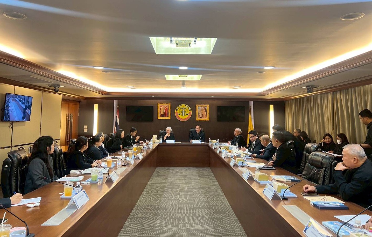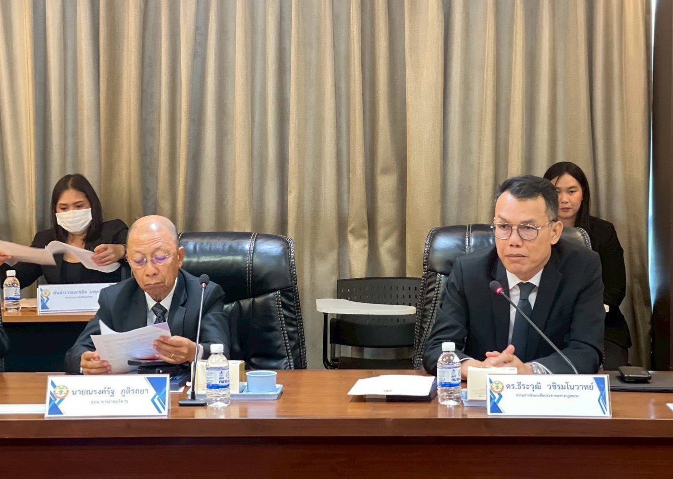 ในการนี้ ดร.ธนพล  คงเจี้ยง นายกสภาทนายความ พร้อมด้วยนายสมศักดิ์  อัจจิกุล เลขาธิการสภาทนายความ นายสรัลชา  ศรีชลวัฒนา อุปนายกฝ่ายช่วยเหลือประชาชนทางกฎหมาย นายวิชาญ  ทองรัก อุปนายกฝ่ายปฏิบัติการ นายณรงค์รัฐ  ภูติรถยา อุปนายกฝ่ายบริหาร ดร.ธีระวุฒิ  วชิรมโนวาทย์ กรรมการช่วยเหลือประชาชนทางกฎหมาย และคณะทำงาน ร่วมให้การต้อนรับ พร้อมนำเสนอนโยบาย แนวทาง และการดำเนินงานเพื่อยกระดับการให้ความช่วยเหลือทางกฎหมายแก่ประชาชน เช่น การจัดทนายความให้คำปรึกษาในชั้นสอบสวน การจัดทนายความประจำที่ศาล และการเผยแพร่ให้ความรู้ทางกฎหมายแก่ประชาชน ทั้งนี้ การช่วยเหลือทางคดีโดยไม่มีค่าใช้จ่ายจะต้องเป็นไปตามเงื่อนไข 2 ประการ คือ ผู้ขอรับความช่วยเหลือต้องเป็นผู้ยากไร้และไม่ได้รับความเป็นธรรม นอกจากนี้ สภาทนายความยังได้สะท้อนข้อท้าทายในการดำเนินงาน โดยเฉพาะข้อจำกัดด้านงบประมาณที่ไม่สอดคล้องกับความต้องการที่เพิ่มขึ้นอย่างต่อเนื่อง ส่งผลต่อประสิทธิภาพการอำนวยความยุติธรรม