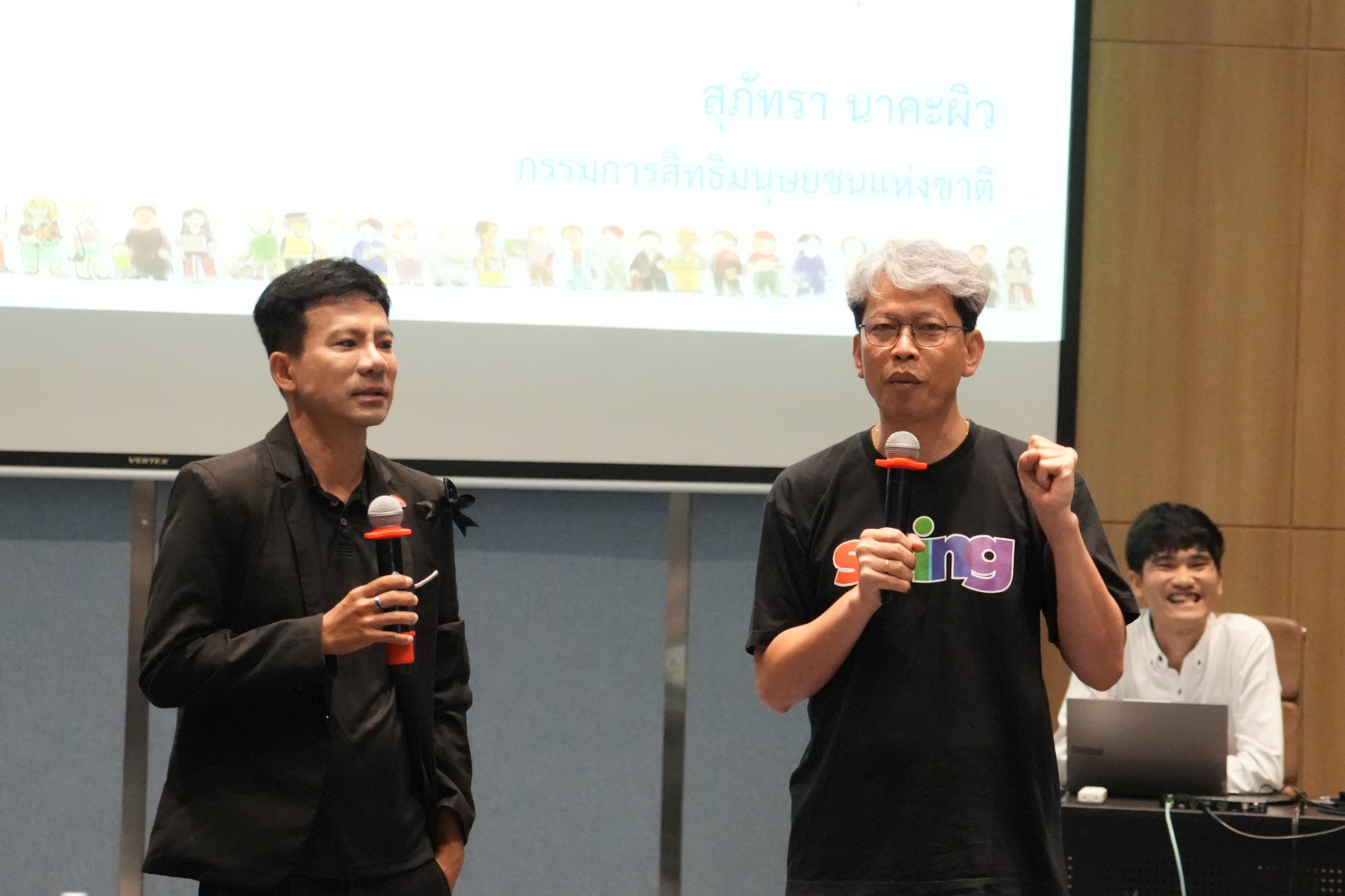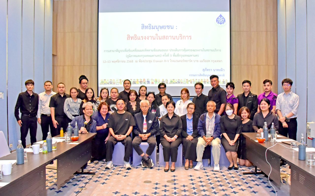 เมื่อวันที่ 12 - 13 พฤศจิกายน 2568 ที่ห้องประชุม Erawan III-V โรงแรมคอร์ทยาร์ด บาย แมริออท กรุงเทพมหานคร นางสาวสุภัทรา นาคะผิว กรรมการสิทธิมนุษยชนแห่งชาติ พร้อมด้วย นายสมชาย หอมลออ และนายชฤทธิ์  มีสิทธิ์ ผู้ทรงคุณวุฒิของ กสม. ร่วมกับ นางสาวสุรางค์ จันทร์แย้ม ผู้อำนวยการมูลนิธิเพื่อนพนักงานบริการ (SWING) นายจำรอง แพงหนองยาง นายเด่นชัย ศรีกรองทอง  และนายกรณ์ จิรัฏฐ์ธนเสฏฐ์  จากมูลนิธิเพื่อนพนักงานบริการ เป็นวิทยากรร่วมอภิปรายและแลกเปลี่ยนความเห็นและข้อเสนอแนะ ในการเสวนาสัญจรเพื่อขับเคลื่อนและติดตามข้อเสนอแนะ ประเด็นการคุ้มครองแรงงานในสถานบริการ (ภูมิภาคและกรุงเทพมหานคร) ครั้งที่ 5 พื้นที่กรุงเทพมหานคร โดยมีผู้เข้าร่วมเสวนาประกอบด้วยเจ้าหน้าที่สำนักงาน กสม. เจ้าหน้าที่มูลนิธิเพื่อนพนักงานบริการ ผู้ประกอบการสถานบริการ และพนักงานบริการ รวมผู้เข้าร่วมเสวนาทั้ง 2 วัน จำนวน 100 คน