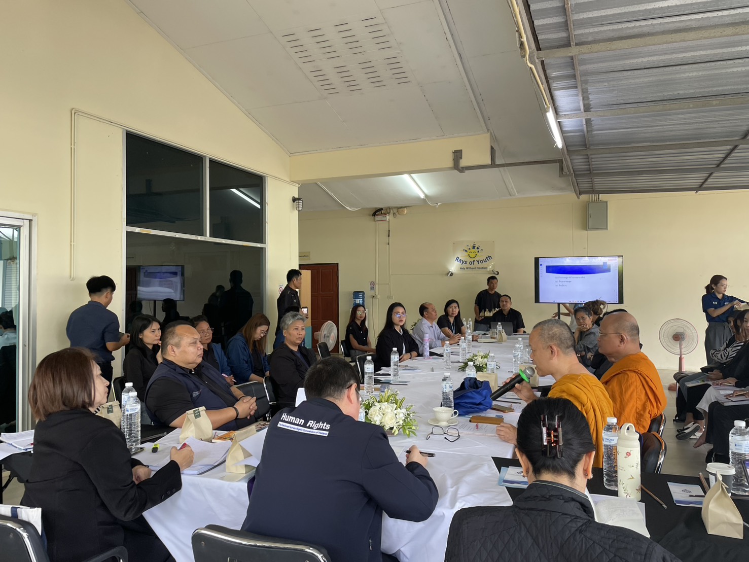 เมื่อวันที่ 19 พฤศจิกายน 2568 ผู้ช่วยศาสตราจารย์สุชาติ เศรษฐมาลินี กรรมการสิทธิมนุษยชนแห่งชาติ พร้อมด้วยเจ้าหน้าที่สำนักงานคณะกรรมการสิทธิมนุษยชนแห่งชาติ (สำนักงาน กสม.) ประชุมรับฟังสถานการณ์เด็กโยกย้ายถิ่นฐานในพื้นที่อำเภอแม่สอด จังหวัดตาก เพื่อขับเคลื่อนข้อเสนอแนะในการส่งเสริมและคุ้มครองสิทธิเด็กให้เกิดผลเป็นรูปธรรมเชิงพื้นที่ โดยมีผู้เข้าร่วมประชุมประกอบด้วย ศูนย์สาธารณสุขชายแดนโรงพยาบาลแม่สอด คลินิกกฎหมายโรงพยาบาลอุ้มผาง แม่ตาวคลินิก สำนักงานข้าหลวงใหญ่ผู้ลี้ภัยแห่งสหประชาชาติ คณะนิติศาสตร์ มหาวิทยาลัยเชียงใหม่ มูลนิธิช่วยไร้พรมแดน มูลนิธิช่วยเหลือเด็ก มูลนิธิเกื้อฝันเด็ก มูลนิธิการศึกษาเพื่อการพัฒนา มูลนิธิเพื่อสิทธิมนุษยชนและการพัฒนา มูลนิธิเพื่อสุขภาพและการเรียนรู้ของแรงงานกลุ่มชาติพันธุ์ มูลนิธิเครือข่ายสถานะบุคคล มูลนิธิเพื่อการศึกษาแบบเรียนรวม มูลนิธิสุวรรณนิมิต ศูนย์การเรียนโพธิยาลัย The Border Consortium, Rights Beyund Border, Asylum Access Thailand Foundation, JRS regional office ณ มูลนิธิช่วยไร้พรมแดน อำเภอแม่สอด จังหวัดตาก