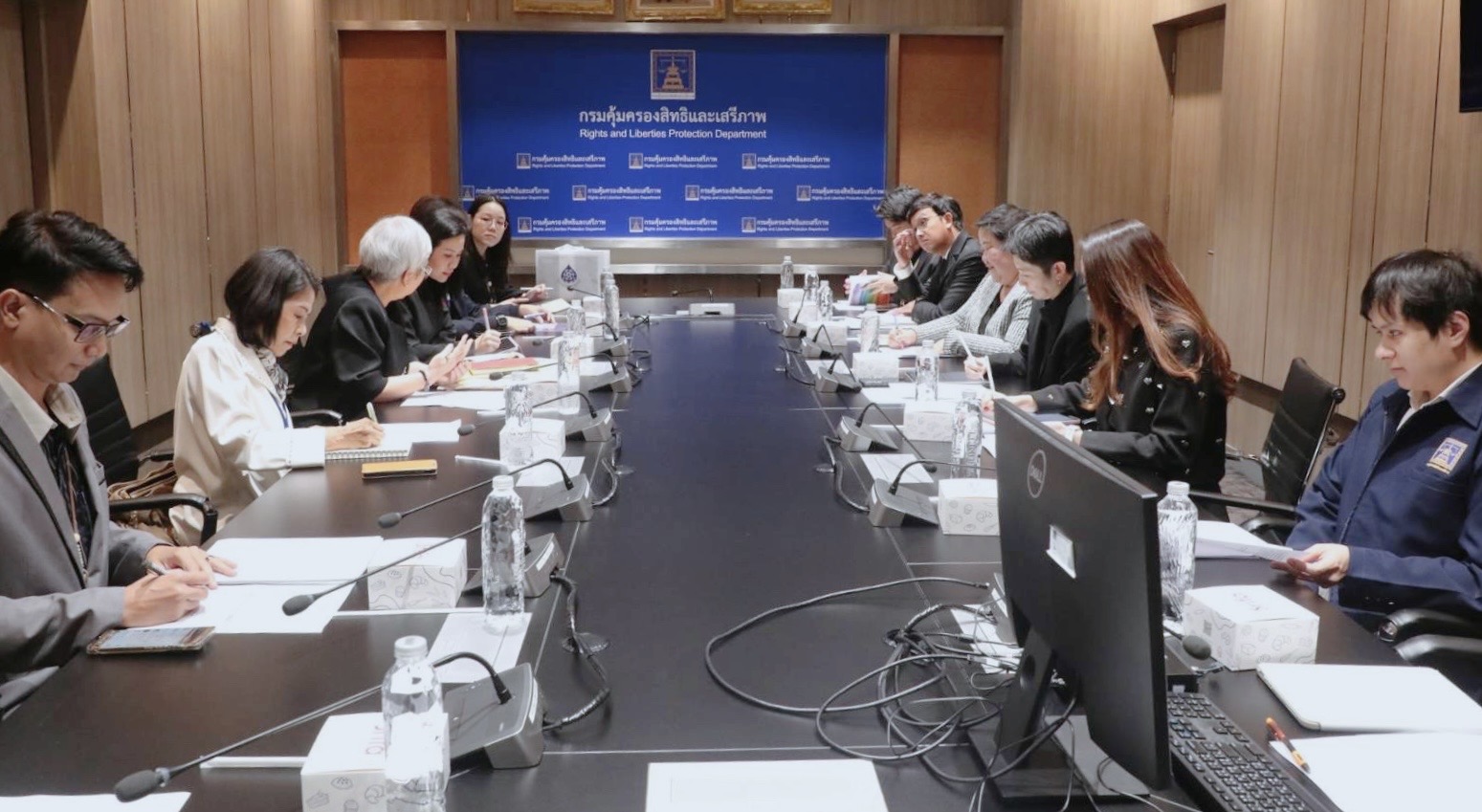 เมื่อวันที่ 21 พฤศจิกายน 2568 นางสาวปิติกาญจน์ สิทธิเดช กรรมการสิทธิมนุษยชนแห่งชาติ พร้อมด้วยนางรัตติกุล  จันทร์สุริยา ที่ปรึกษาประจำคณะกรรมการสิทธิมนุษยชนแห่งชาติ และเจ้าหน้าที่สำนักงาน กสม. เข้าพบนางสาวดวงดาว  เกียรติพิศาลสกุล รองอธิบดีกรมคุ้มครองสิทธิและเสรีภาพ และคณะผู้แทนกรมคุ้มครองสิทธิและเสรีภาพ (กคส.) เพื่อหารือแนวทางขับเคลื่อนความร่วมมือประเด็นธุรกิจกับสิทธิมนุษยชนในหลายมิติ อาทิ การส่งเสริมให้ภาคธุรกิจมีความรู้ความเข้าใจ และความตระหนักถึงความสำคัญของการประกอบธุรกิจที่ยั่งยืนและเคารพสิทธิมนุษยชน การขับเคลื่อนแผนปฏิบัติการระดับชาติว่าด้วยธุรกิจกับสิทธิมนุษยชน ระยะที่ 2 (พ.ศ. 2566-2570) รวมถึงการจัดทำกฎหมายส่งเสริมการดำเนินธุรกิจที่มีความรับผิดชอบ