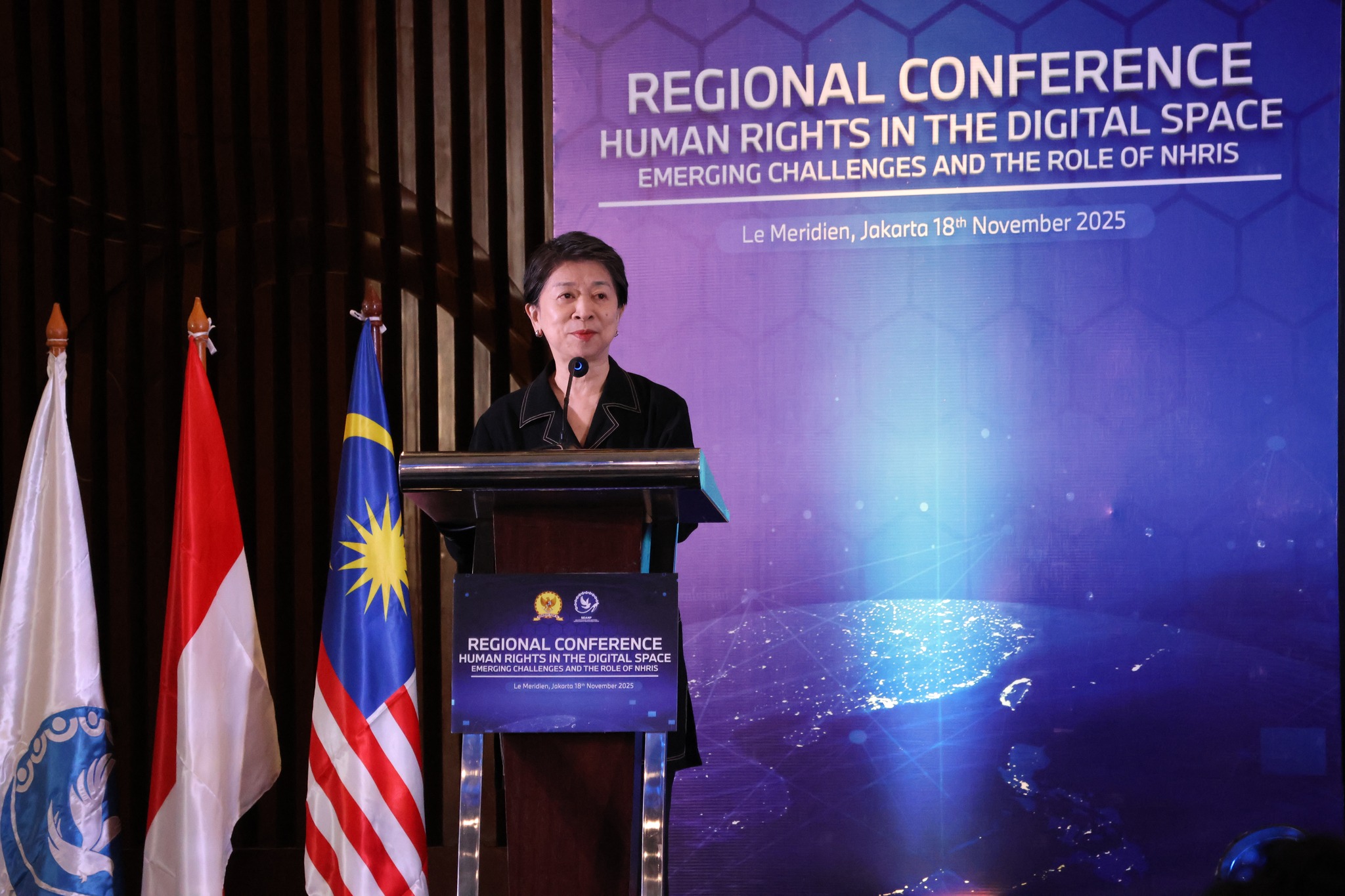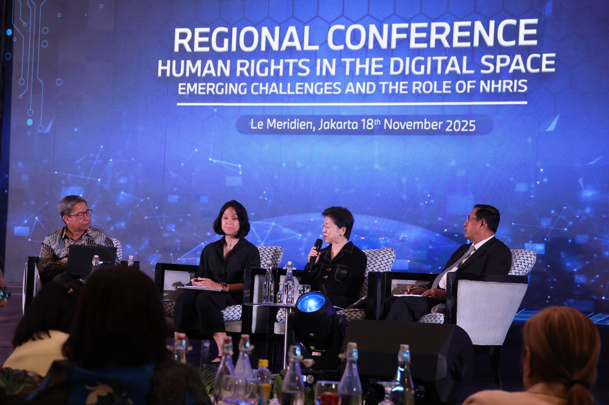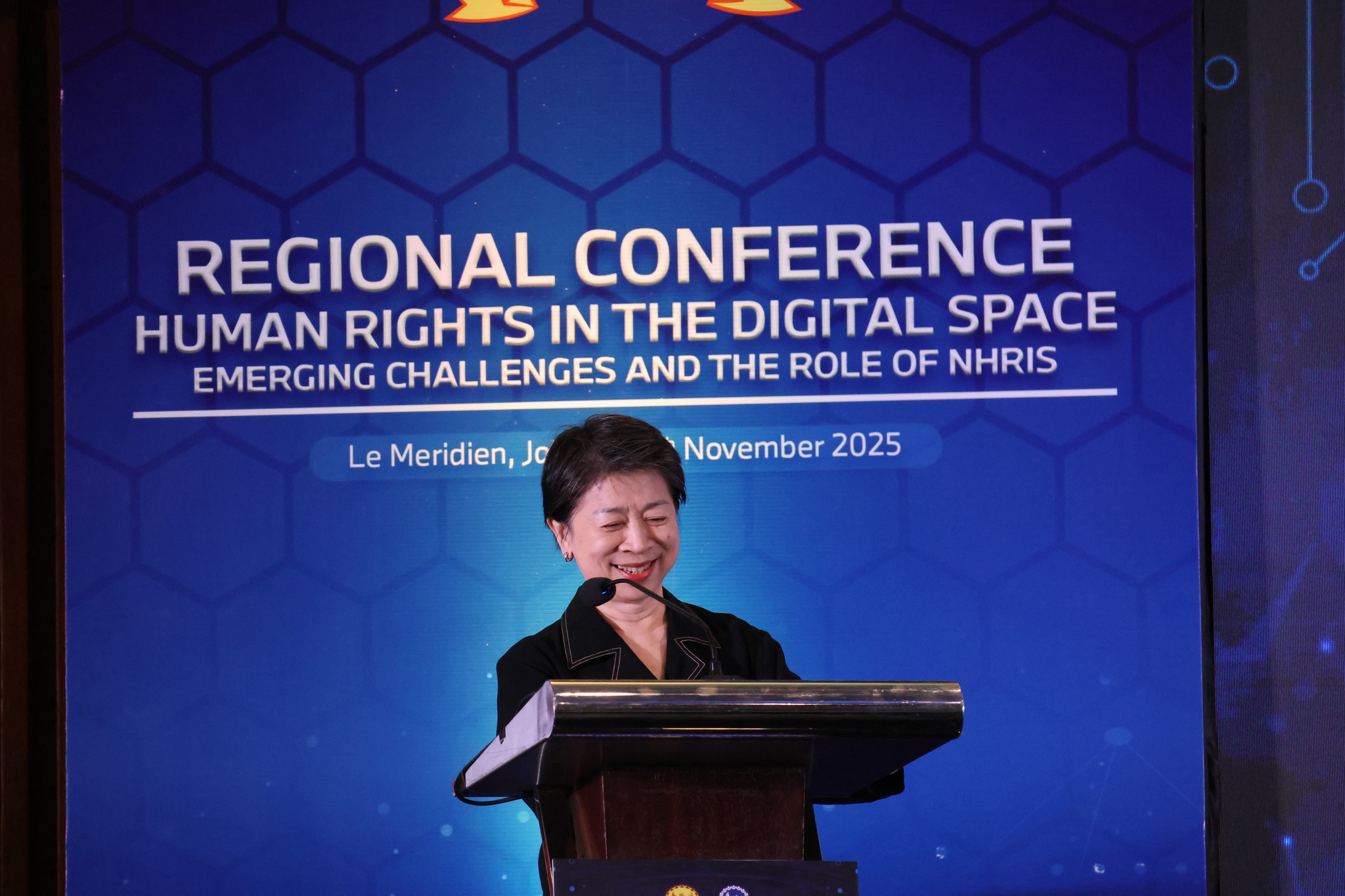 โอกาสนี้ ประธาน กสม. ได้ร่วมเป็นวิทยากรแลกเปลี่ยนความคิดเห็นในหัวข้อ “การประยุกต์ใช้หลักการชี้แนะของสหประชาชาติว่าด้วยธุรกิจกับสิทธิมนุษยชนต่อการดำเนินกิจกรรมของบริษัทเทคโนโลยี รวมถึงปัญญาประดิษฐ์และการคุ้มครองข้อมูลส่วนบุคคล” ในช่วงการประชุมระดับภูมิภาค “สิทธิมนุษยชนในสังคมดิจิทัล ความท้าทายอุบัติใหม่ และบทบาทของสถาบันสิทธิมนุษยชนแห่งชาติ” โดยได้นำเสนอประเด็นความเสี่ยงในพื้นที่ดิจิทัล ความปลอดภัยของข้อมูล สิทธิเด็ก และธรรมาภิบาลปัญญาประดิษฐ์ (AI) พร้อมเน้นย้ำบทบาทของสถาบันสิทธิมนุษยชนแห่งชาติในการคุ้มครองกลุ่มเปราะบาง และส่งเสริมให้รัฐและภาคธุรกิจดำเนินการตามหลักการชี้แนะของสหประชาชาติว่าด้วยธุรกิจกับสิทธิมนุษยชน (UNGPs) อย่างเป็นรูปธรรม