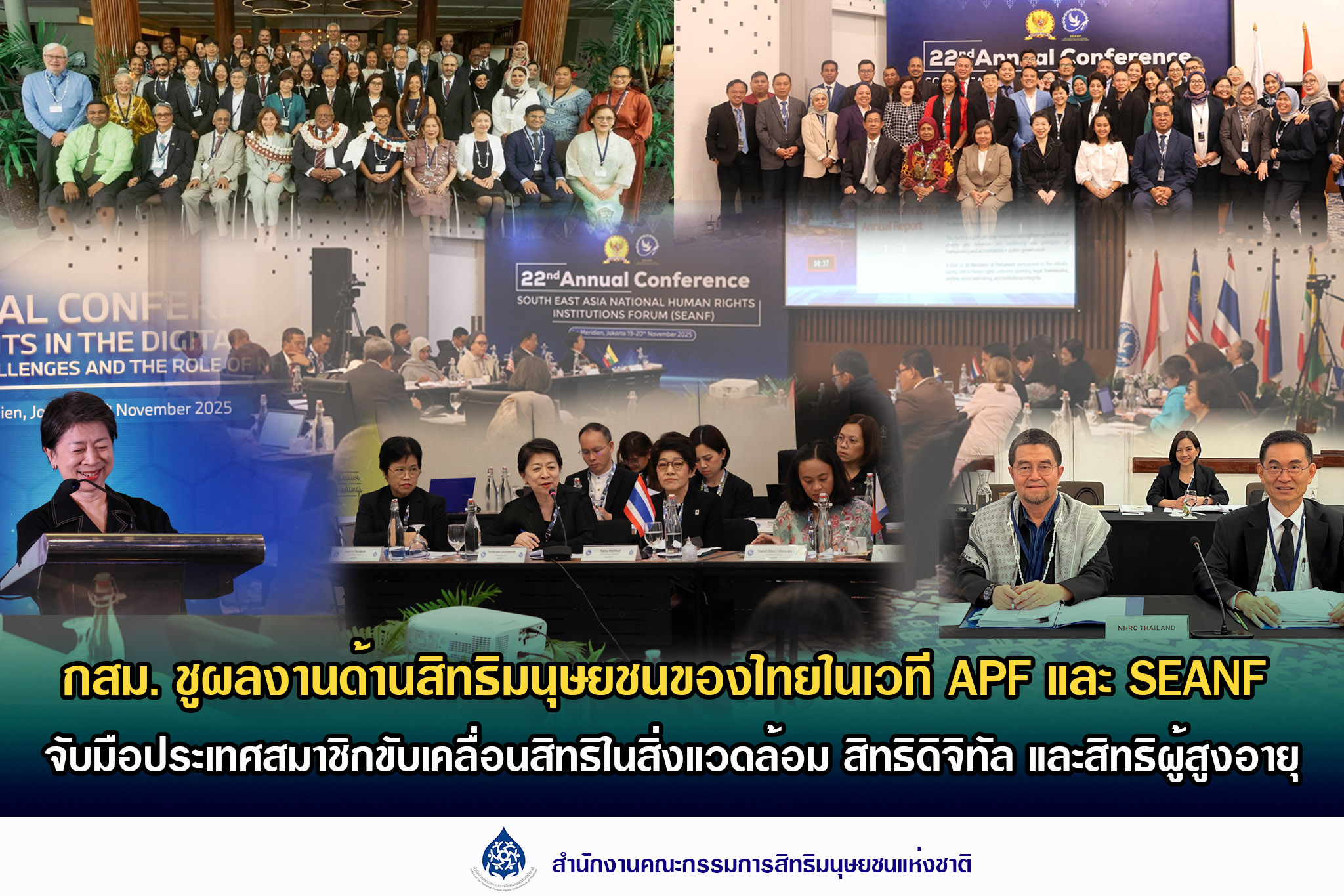 1. กสม. ชูผลงานด้านสิทธิมนุษยชนของไทยในเวทีความร่วมมือระดับภูมิภาค APF และ SEANF จับมือประเทศสมาชิกขับเคลื่อนสิทธิในสิ่งแวดล้อม สิทธิดิจิทัล และสิทธิผู้สูงอายุ