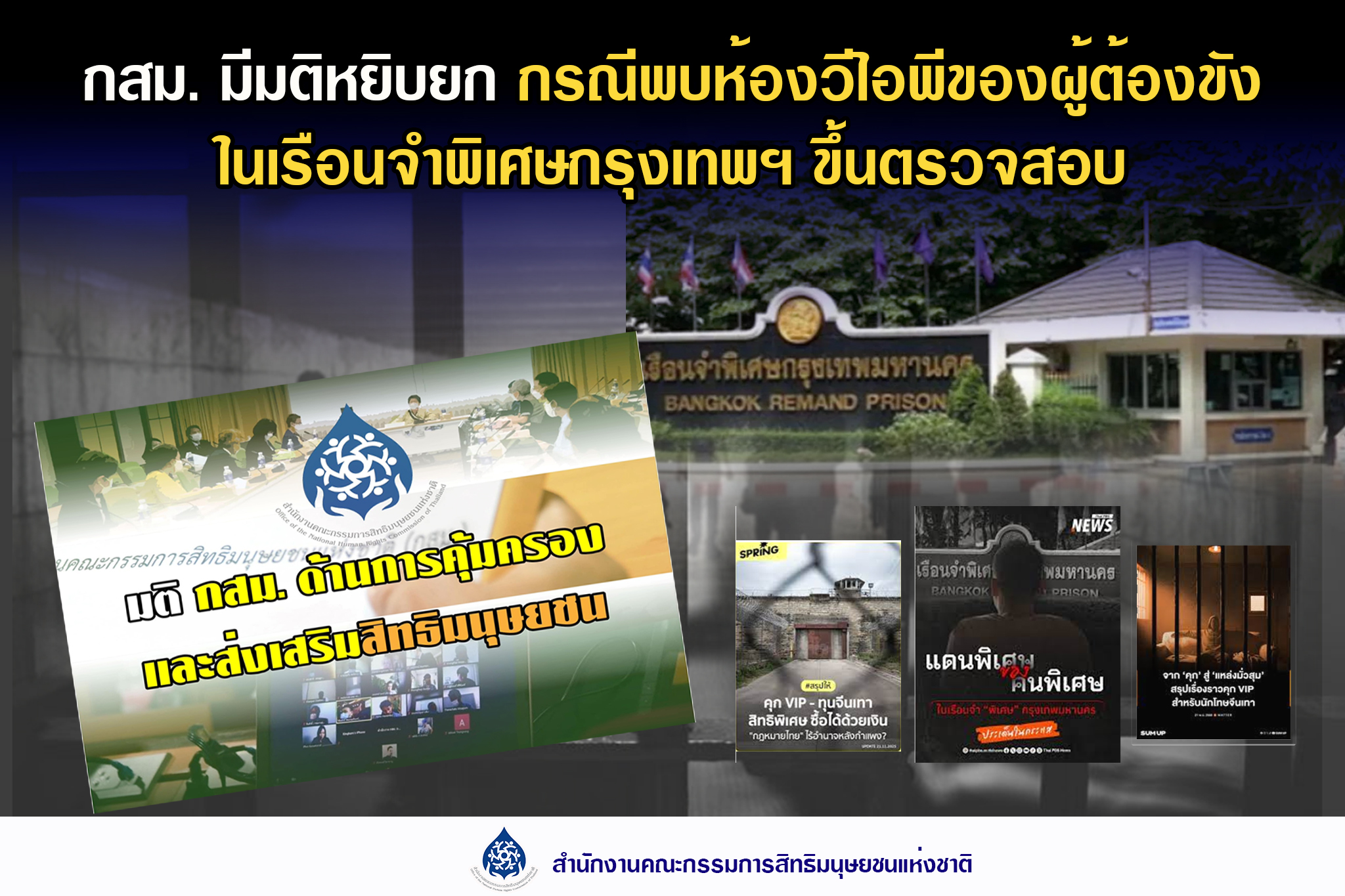 3. กสม. มีมติหยิบยกกรณีพบห้องวีไอพีของผู้ต้องขังในเรือนจำพิเศษกรุงเทพฯ ขึ้นตรวจสอบ