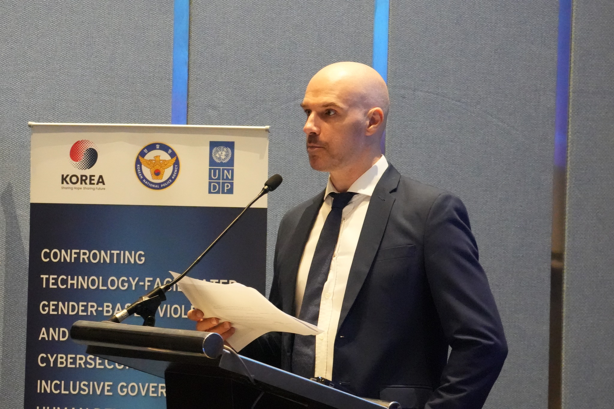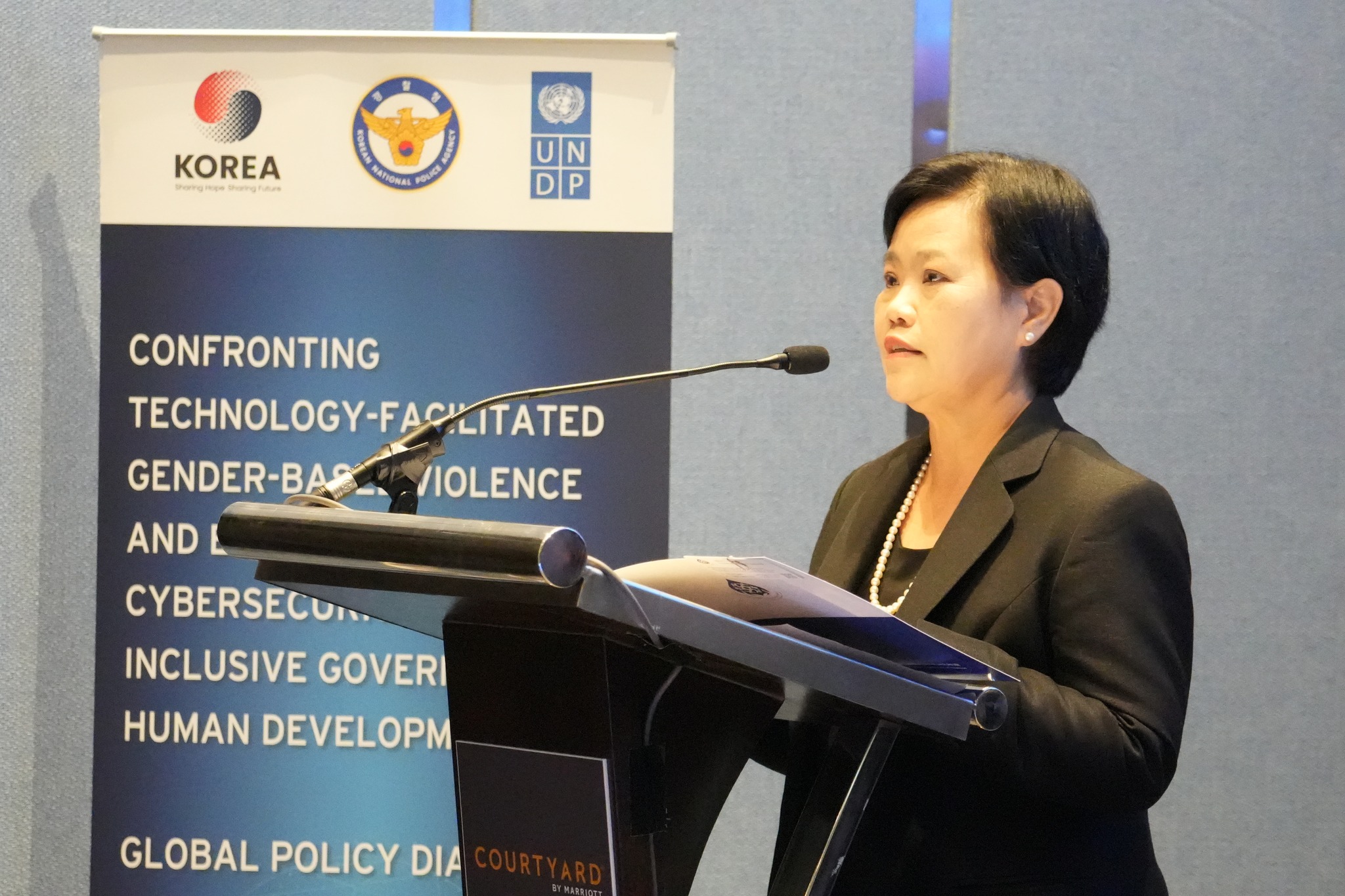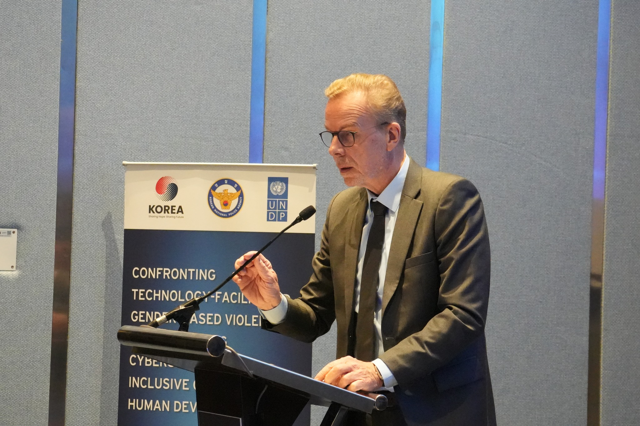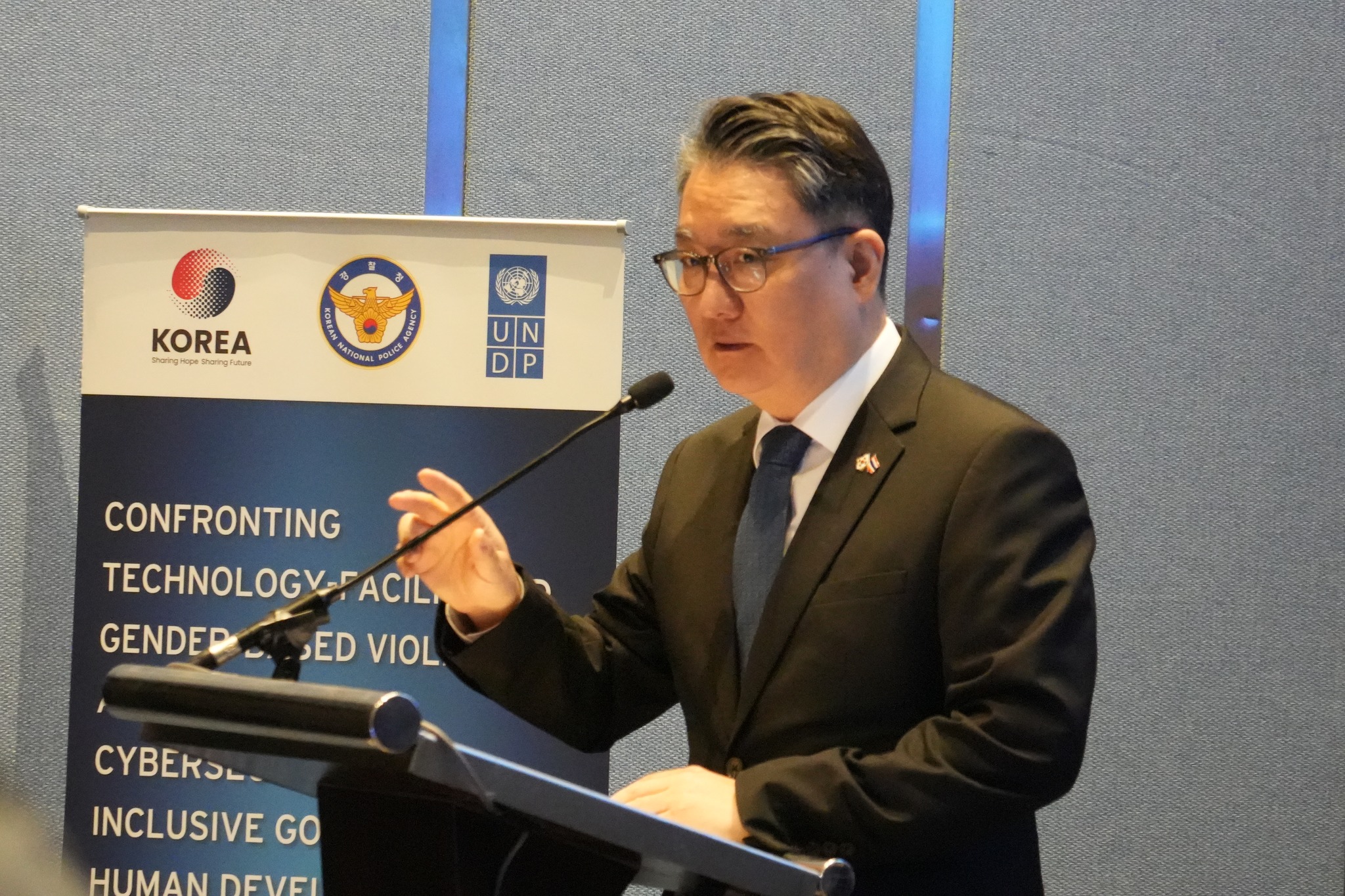 เมื่อวันที่ 27 พฤศจิกายน 2568 เวลา 10.00 น. ที่โรงแรมแมริออท คอร์ทยาด นางสาวสุภัทรา  นาคะผิว กรรมการสิทธิมนุษยชนแห่งชาติ และ H.E. Mr. Yongmin Park เอกอัครราชทูตสาธารณรัฐเกาหลีประจำประเทศไทย ร่วมกันกล่าวต้อนรับในการประชุมนโยบายระดับโลกปี 2025 ว่าด้วยความรุนแรงทางเพศที่เกี่ยวข้องกับเทคโนโลยี (Technology-Facilitated Gender – Based Violence: TFGBV) จากภัยคุกคามสู่การเปลี่ยนแปลง: การเผชิญหน้ากับ TFGBV และเสริมสร้างความมั่นคงทางไซเบอร์เพื่อส่งเสริมธรรมาภิบาลที่ครอบคลุมและการพัฒนามนุษย์ จัดโดย โครงการพัฒนาแห่งสหประชาชาติ (UNDP) ร่วมกับสำนักงานตำรวจแห่งชาติเกาหลี (KNPA) มีวัตถุประสงค์เพื่อร่วมกันส่งเสริมแนวทางการแก้ไขปัญหา TFGBV ที่ยึดผู้เสียหายจากความรุนแรงเป็นศูนย์กลางและขับเคลื่อนผ่านความร่วมมือจากภาคส่วนต่างๆ