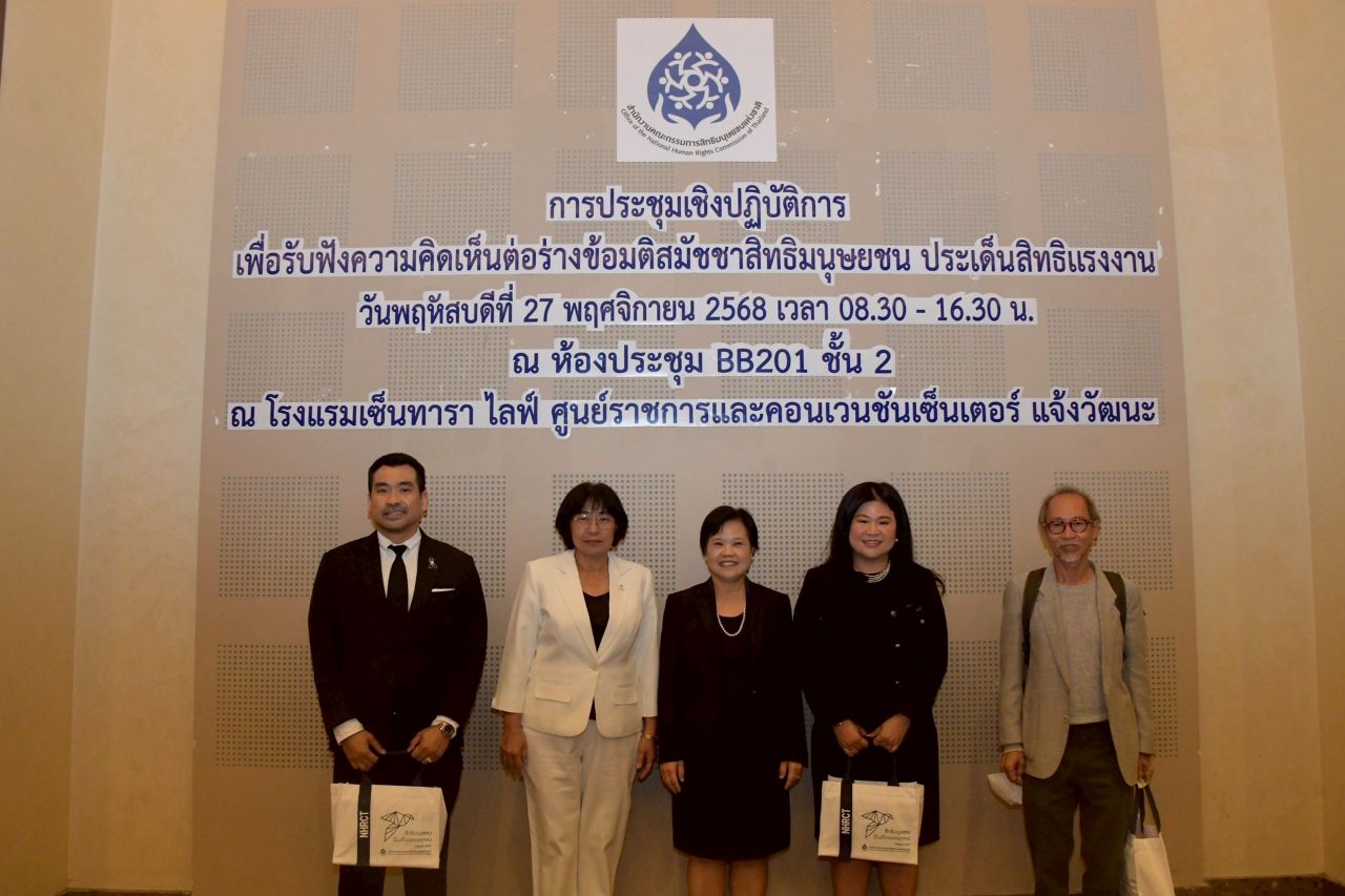 เมื่อวันที่ 27 พฤศจิกายน 2568 ที่โรงแรมเซ็นทารา ไลฟ์ ศูนย์ราชการและคอนเวนชันเซ็นเตอร์ แจ้งวัฒนะ นางสาวศยามล  ไกยูรวงศ์ นางสาวสุภัทรา  นาคะผิว กรรมการสิทธิมนุษยชนแห่งชาติ พร้อมด้วยนายบุญแทน  ตันสุเทพวีรวงศ์ ที่ปรึกษาประจำคณะกรรมการสิทธิมนุษยชนแห่งชาติ นายภาณุพันธ์  สมสกุล ที่ปรึกษาสำนักงาน กสม. และเจ้าหน้าที่สำนักงาน กสม. เข้าร่วมการประชุมเชิงปฏิบัติการเพื่อรับฟังความคิดเห็นต่อ ร่างข้อมติสมัชชาสิทธิมนุษยชน ประเด็นสิทธิแรงงาน ซึ่งเป็นส่วนหนึ่งของงานสมัชชาสิทธิมนุษยชน ประจำปี 2568