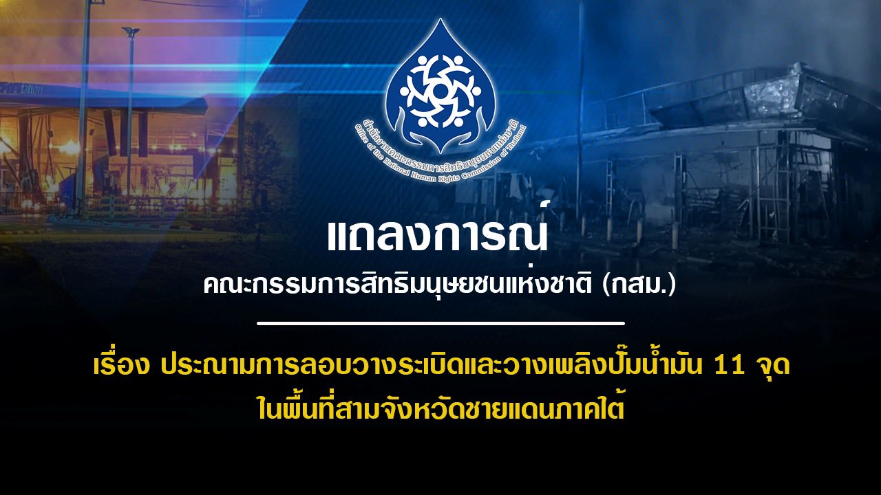แถลงการณ์คณะกรรมการสิทธิมนุษยชนแห่งชาติ (กสม.) เรื่อง ประณามการลอบวางระเบิดและวางเพลิงปั๊มน้ำมัน 11 จุด ในพื้นที่สามจังหวัดชายแดนภาคใต้