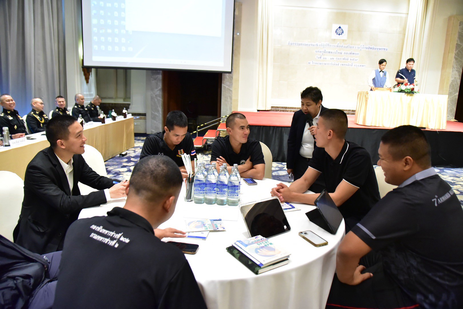 นอกจากการบรรยายเชิงวิชาการแล้ว ผู้เข้าร่วมได้ร่วมแลกเปลี่ยนเรียนรู้ในประเด็น “การปรับใช้หลักสิทธิมนุษยชนในการปฏิบัติหน้าที่ของครูฝึกทหารใหม่” ตลอดจนแนวทางการดูแลและพัฒนาทหารใหม่ในช่วงเริ่มต้นของการเข้ารับราชการทหาร โดยเน้นการสร้างสภาพแวดล้อมที่ปลอดภัย การดูแลสุขภาวะทั้งทางกายและจิตใจ และการเสริมสร้างความไว้วางใจระหว่างผู้บังคับบัญชากับผู้ใต้บังคับบัญชา โดยช่วงท้ายของการอบรมได้ร่วมกันประมวลข้อค้นพบและข้อเสนอแนะเพื่อจัดทำแนวทางปฏิบัติที่ควรทำและสิ่งที่ไม่ควรทำโดยเด็ดขาด (DO’s & DON’Ts) ในการฝึกทหารใหม่และทหารกองประจำการของกองทัพบก เพื่อพัฒนาเป็นกรอบมาตรฐานกลางสำหรับครูฝึกและหน่วยฝึกทั่วประเทศต่อไป