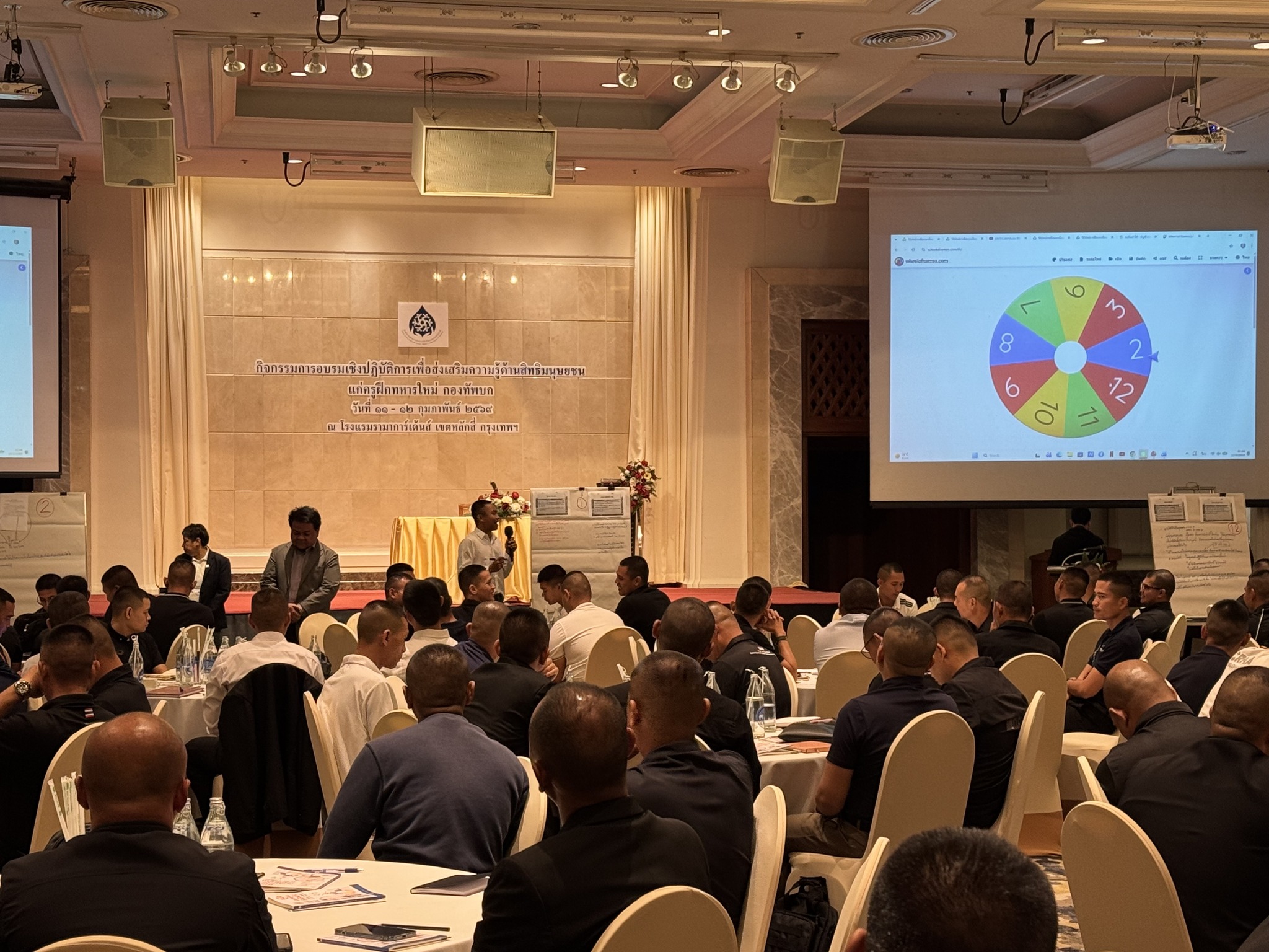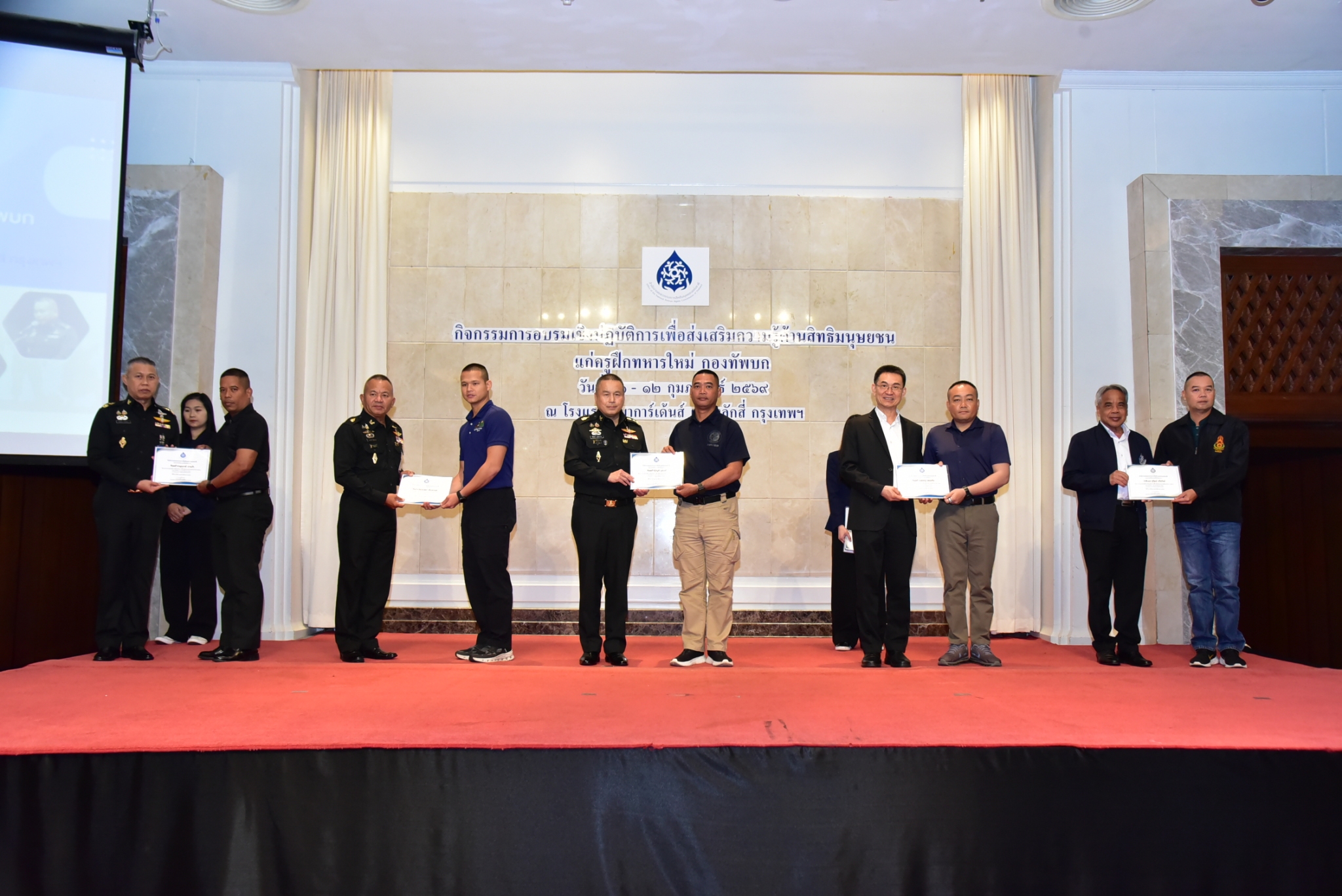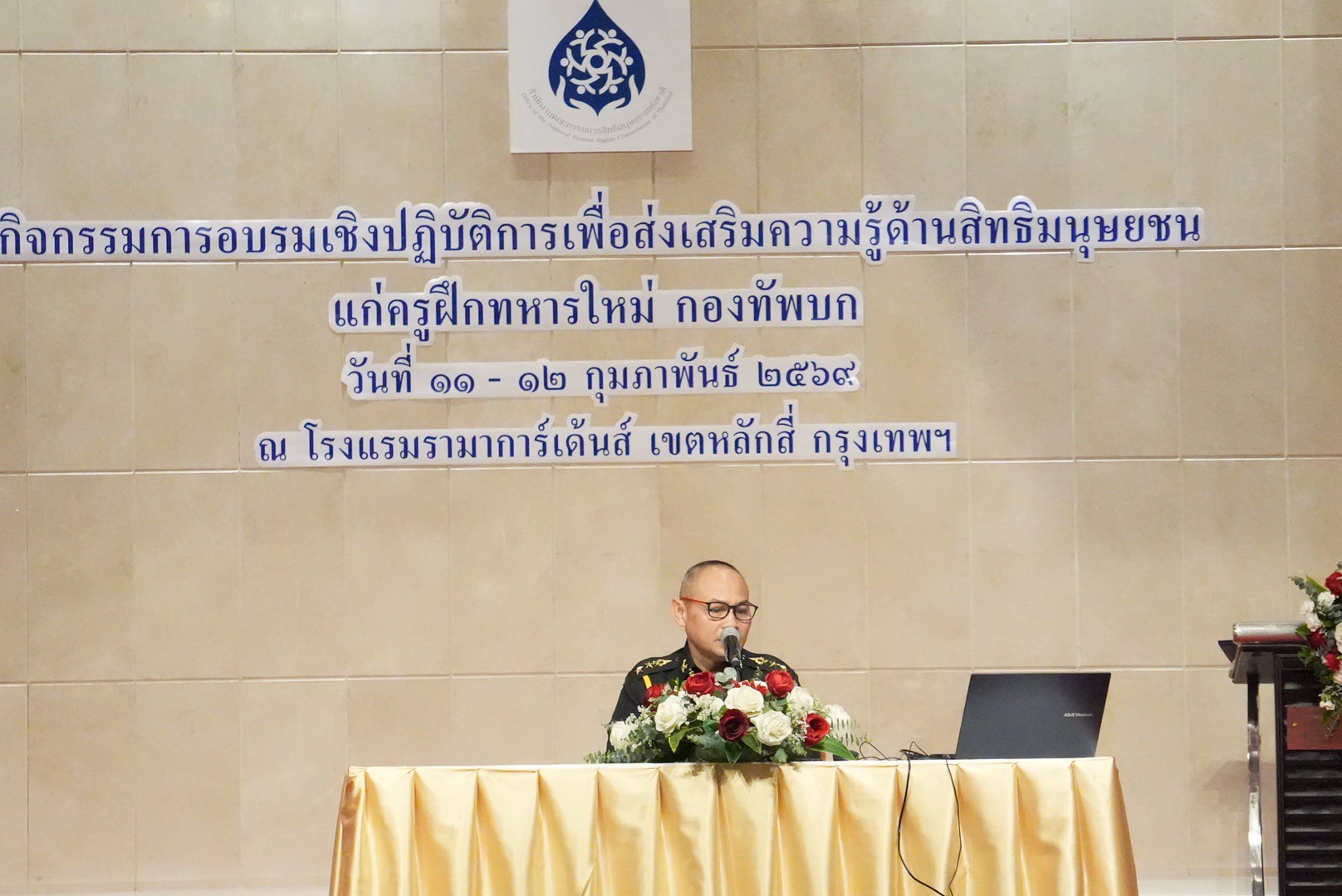 คณะกรรมการสิทธิมนุษยชนแห่งชาติ (กสม.) และกองทัพบก ได้ร่วมกันจัดการอบรมเชิงปฏิบัติการเพื่อส่งเสริมความรู้ด้านสิทธิมนุษยชนแก่ครูฝึกทหารใหม่ ระหว่างวันที่ 11–12 กุมภาพันธ์ 2569 ณ โรงแรมรามาการ์เด้นส์ เขตหลักสี่ กรุงเทพฯ โดยมีครูฝึกทหารใหม่ของกองทัพบกเข้าร่วมกว่า 150 นาย จาก 22 หน่วยทั่วประเทศ การอบรมครั้งนี้มุ่งยกระดับมาตรฐานการฝึกทหารใหม่และทหารกองประจำการของกองทัพบกให้สอดคล้องกับหลักสิทธิมนุษยชน กฎหมายที่เกี่ยวข้อง และพันธกรณีระหว่างประเทศที่ประเทศไทยเป็นภาคี