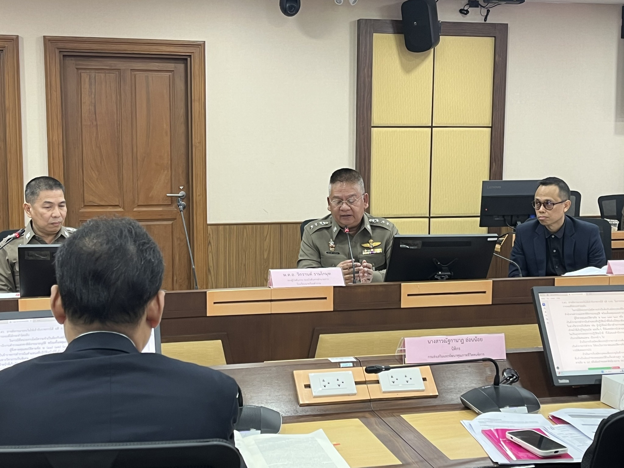 การประชุมดังกล่าวได้แลกเปลี่ยนและรับฟังข้อคิดเห็นจาก สำนักงานตำรวจแห่งชาติ หน่วยงานของรัฐ นักวิชาการผู้เชี่ยวชาญ และภาคีเครือข่ายคนพิการ ซึ่งประกอบ ศาสตราจารย์วิริยะ นามศิริพงศ์พันธุ์ รองศาสตราจารย์ลลิล  ก่อวุฒิกุลรังษี พันตำรวจเอกวิรุฒม์  ศิริสวัสดิบุตร และผู้แทนจากสถาบันสิรินธรเพื่อการฟื้นฟูสมรรถภาพทางการแพทย์แห่งชาติ กรมการแพทย์ ผู้แทนกรมส่งเสริมและพัฒนาคุณภาพชีวิตคนพิการ รวมทั้งผู้แทนสมาคมสภาคนพิการทุกประเภทแห่งประเทศไทย โดยร่วมพิจารณาประเด็นการกำหนด “ความพิการ” เป็นลักษณะต้องห้ามในการเข้ารับราชการตำรวจ รวมทั้งหารือแนวทางส่งเสริมสิทธิและป้องกันการเลือกปฏิบัติอันเนื่องมาจากความพิการที่อาจเกิดจากมาตรการหรือนโยบายของรัฐ