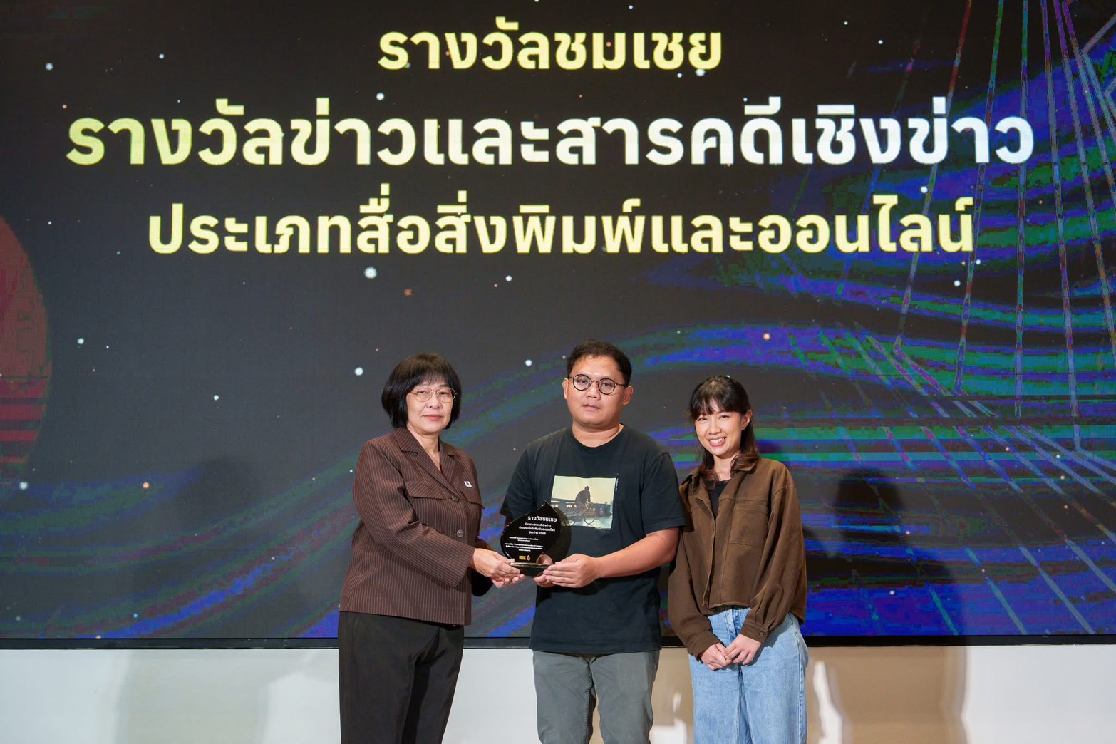 บรรยากาศภายในงานเต็มไปด้วยพลังของคนทำงานสื่อจากหลากหลายแขนง ทั้งสื่อสิ่งพิมพ์ ออนไลน์ โทรทัศน์ คลิปวิดีโอ และภาพถ่าย โดยรางวัลในปีนี้ประกอบด้วย 4 ประเภทรางวัล คือ รางวัลประเภทสื่อสิ่งพิมพ์และสื่อออนไลน์ รางวัลประเภทสื่อโทรทัศน์ รางวัลในรูปแบบคลิปวิดีโอออนไลน์ และรางวัลประเภทภาพถ่ายในหัวข้อสิทธิมนุษยชนซึ่งทุกรางวัลสะท้อนให้เห็นถึงความมุ่งมั่นในการตรวจสอบการใช้อำนาจรัฐ และการยืนหยัดเพื่อสิทธิในเสรีภาพการแสดงออก โดยเน้นย้ำจุดยืนว่า “การนำเสนอข่าวไม่ใช่อาชญากรรม” (Journalism is not a crime) สื่อมวลชนต้องมีเสรีภาพในการทำหน้าที่อย่างปลอดภัยและมีเสรีภาพ และเรียกร้องให้ทุกภาคส่วนร่วมกันคุ้มครองเสรีภาพสื่อ หยุดใช้กระบวนการยุติธรรมเป็นเครืองมือฟ้องปิดปาก หรือ SLAPPs  ต่อสื่อมวลชนที่ปฏิบัติหน้าที่ตรวจสอบอำนาจรัฐอย่างสุจริตตามจรรยาบรรณวิชาชีพ โอกาสนี้ กรรมการสิทธิมนุษยชนแห่งชาติ ได้ร่วมเป็นผู้แทนมอบรางวัลดังกล่าวด้วย