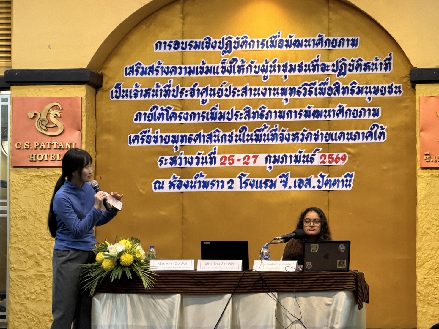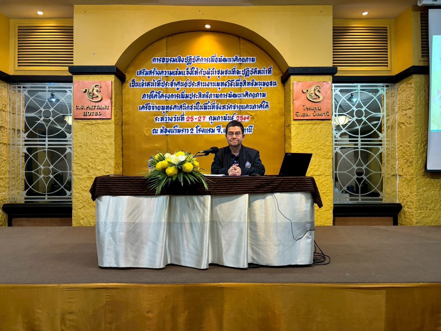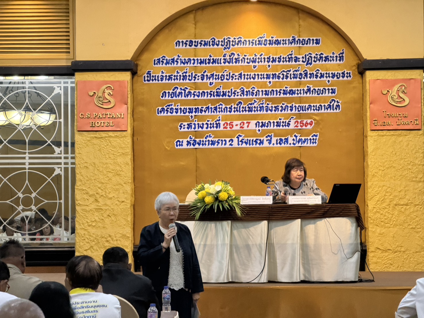 เมื่อวันที่ 25 - 27 กุมภาพันธ์ 2569 ที่โรงแรม ซี.เอส. ปัตตานี อำเภอเมือง จังหวัดปัตตานี สำนักงานคณะกรรมการสิทธิมนุษยชนแห่งชาติ (สำนักงาน กสม.) จัดการอบรมเชิงปฏิบัติการเพื่อพัฒนาศักยภาพ เสริมสร้างความเข้มแข็งให้กับผู้นำชุมชนที่จะปฏิบัติหน้าที่เป็นเจ้าหน้าที่ประจำศูนย์ประสานงานพุทธวิธีเพื่อสิทธิมนุษยชน ภายใต้โครงการเพิ่มประสิทธิภาพการพัฒนาศักยภาพเครือข่ายพุทธศาสนิกชนในพื้นที่จังหวัดชายแดนภาคใต้ให้แก่ผู้นำชุมชนในพื้นที่จังหวัดปัตตานี ยะลา และนราธิวาส ซึ่งจะปฏิบัติหน้าที่เป็นเจ้าหน้าที่ประจำศูนย์ประสานงานพุทธวิธีเพื่อสิทธิมนุษยชน จำนวน 50 คน โดยมีวัตถุประสงค์เพื่อพัฒนาผู้นำชุมชนที่เข้าร่วมโครงการให้เป็นนักปกป้องสิทธิมนุษยชนในพื้นที่ ให้สามารถให้คำปรึกษาที่เกี่ยวข้องกับประเด็นสิทธิมนุษยชนแก่ชุมชน และประสานความร่วมมือกับส่วนราชการเพื่อส่งเสริมและคุ้มครองสิทธิมนุษยชนในพื้นที่จังหวัดชายแดนภาคใต้ ซึ่งกิจกรรมภายในงานประกอบด้วย