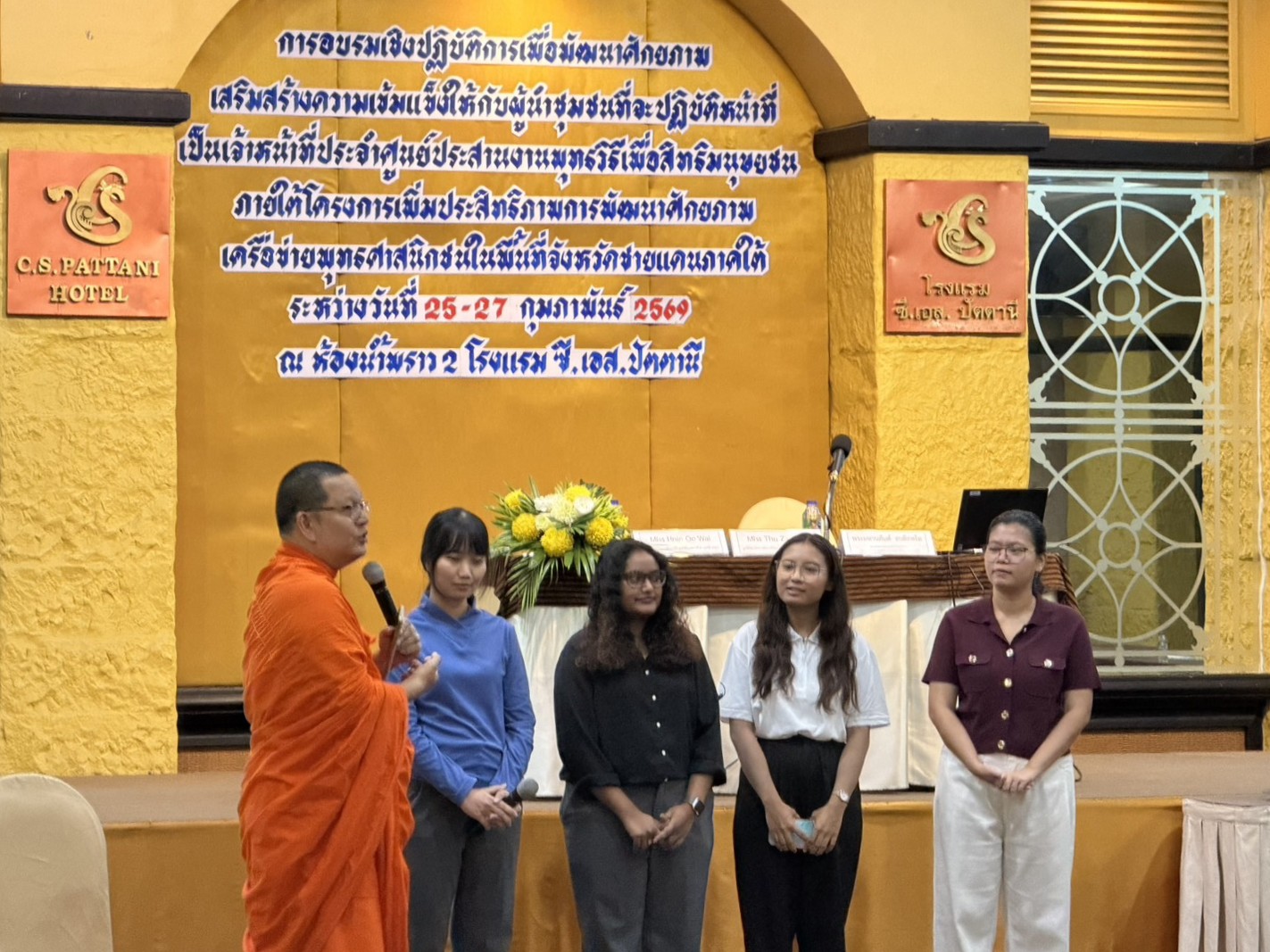 ในวันที่ 25 กุมภาพันธ์ 2569 ผู้ช่วยศาสตราจารย์สุชาติ  เศรษฐมาลินี กรรมการสิทธิมนุษยชนแห่งชาติ กล่าวเปิดโครงการ และปาฐกถาพิเศษ หัวข้อ “พลังเครือข่ายในการส่งเสริมและคุ้มครองสิทธิมนุษยชน” โดยมีนางสาวปิติกาญจน์  สิทธิเดช กรรมการสิทธิมนุษยชนแห่งชาติ และนางประภาวรรณ  สุพัฒนานนท์ เลขานุการกรรมการสิทธิมนุษยชนแห่งชาติ ร่วมเป็นวิทยากร บรรยายในหัวข้อ “ความสำคัญและบทบาทหน้าที่ของเจ้าหน้าที่ประจำศูนย์ประสานงานพุทธวิธีเพื่อสิทธิมนุษยชน” พร้อมทั้งพระราชวัชรญาณโมลี (ชรัช อุชุจาโร) รองเจ้าคณะภาค 18 เจ้าอาวาสวัดตานีนรสโมสร (พระอารามหลวง) จังหวัดปัตตานี ได้ร่วมบรรยาย และให้โอวาทหัวข้อ “พุทธวิธีในการแก้ไขปัญหาเรื่องสิทธิมนุษยชน”