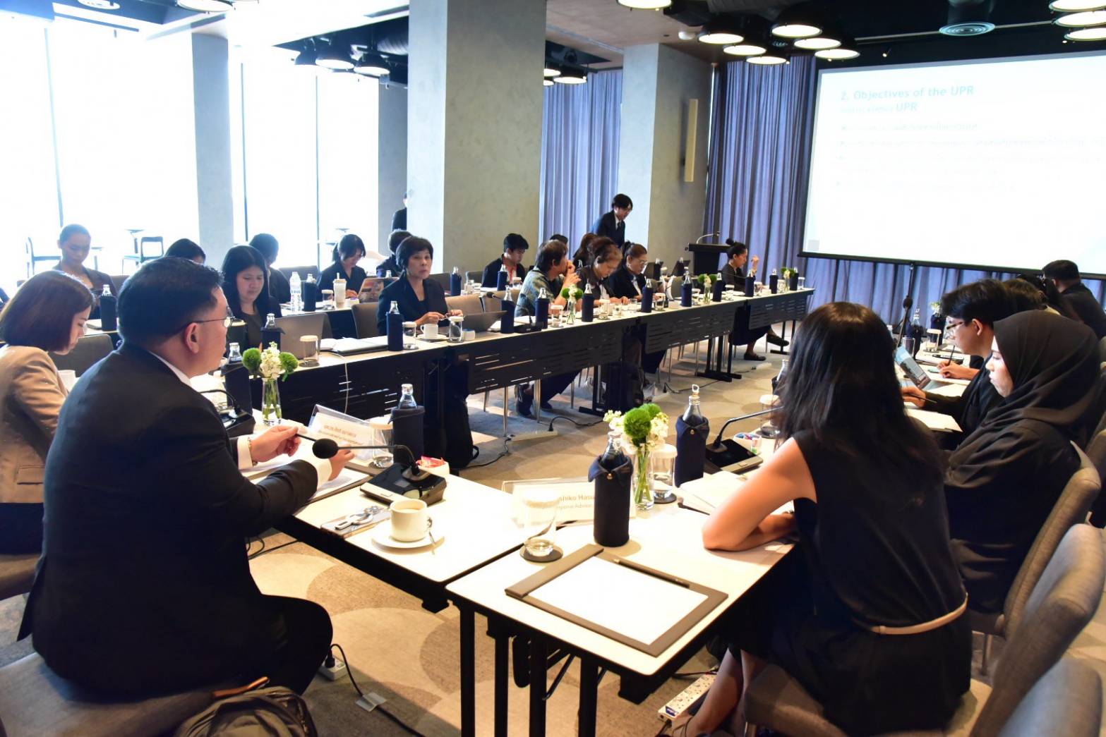 ในการประชุมรับฟังความคิดเห็นครั้งนี้ สำนักงาน กสม. ได้รับเกียรติจากรองอธิบดีกรมองค์การระหว่างประเทศ กระทรวงการต่างประเทศ พืชภพ  มงคลนาวิน ร่วมบรรยายภาพรวมของกลไก UPR และเน้นย้ำความสำคัญของการเตรียมความพร้อมของประเทศไทยต่อกระบวนการดังกล่าว และผู้แทนจากสำนักงานข้าหลวงใหญ่สิทธิมนุษยชนแห่งสหประชาชาติ (OHCHR) Ms. Yoshiko Hasumi บรรยายถึงแนวปฏิบัติที่ดีในการจัดทำรายงานของผู้มีส่วนได้ส่วนเสีย พร้อมเน้นย้ำถึงความสำคัญของข้อมูลจากภาคประชาสังคมในการสะท้อนสถานการณ์สิทธิมนุษยชนอย่างรอบด้านและตรวจสอบได้ โดยมีอาจารย์ประจำคณะสังคมสงเคราะห์ศาสตร์ มหาวิทยาลัยธรรมศาสตร์ ผู้ช่วยศาสตราจารย์ ดร.กิตติ ชยางคกุล ร่วมแลกเปลี่ยนมุมมองเชิงวิชาการที่เกี่ยวข้องกับกระบวนการ UPR