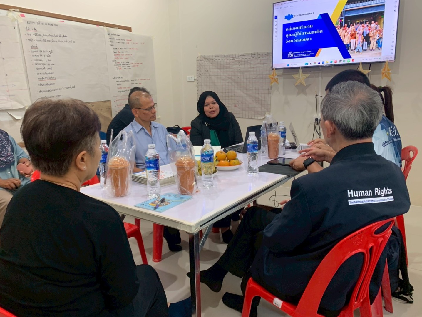 ในช่วงบ่าย คณะได้เข้าประชุมหารือกับกลุ่ม Care Team Songkhla ซึ่งเป็นเครือข่ายผู้ปฏิบัติภาคประชาสังคมในพื้นที่จังหวัดสงขลา เพื่อแลกเปลี่ยนสถานการณ์การใช้ยาเสพติด แนวทางการบำบัดรักษาและฟื้นฟู รวมถึงบทบาทของภาคีเครือข่ายในระดับพื้นที่ในการดูแลผู้ใช้สารเสพติดอย่างต่อเนื่องและเคารพสิทธิมนุษยชน