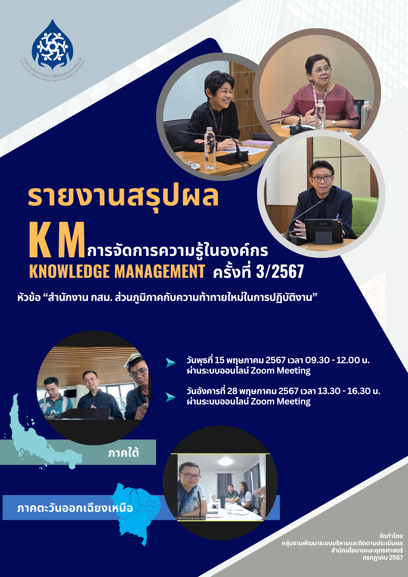 รายงานสรุปผลกิจกรรม KM ครั้งที่ 3/2567 หัวข้อ “สำนักงาน กสม. ส่วนภูมิภาคกับความท้าทายใหม่ในการปฏิบัติงาน”