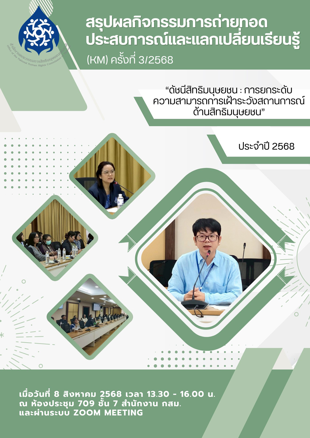 รายงานสรุปผลกิจกรรม KM ครั้งที่ 3/2568 หัวข้อ “ดัชนีสิทธิมนุษยชน: การยกระดับความสามารถการเฝ้าระวังสถานการณ์ด้านสิทธิมนุษยชน”